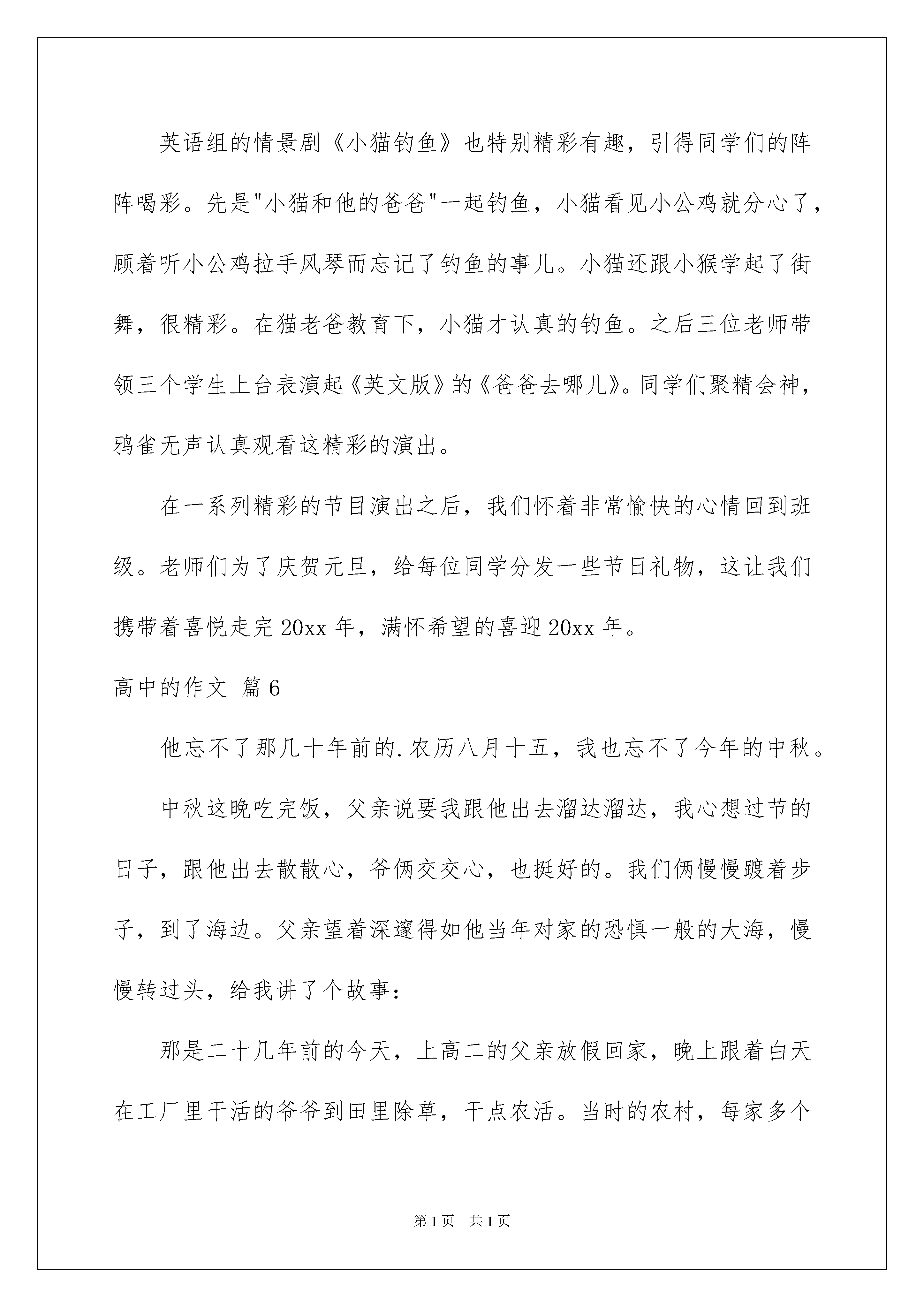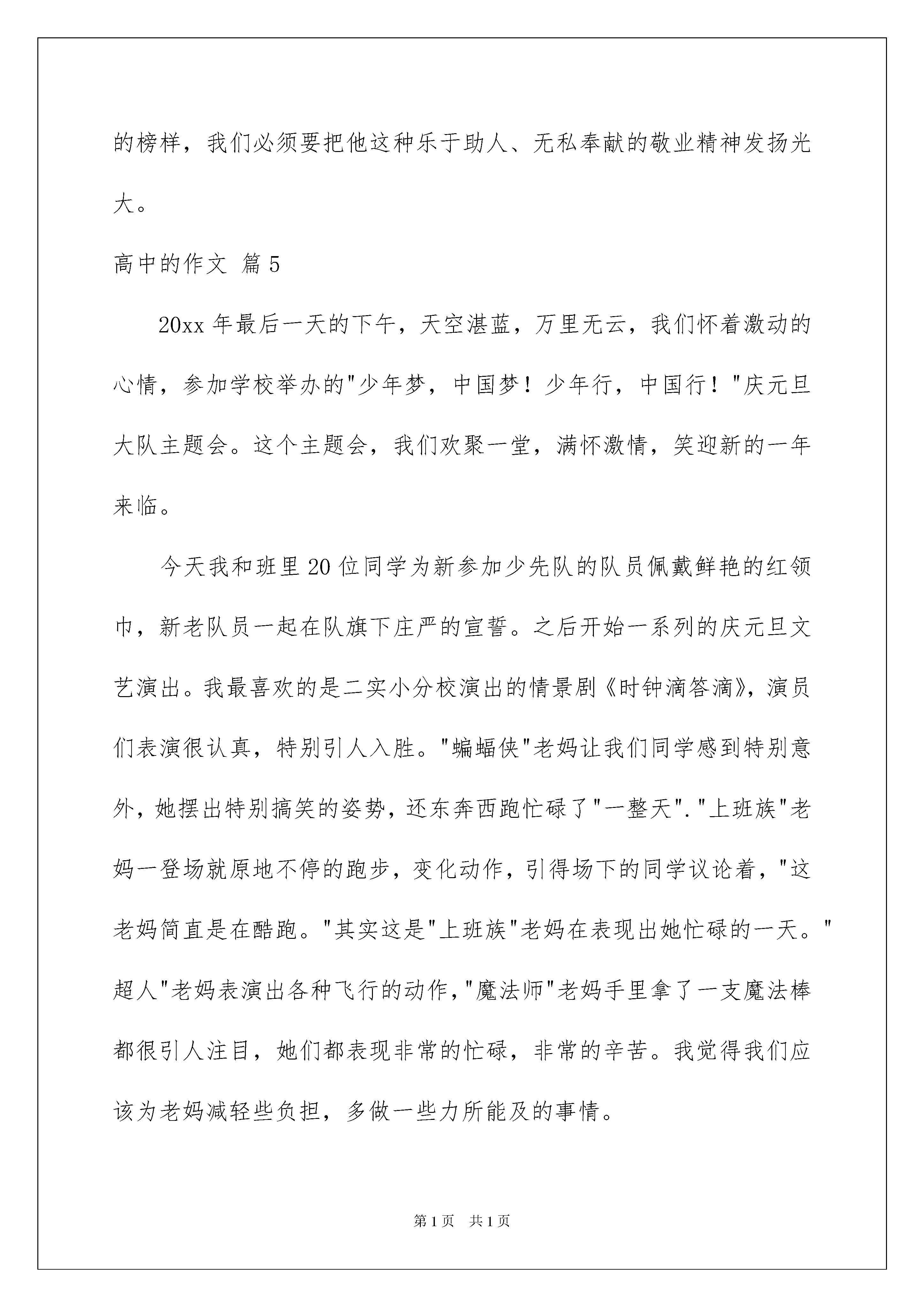 2022高中作文汇总8篇高中作文汇总8篇在平时的学习、工作或生活中大家都跟作文打过交道吧写作文可以锻炼我们的独处习惯让自己的心静下来思考自己未来的方向。你所见过的作文是什么样的呢?下面是我整理的高中作文8篇仅供参考欢迎大家阅读