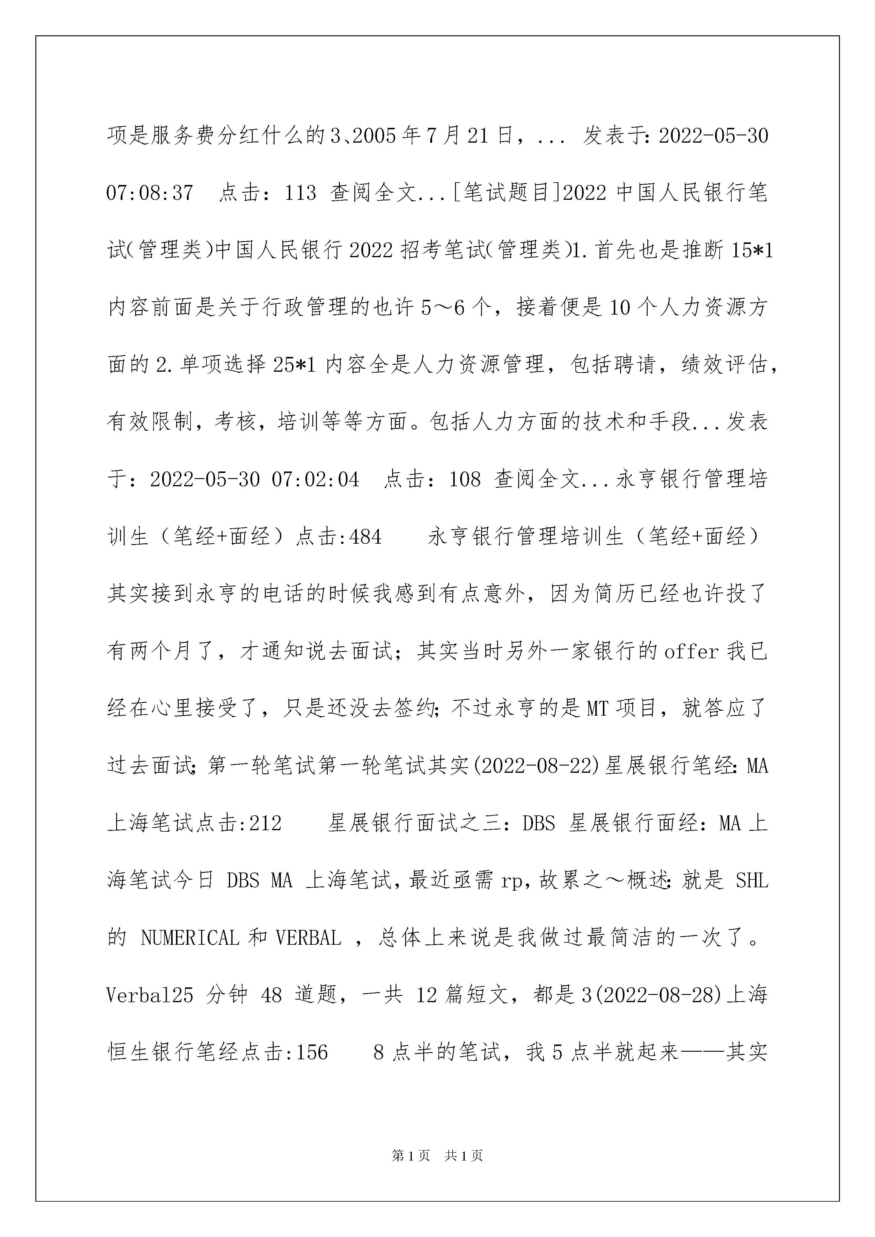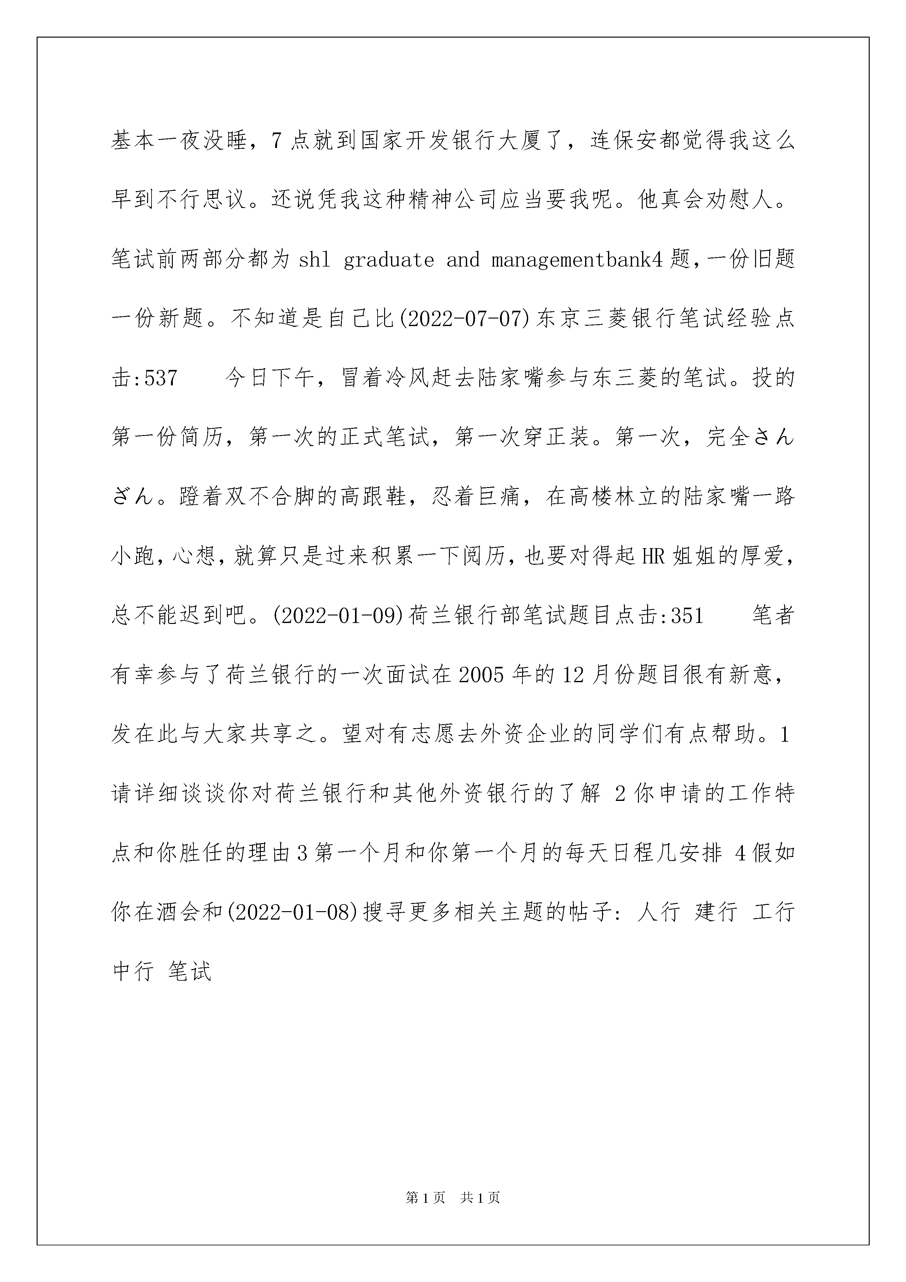 2022[转载]全国各大银行笔试真题总结大银行求职必看[转载]全国各大银行笔试真题总结大汇总(银行求职必看)原文地址:全国各大银行笔试真题总结大汇总(银行求职必看)作者:欢乐的一天全国各大银行笔试真题总结汇总(中行、建行、工行、人行等)[中国建设银行]浙江建行笔试归来找到这个论坛觉得很幸运,发觉了这么多有用的信息,下面我也发布一些信息以示报答吧。参与