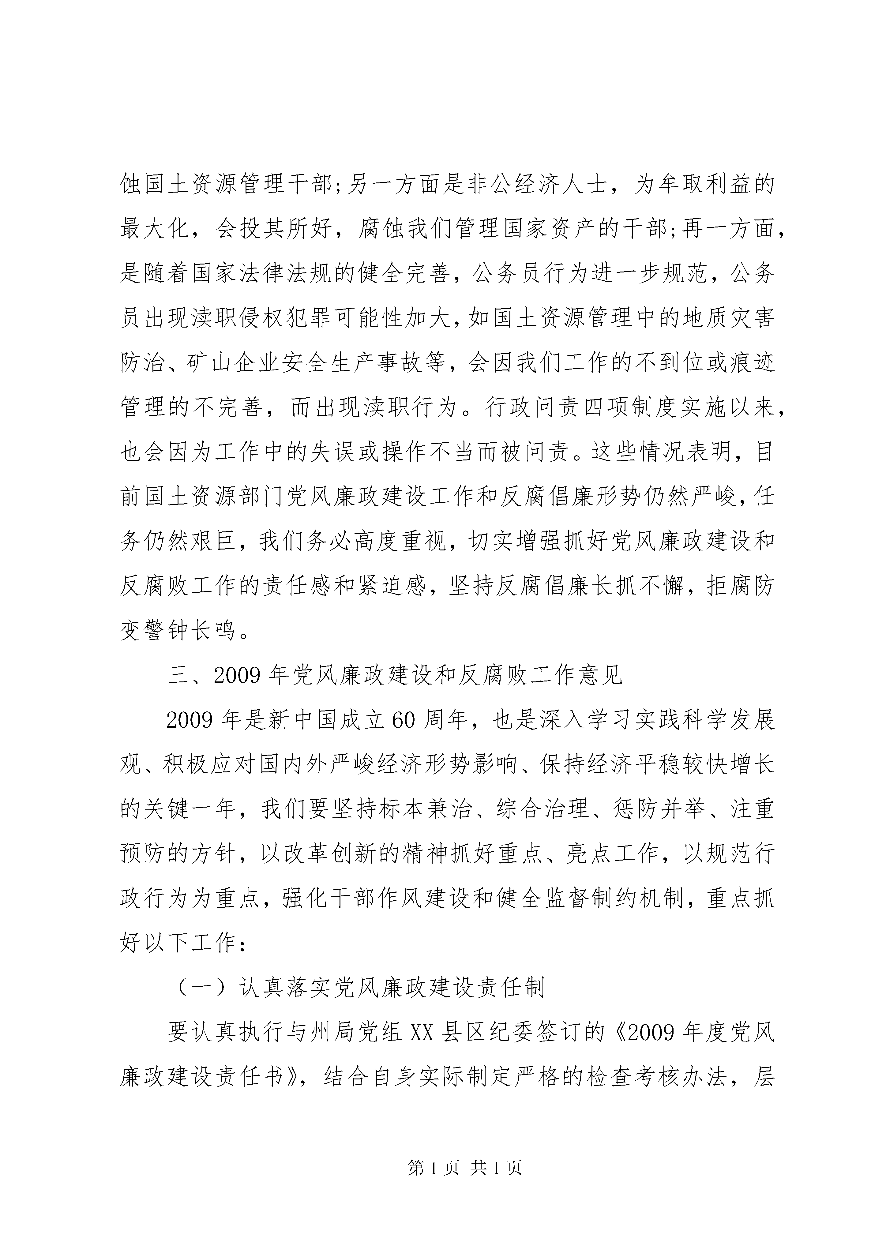 国土局党风廉政建设工作会讲话同志们:全县国土资源管理工作会议刚刚结束我们接着用半天的时间召开2009年全局党风廉政建设工作会议这充分说明局党组对这次会议的召开非常重视也体现了勤俭节约、高效办会的良好会风。会议的主要任务是认真学习十七届中纪委三次全会和省、州国土资源系统党风廉政建设工作会议以及县纪委十一届四次全会精神总结20*年工作分析当前面临的形势部署2009年的党风廉政建设工作任务。下面我就全局党风廉政建和反腐败工作讲三点意见。一、20*年党风廉政建设和反腐