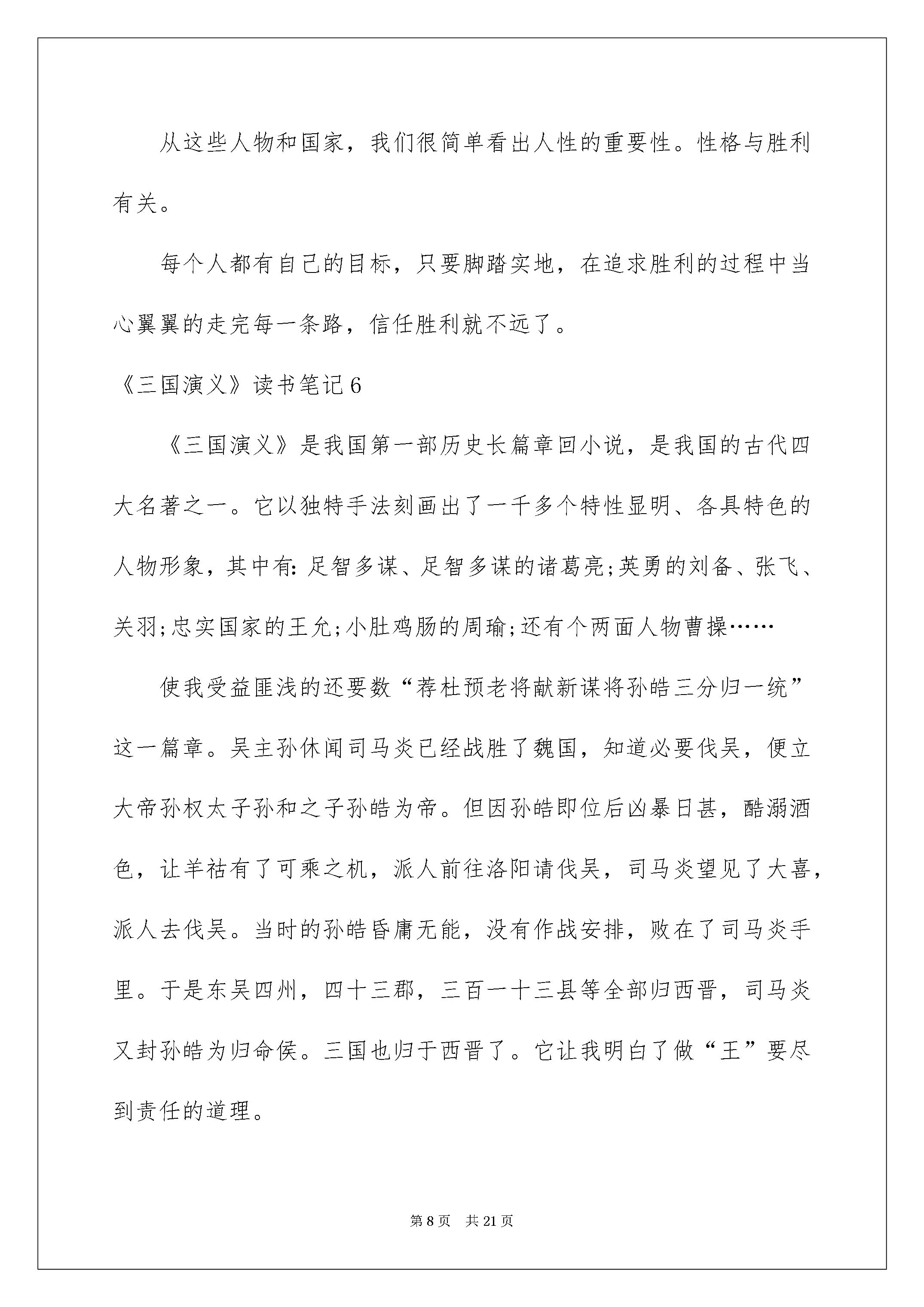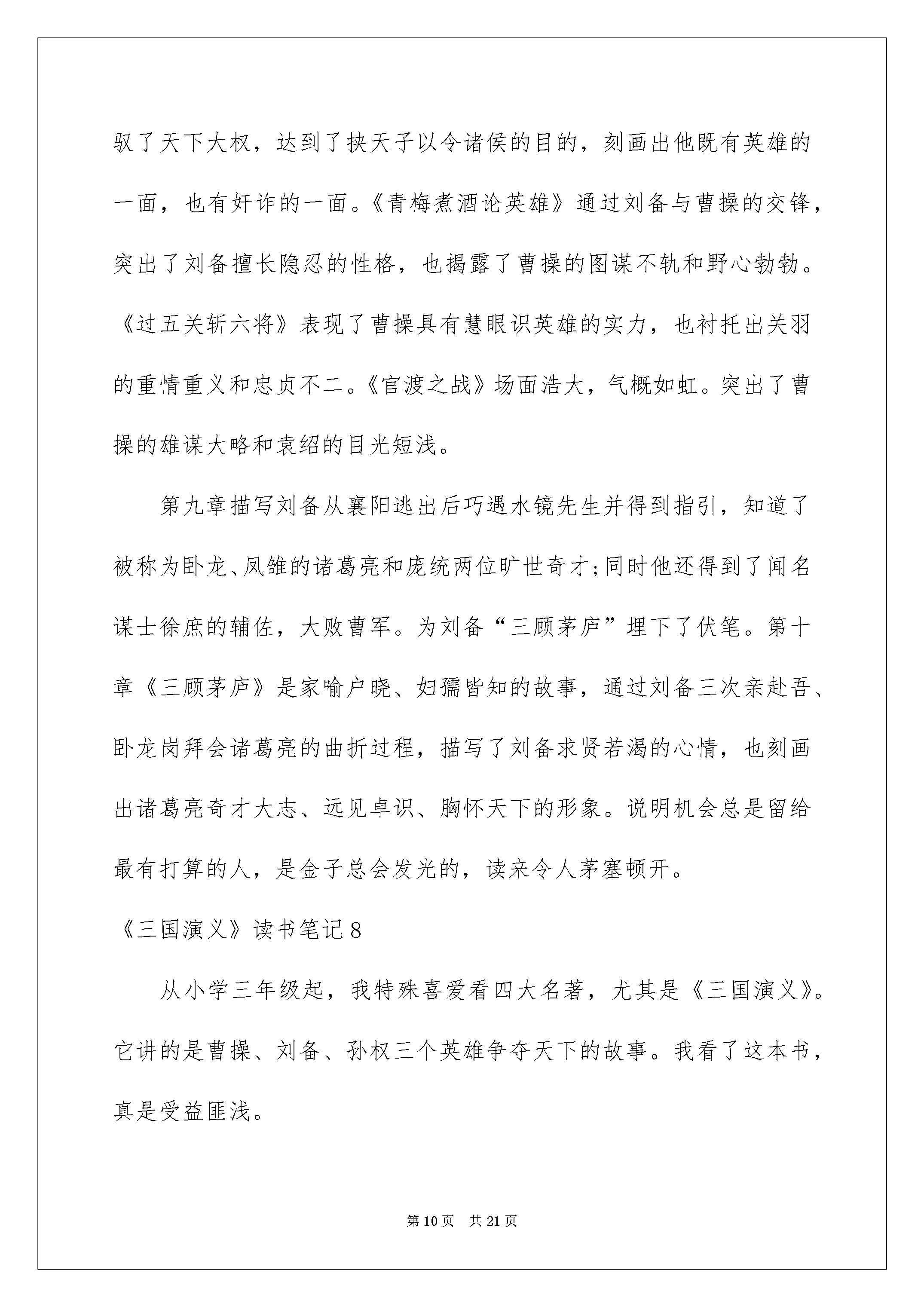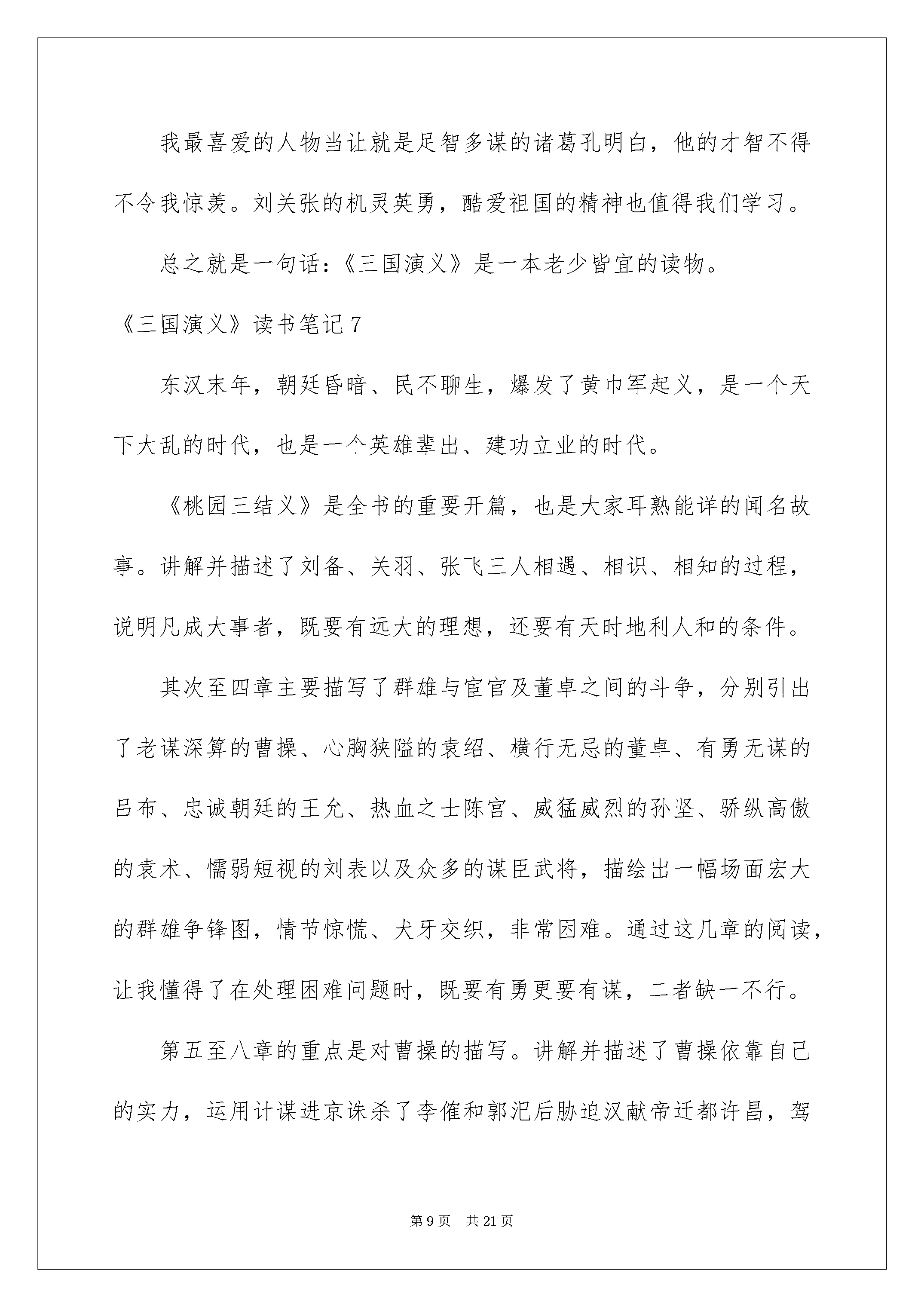 2022《三国演义》读书笔记《三国演义》读书笔记当细细品完一本名著后想必你有不少可以共享的东西这时候最关键的读书笔记怎么能落下!可能你现在毫无头绪吧下面是我细心整理的《三国演义》读书笔记欢迎阅读希望大家能够喜爱。《三国演义》读