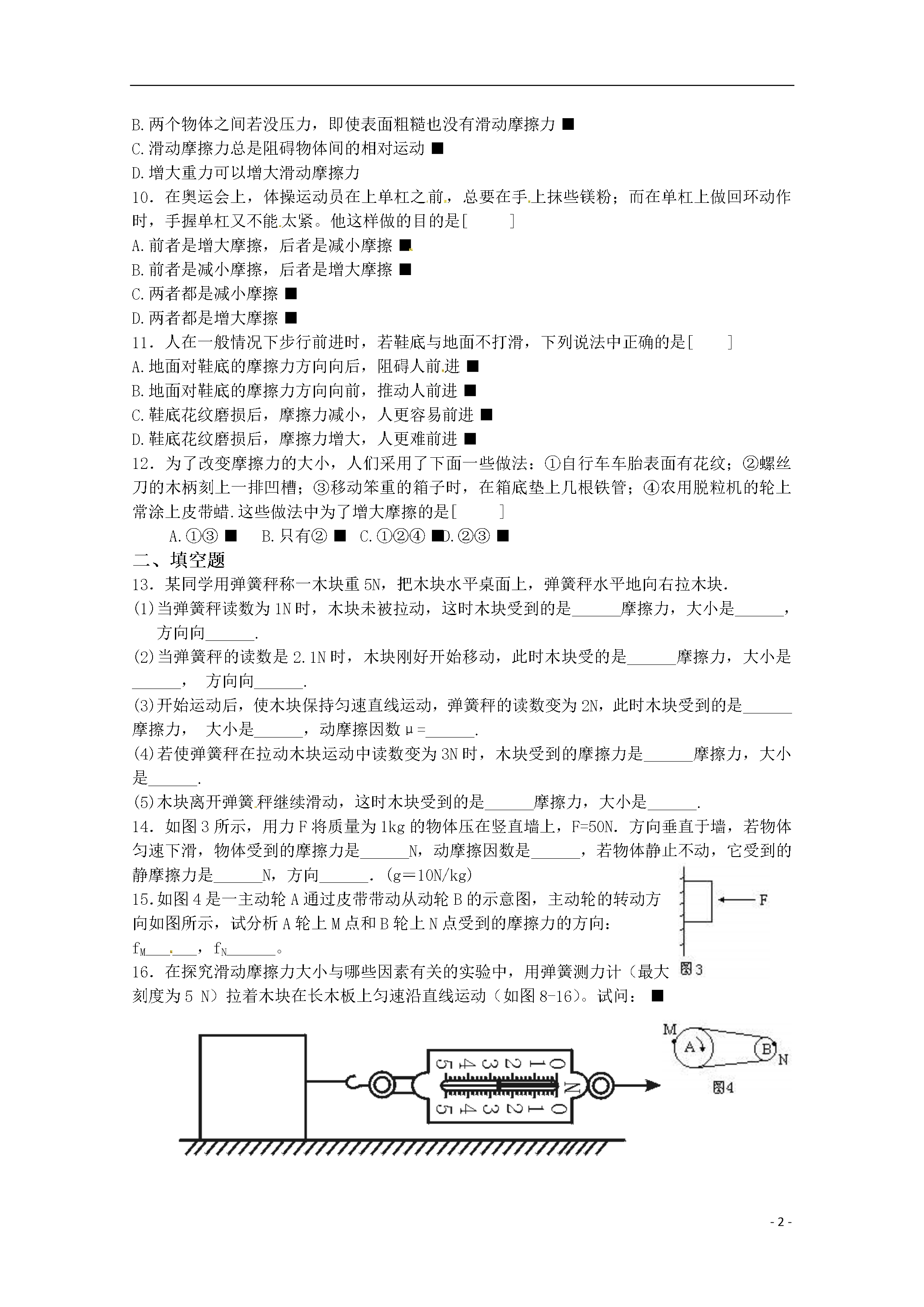 高中物理研究摩擦力 同步练习(二)粤教版必修一.doc
