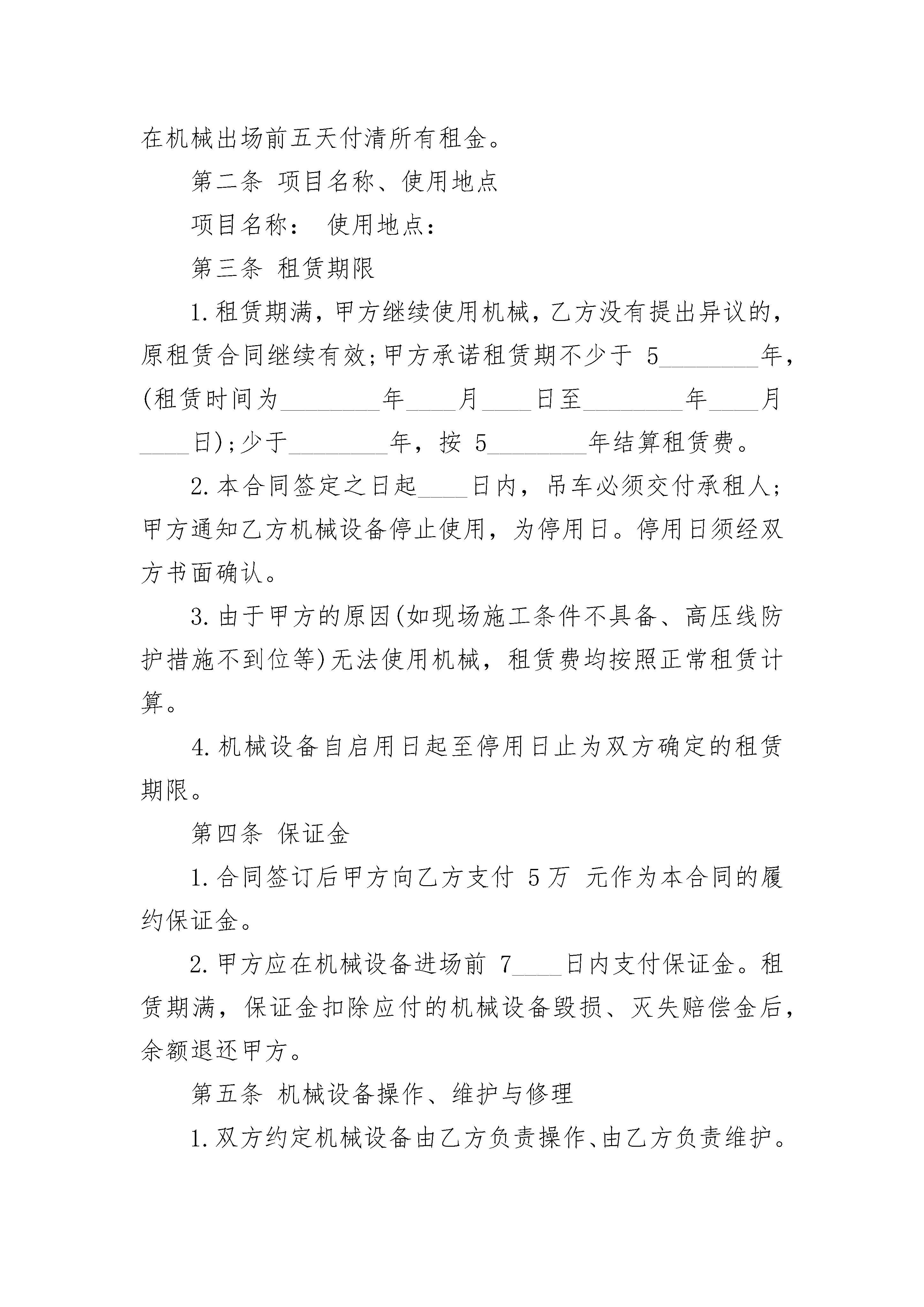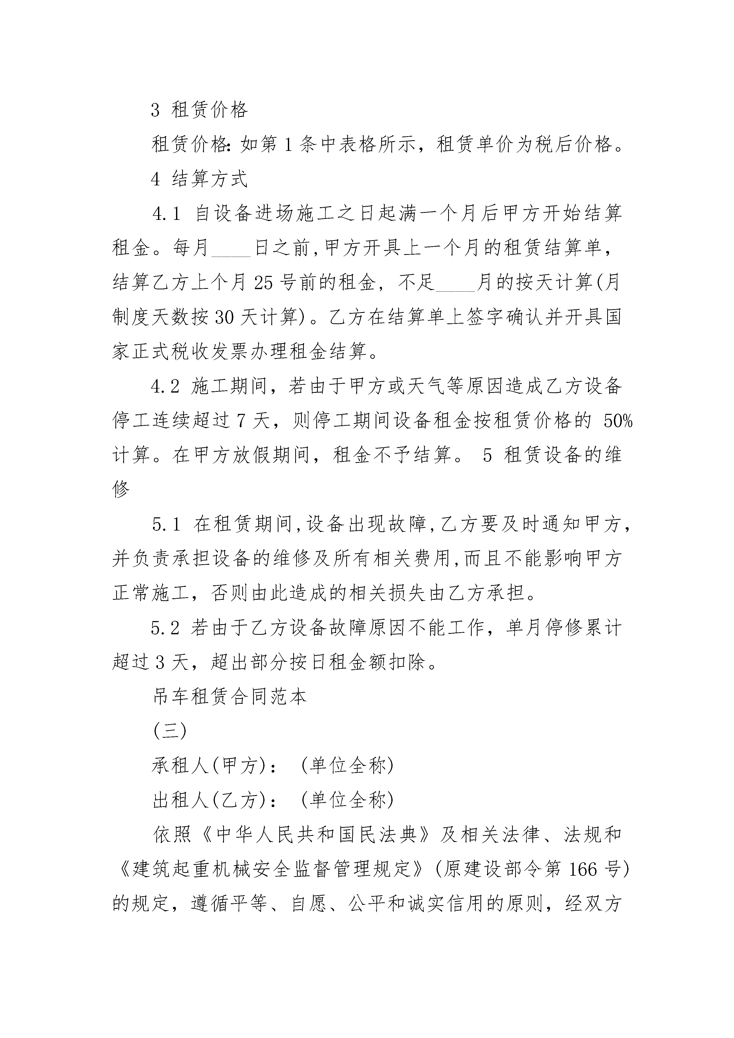 2023年吊车租赁合同免费 吊车租赁合同模板.docx