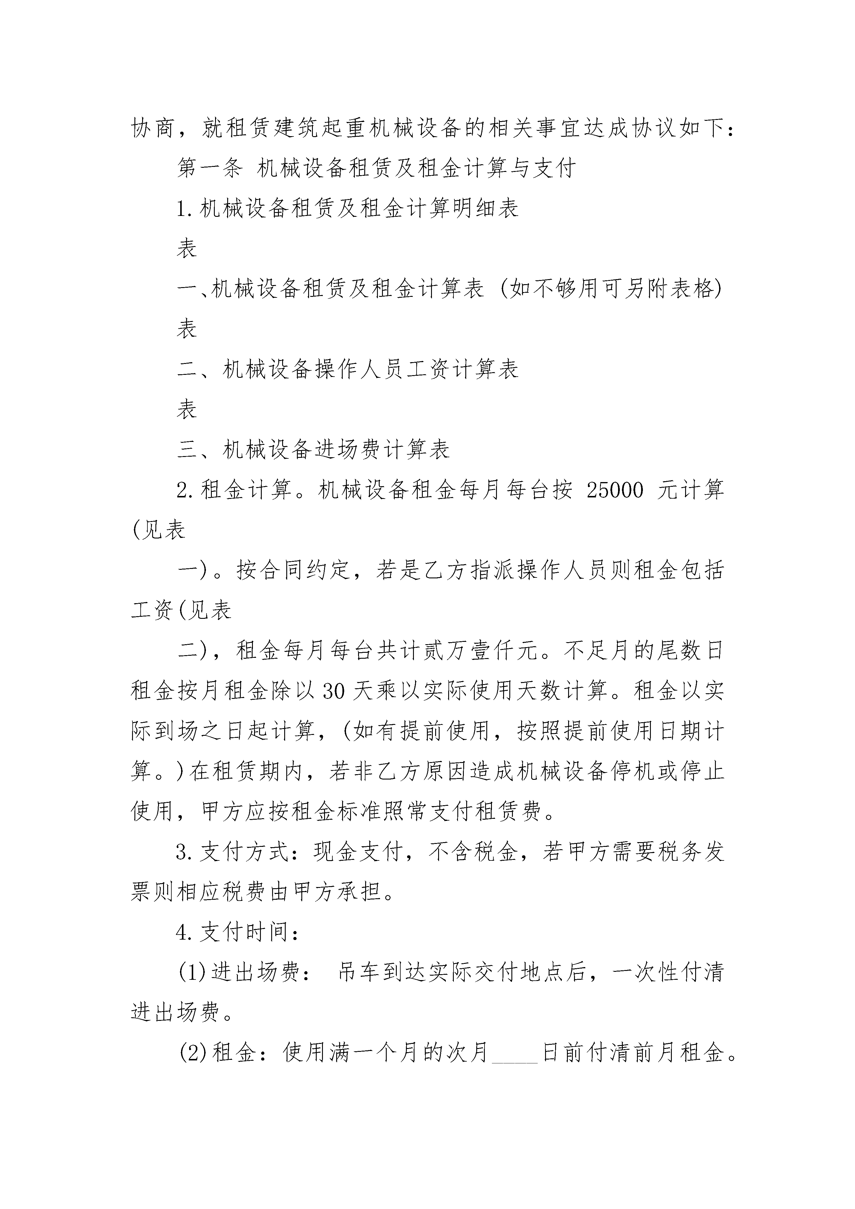 2023年吊车包月租赁合同租赁吊车合同优秀在人民愈发重视法律的社会中,越来越多事情需要用到合同,它也是实现专业化合作的纽带。怎样写合同才更能起到其作用呢?合同应该怎么制定呢?下面是小编给大家带来的合同的范文模板,希望能够帮到你哟!2023年吊车包月租赁合同租赁吊车合同优秀篇一出租方(乙方):兹有甲方因施工需要租用乙方汽车起重机,为明确责任和义务,经双方友好协商,特定立本合同,共同遵守执行。一、吊车类型及数量:根据现场施工需要决定。二、租赁金和付款方式1、每日以一个台班起算;2、每个台班为8小时,以驾驶员进