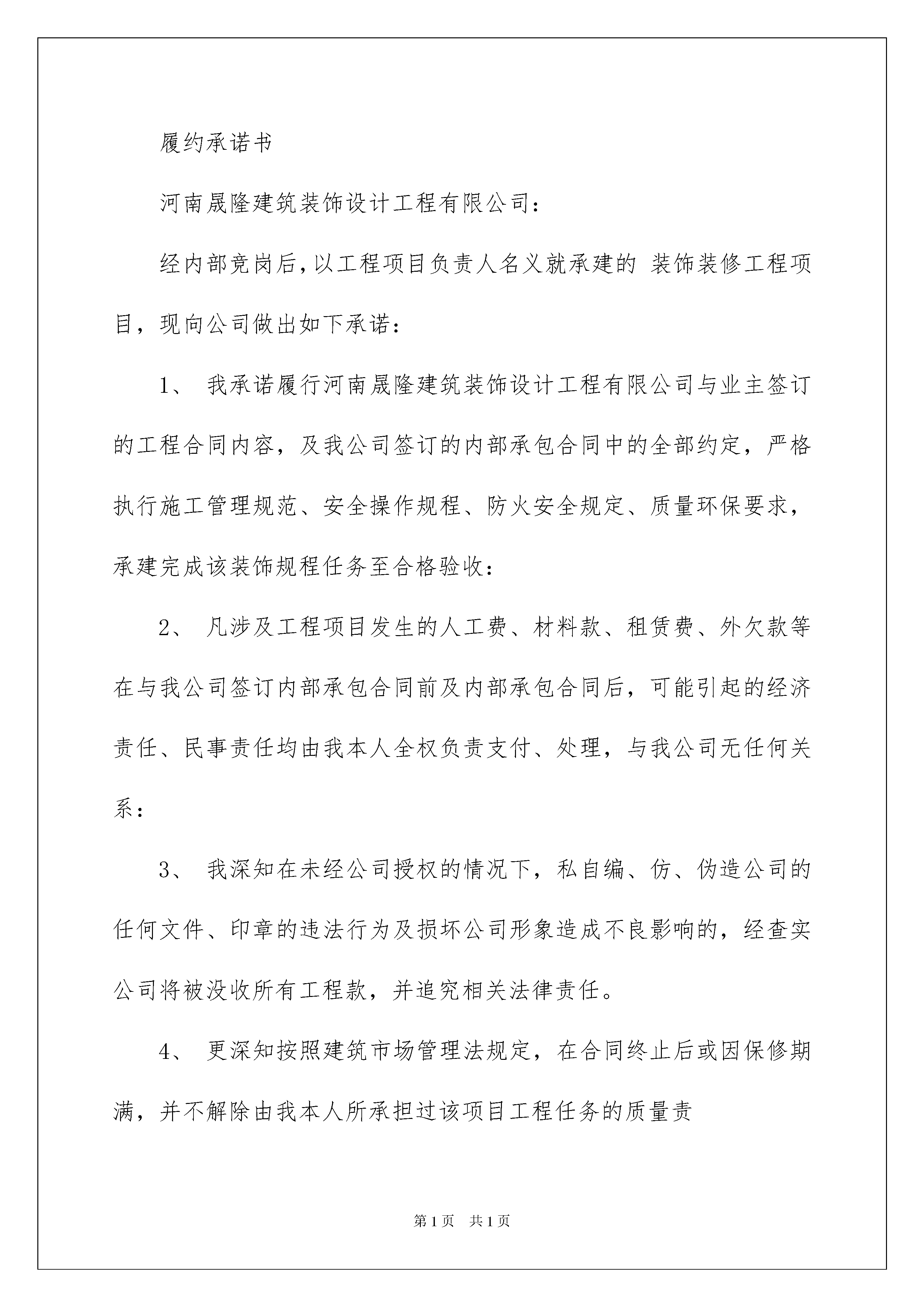 2022关于工程履约承诺书3篇关于工程履约承诺书3篇在发展不断提速的社会中,承诺书在我们的视野里出现的频率越来越高,承诺书通常是要求以书面订立的合同,其承诺也必须采取书面形式。你所见过的承诺书是什么样的呢?下面是我精心整理的工程履约承诺书3篇,仅供参考,欢迎大家阅读。工程履约承诺书篇1消防工程由消防火灾报警系统、水喷淋自动灭火系统及消火栓系统构成,我