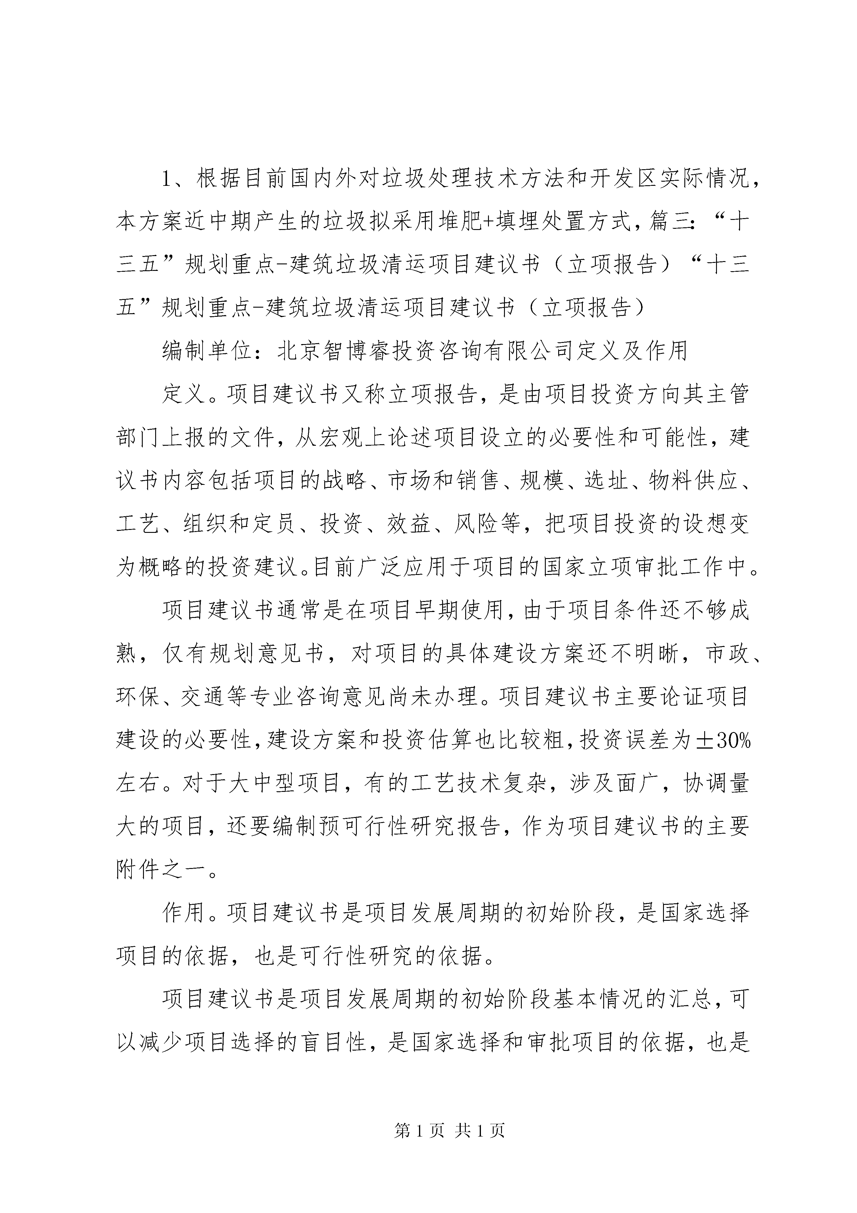 垃圾清运评估报告篇一。垃圾清运承包可行性报告垃圾清运承包可行性报告城市在快速发展垃圾倒向哪里。是现代城市发展中各级政府、职能机构面临的新的大课题。如何保证良好的市容市貌。。近年来随着人民生活水平的不断提高生活垃圾产出量日益增多。虽然村村都有垃圾桶但是多数村垃圾清运不及时村民一再反映影响生活。垃圾的及时清运最大受益者是老百姓。为治理垃圾清运问题我司特申请承办本村垃圾清理运输事务。我司拟逐步开展生活垃圾的规范管理工作。一、开始实施农村地区垃圾规范化管理工