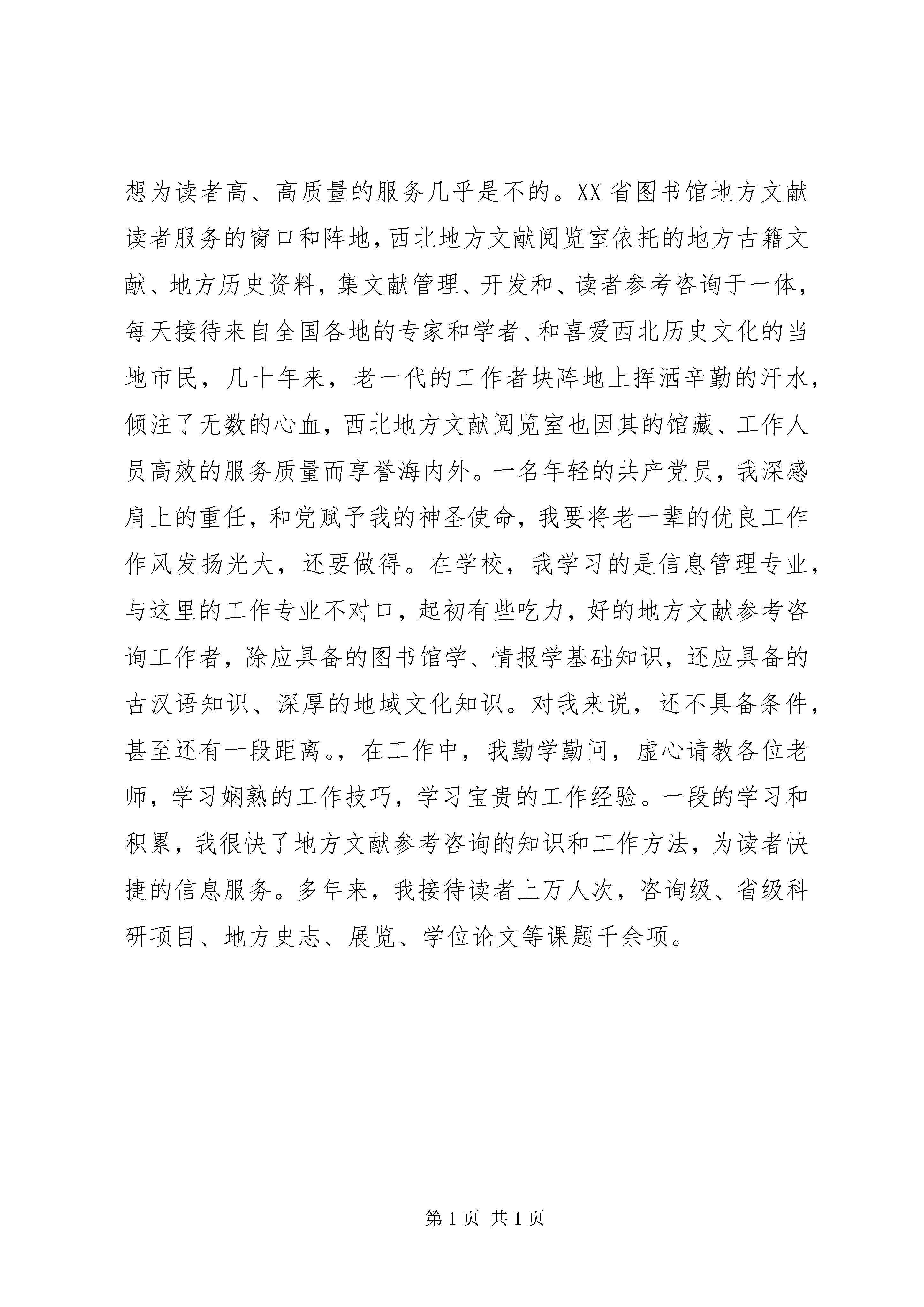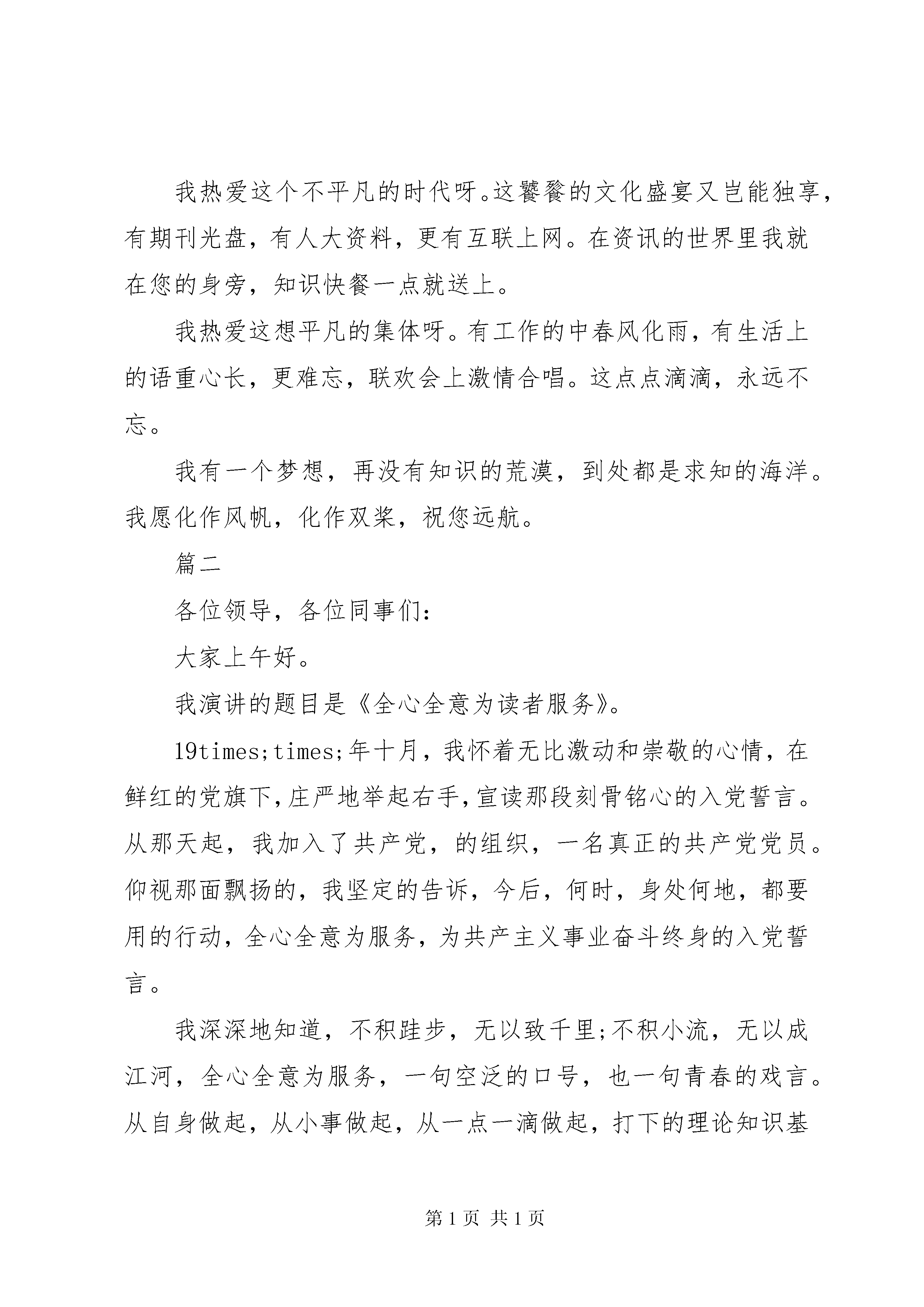 图书馆管理员演讲稿演讲稿可以按照用途、性质等来划分,是演讲上一个重要的准备工作。在发展不断提速的社会中,演讲稿对我们的作用越来越大,在写之前,可以先参考范文,下面是小编为大家整理的图书馆管理员演讲稿,欢迎大家借鉴与参考,希望对大家有所帮助。各位领导,各位同事们:大家上午好!我演讲的题目是《全心全意为读者服务》。19××年十月,我怀着无比激动和崇敬的心情,在鲜红的党旗下,庄严地举起右手,宣读那段刻骨铭心的入党誓言。从那天起,我加入了共产党,的组织,一名真正的共产党党员。仰视那面飘扬的,我坚定的告诉,今后,何