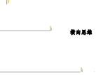第六章横向思维文档附赠有可编辑的3D小人素材一、横向思维横向思维又称水平思考法LateralThinking,这是爱德华·德·博诺EdwarddeBono提出的,他的两本书六顶思考帽和水平思考已经在中国出版,在中国很风行。所谓水平思考是相对于垂直思考而言的垂直思考是以逻辑学和数学为代表的传统思维方法。它强调的是缜密、精确、严谨、程序,它主张一步一步地解析、演绎、推理、立论。德·博诺认为水平思考就是感性的思考。水平思考就好像试图从地面上挖掘清泉,若一处挖不出,不是一股劲儿往下挖,而是换个地方再挖。因此,水平