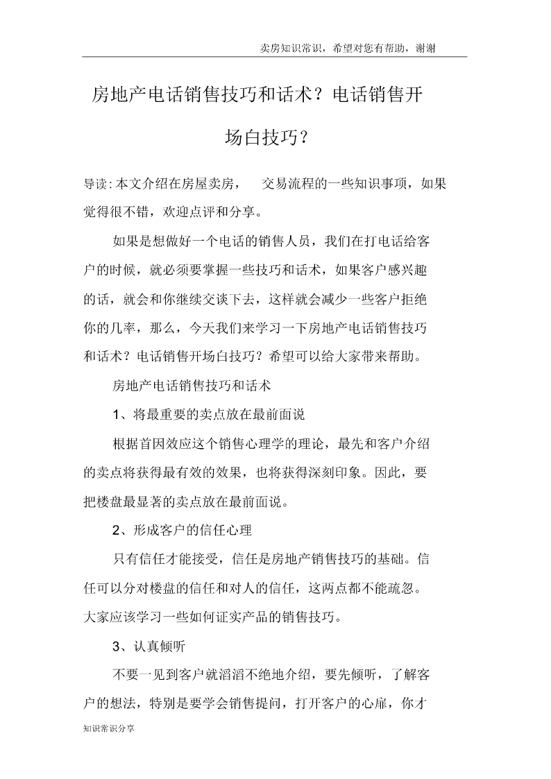 房地产电话销售技巧和话术?电话销售开场白技巧?------.pdf