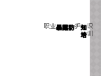 职业暴露防护知识培训内容职业暴露概念暴露源暴露途径及暴露感染的风险职业暴露原因职业暴露处置原则职业暴露处置原则职业暴露报告实验室检测艾滋病病毒职业暴露的分级艾滋病病毒职业暴露的分级HIV暴露预防用药及随访梅毒职业暴露乙肝职业暴露职业暴露预防职业暴露预防职业暴露预防职业暴露预防总结
