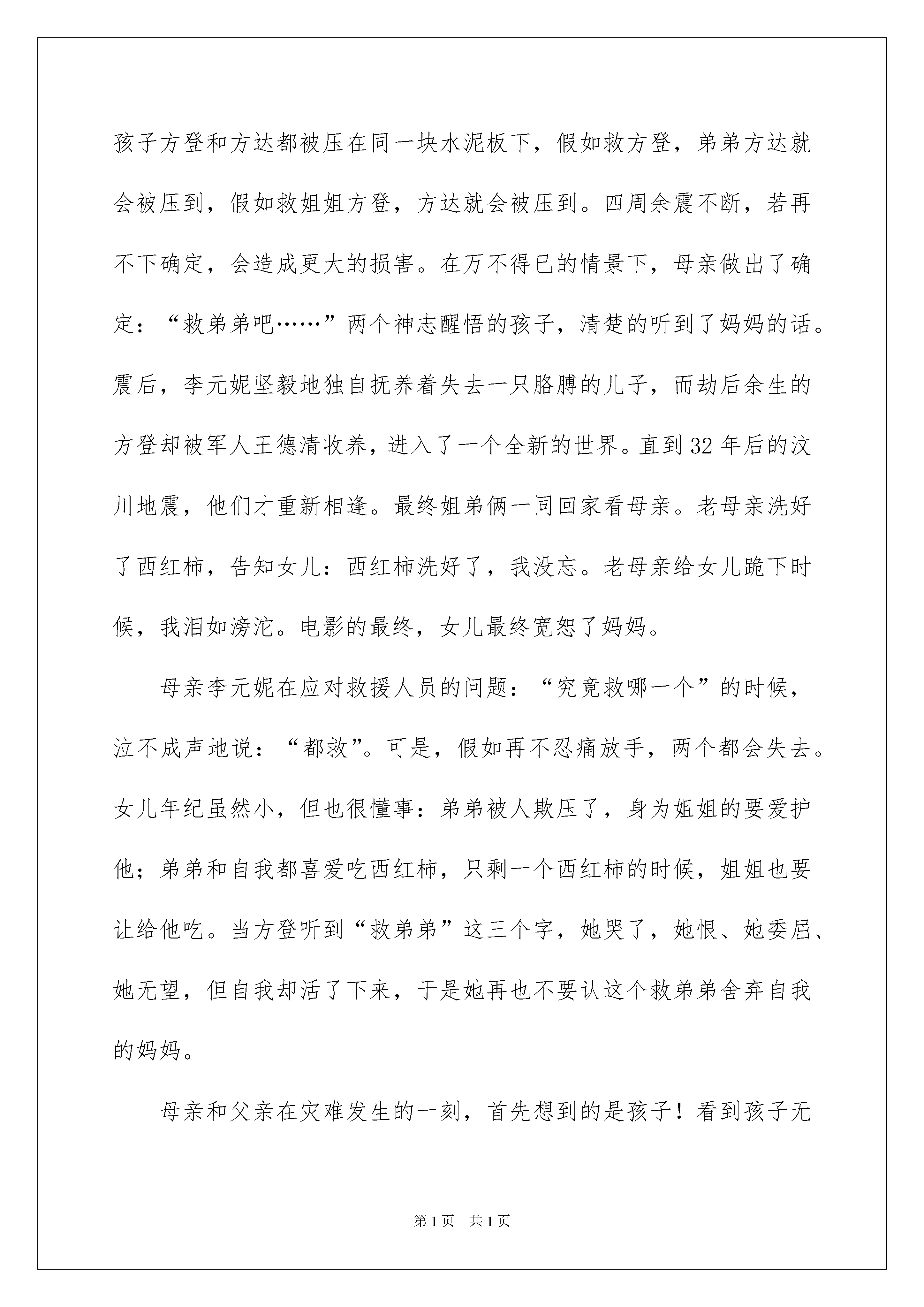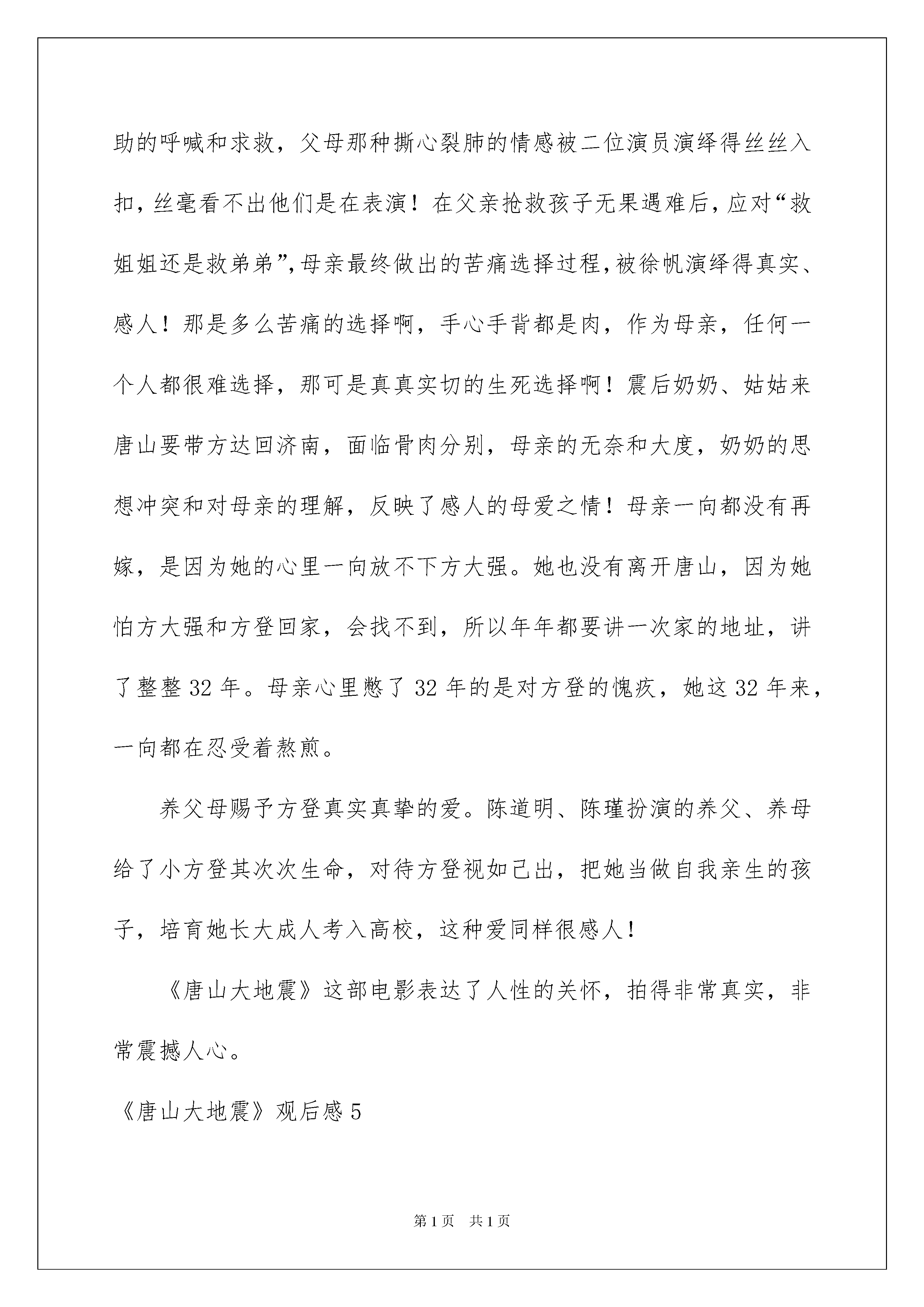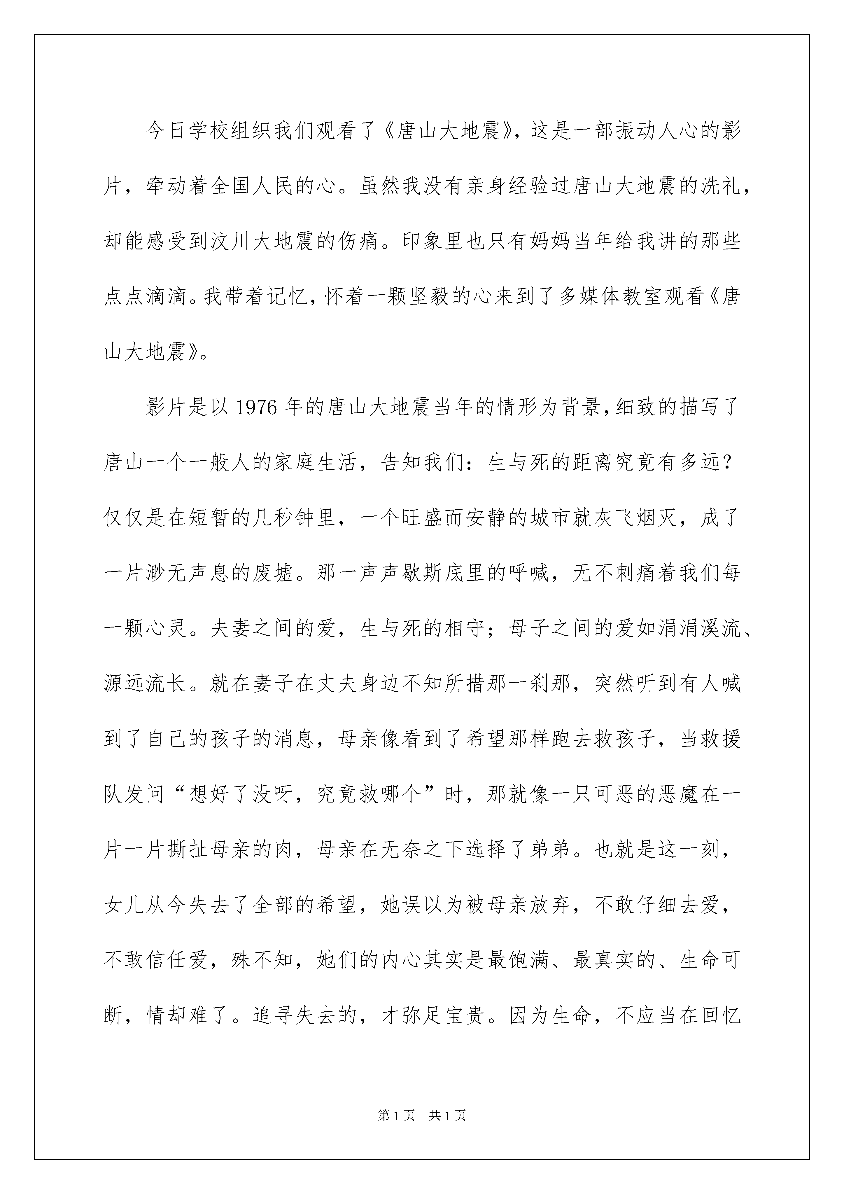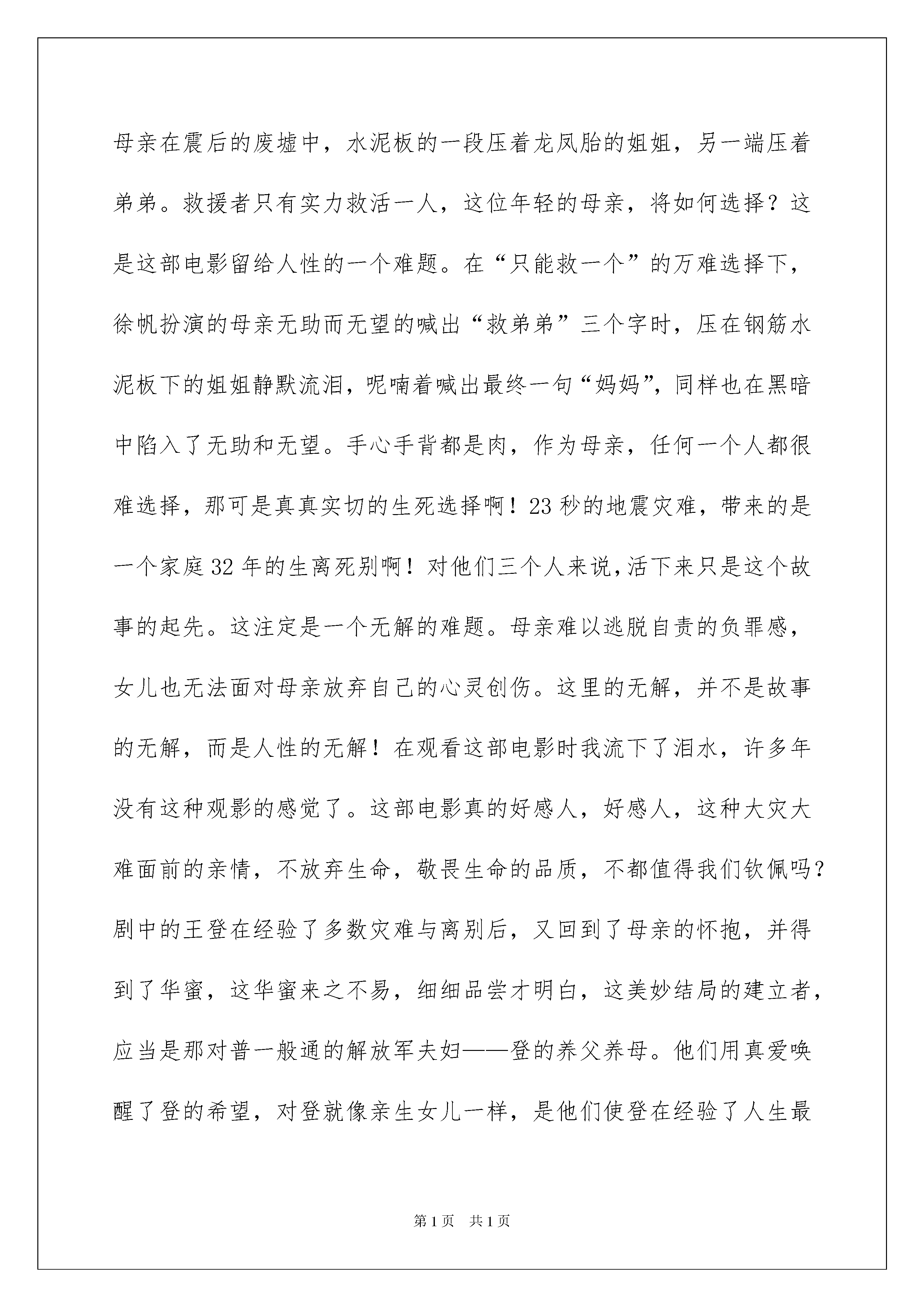 2022唐山大地震观后感唐山大地震观后感当看完一部影视作品后想必你有不少可以共享的东西让我们好好写份观后感把你的收获感想写下来吧。那要怎么写好观后感呢?下面是我细心整理的唐山大地震观后感仅供参考大家一起来看看吧。唐山大地震观后