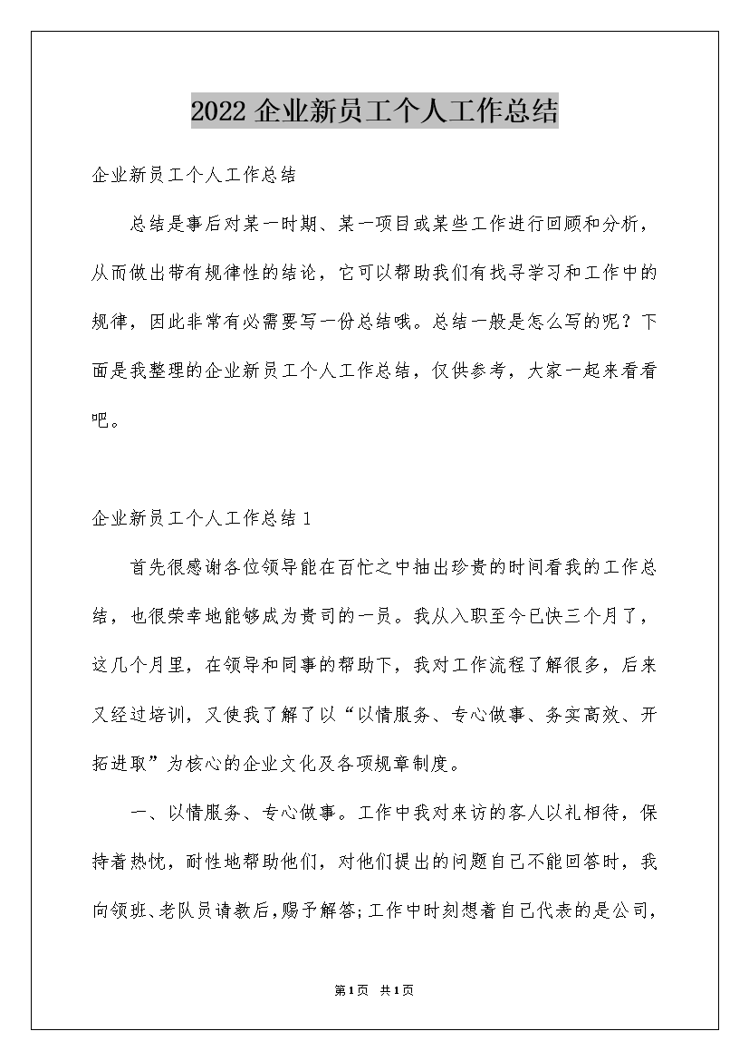 2022企业新员工个人工作总结.docx