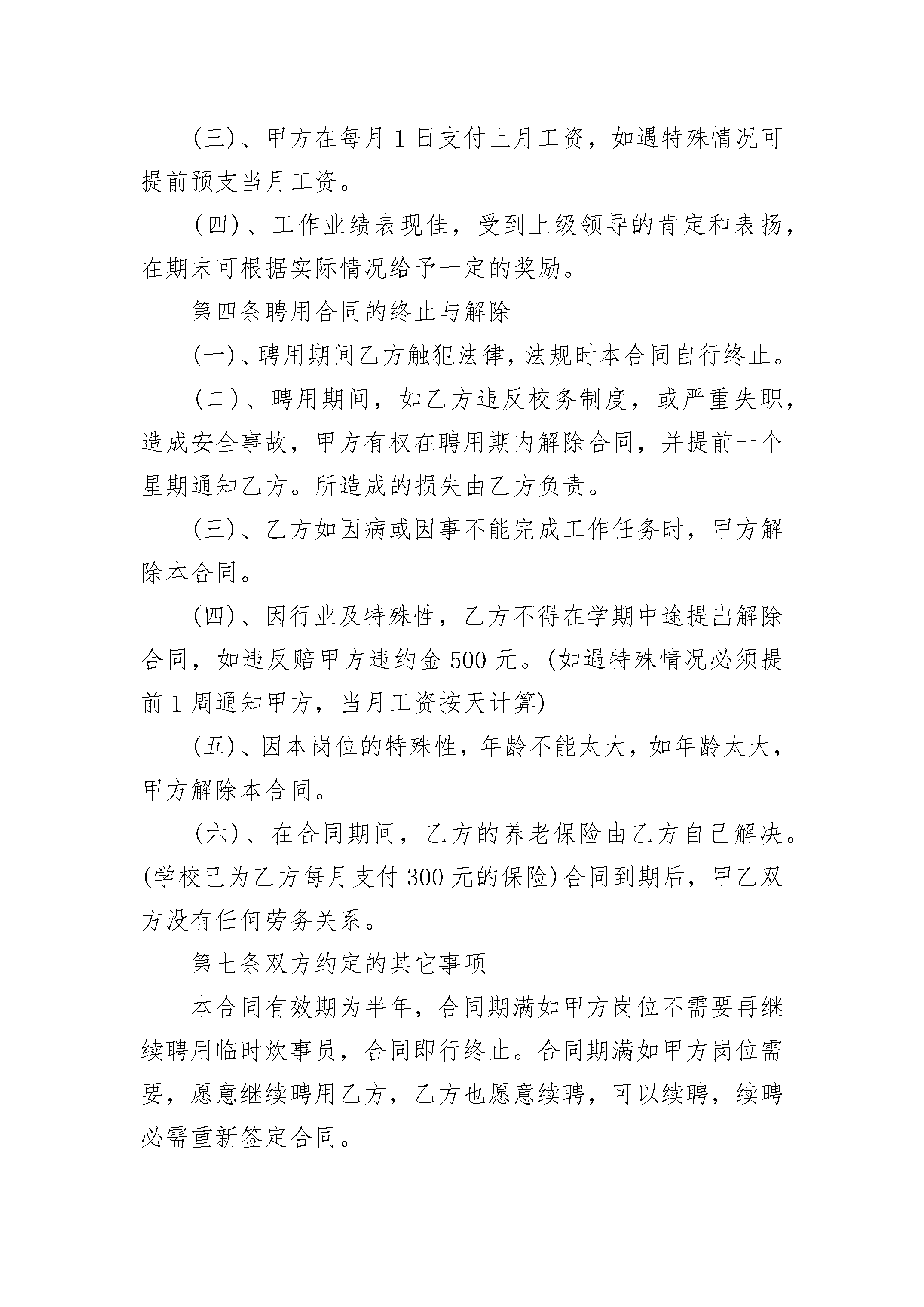 第PAGE\*MERGEFORMAT3页共NUMPAGES\*MERGEFORMAT3页中心卫生院临时工聘用协议书甲方:___________中心卫生院乙方:___________甲方因工作需要聘用临时工作人员,乙方申请应聘并参与甲方组织的专业考试考核合格后,由甲方录用为临时工,并签订临时聘用合同,内容如下:一、聘用期限乙方被录用,在甲方试用期为________月,自________年________月________日至________年________日________日止。试用期满,不能