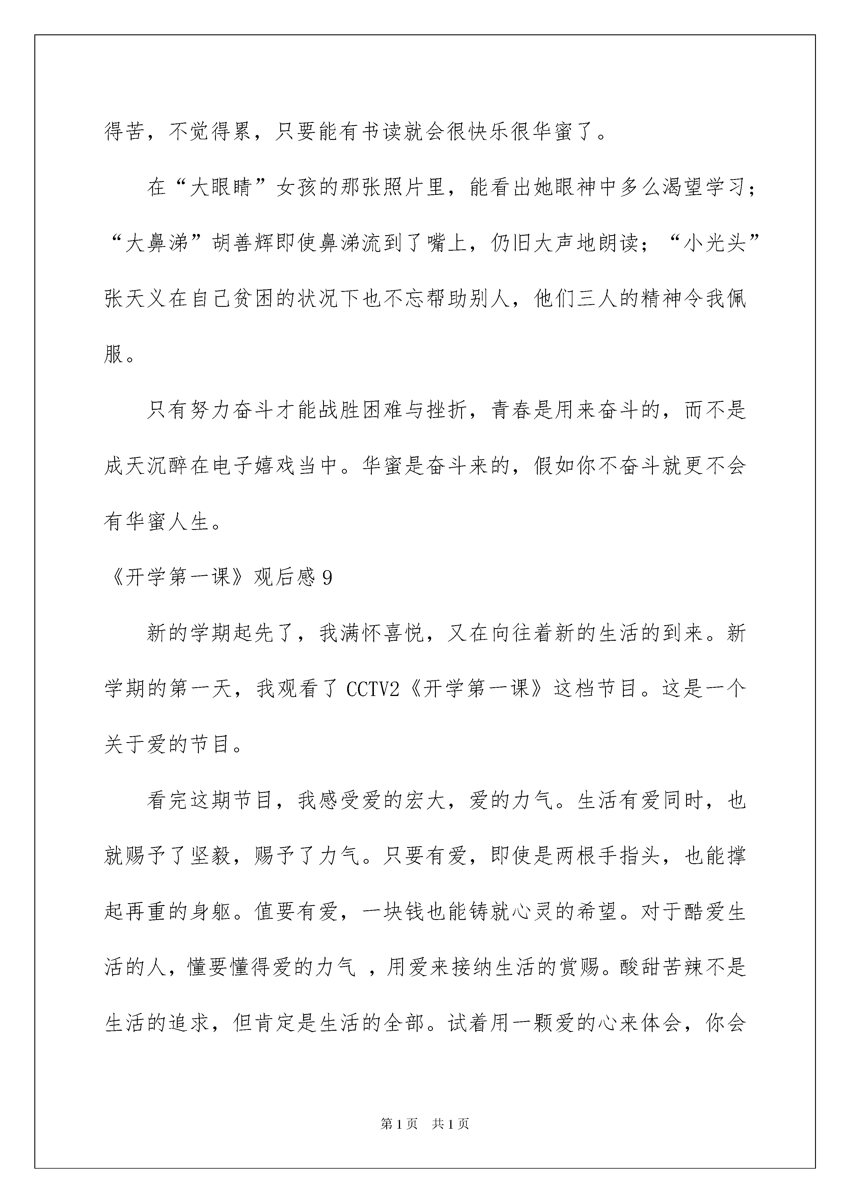 2022《开学第一课》观后感《开学第一课》观后感当看完一部作品后肯定有不少感悟吧让我们好好写份观后感把你的收获感想写下来吧。那么观后感究竟应当怎么写呢?以下是我收集整理的《开学第一课》观后感欢迎大家共享。《开学第一课