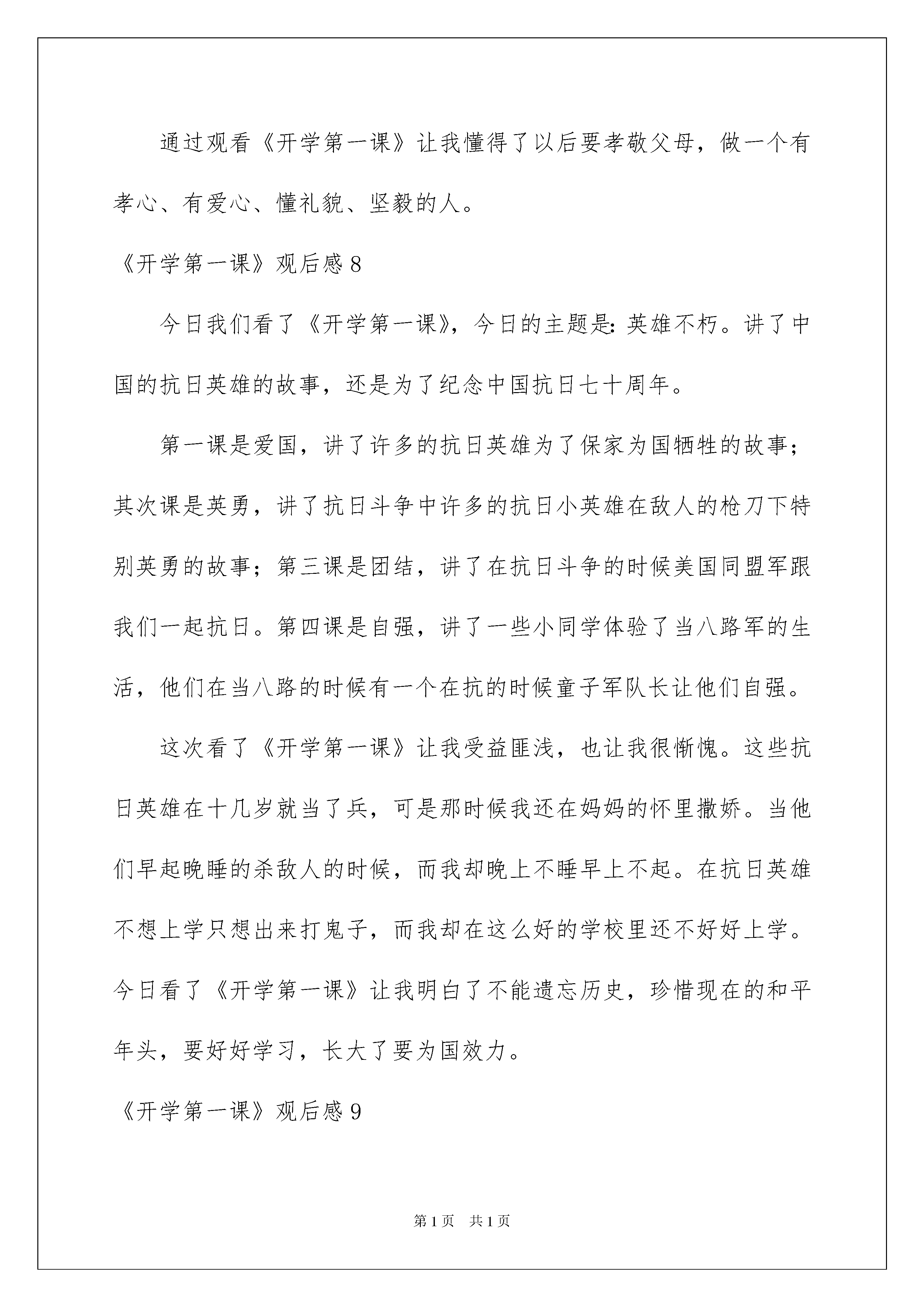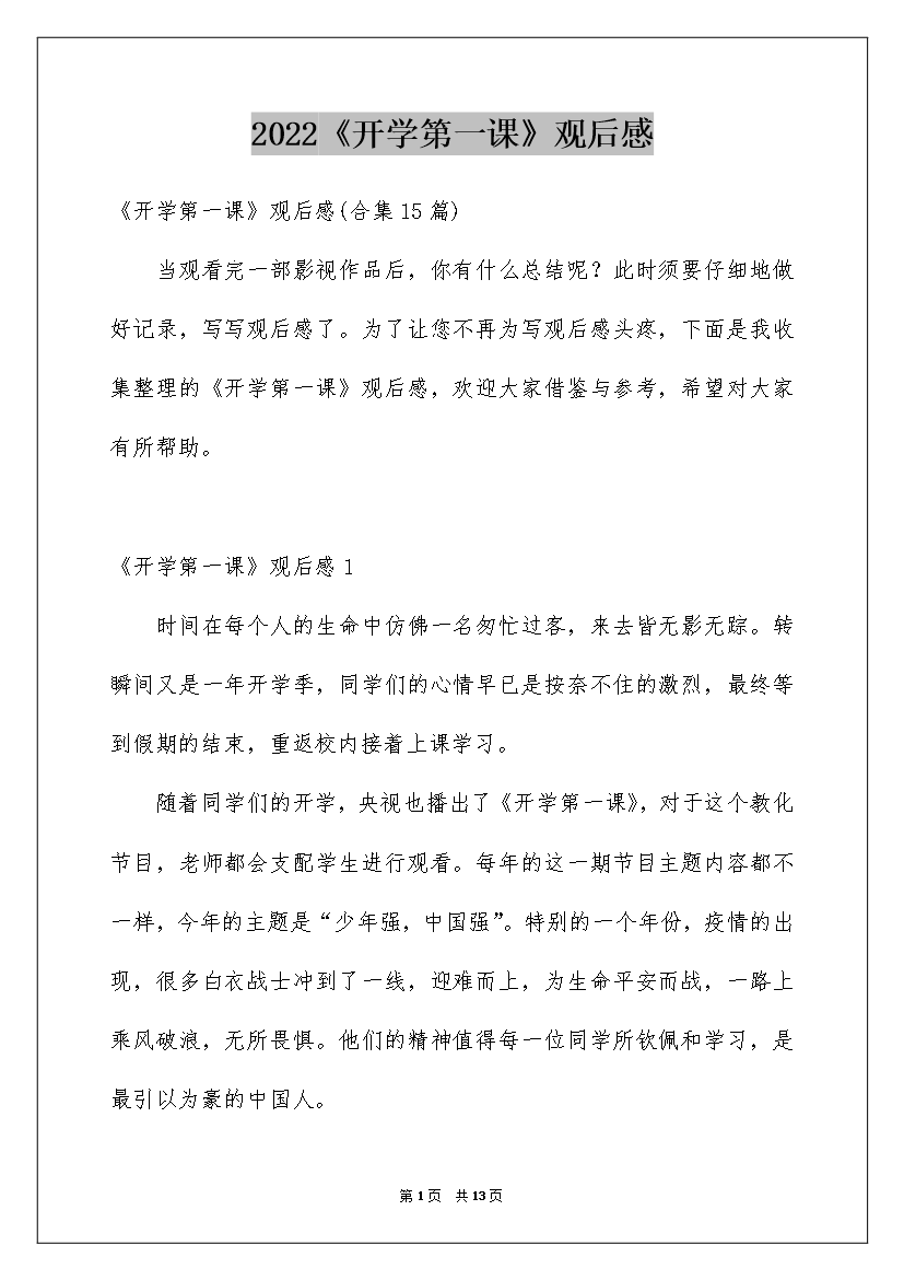 2022《开学第一课》观后感《开学第一课》观后感(合集15篇)当观看完一部影视作品后你有什么总结呢?此时须要仔细地做好记录写写观后感了。为了让您不再为写观后感头疼下面是我收集整理的《开学第一课》观后感欢迎大家借鉴与参考希望对大