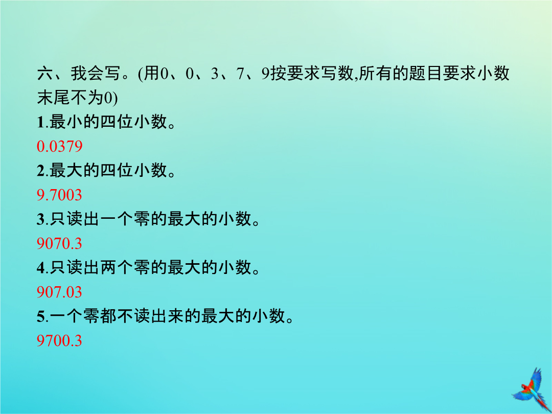 课件-全国-2020_四年级数学下册 第4单元 小数的意义和性质 2 小数的性质和大小比较 第3课时 阶段演练习题课件 新人教版.ppt