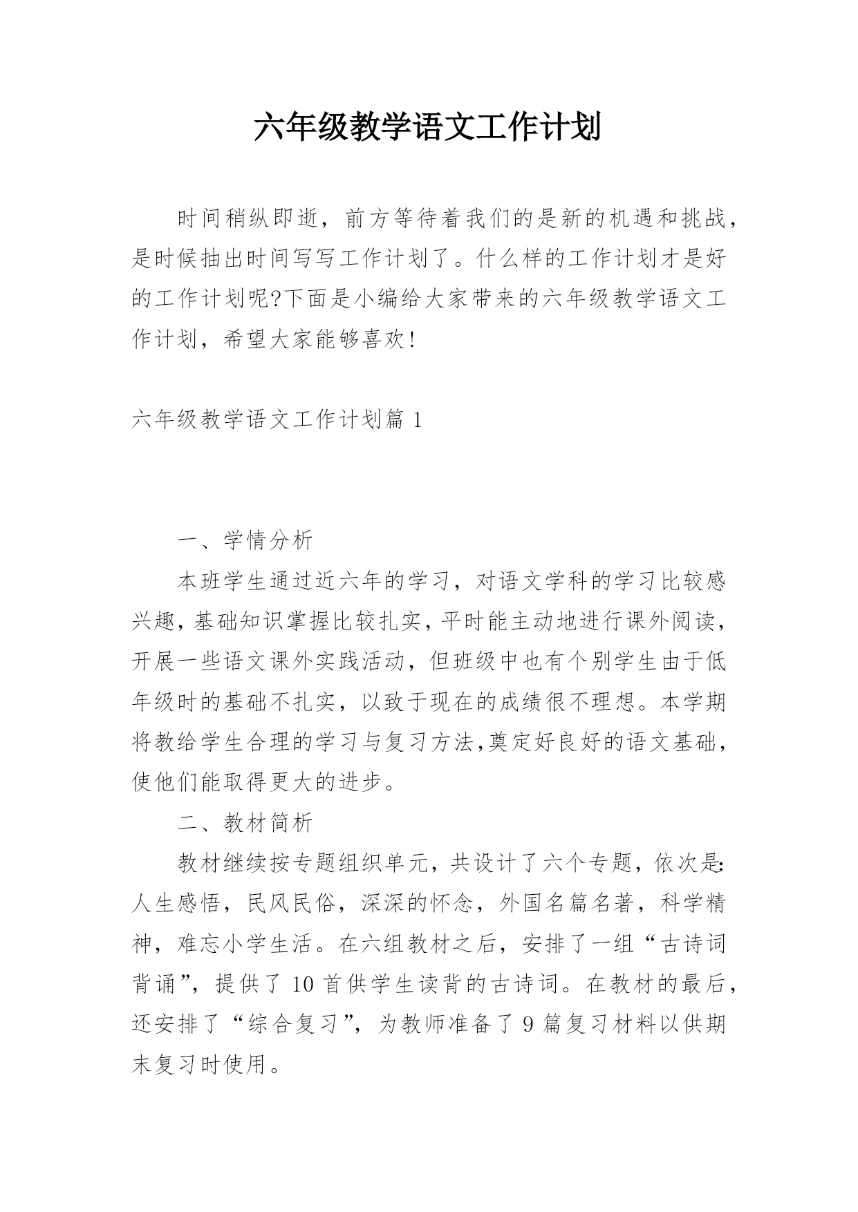 六年级教学语文工作计划时间稍纵即逝,前方等待着我们的是新的机遇和挑战,是时候抽出时间写写工作计划了。什么样的工作计划才是好的工作计划呢?下面是小编给大家带来的六年级教学语文工作计划,希望大家能够喜欢!六年级教学语文工作计划篇1一、学情分析本班学生通过近六年的学习,对语文学科的学习比较感兴趣,基础知识掌握比较扎实,平时能主动地进行课外阅读,开展一些语文课外实践活动,但班级中也有个别学生由于低年级时的基础不扎实,以致于现在的成绩很不理想。本学期将教给学生合理的学习与复习方法,奠定好良好的语文基础,使他们能取得