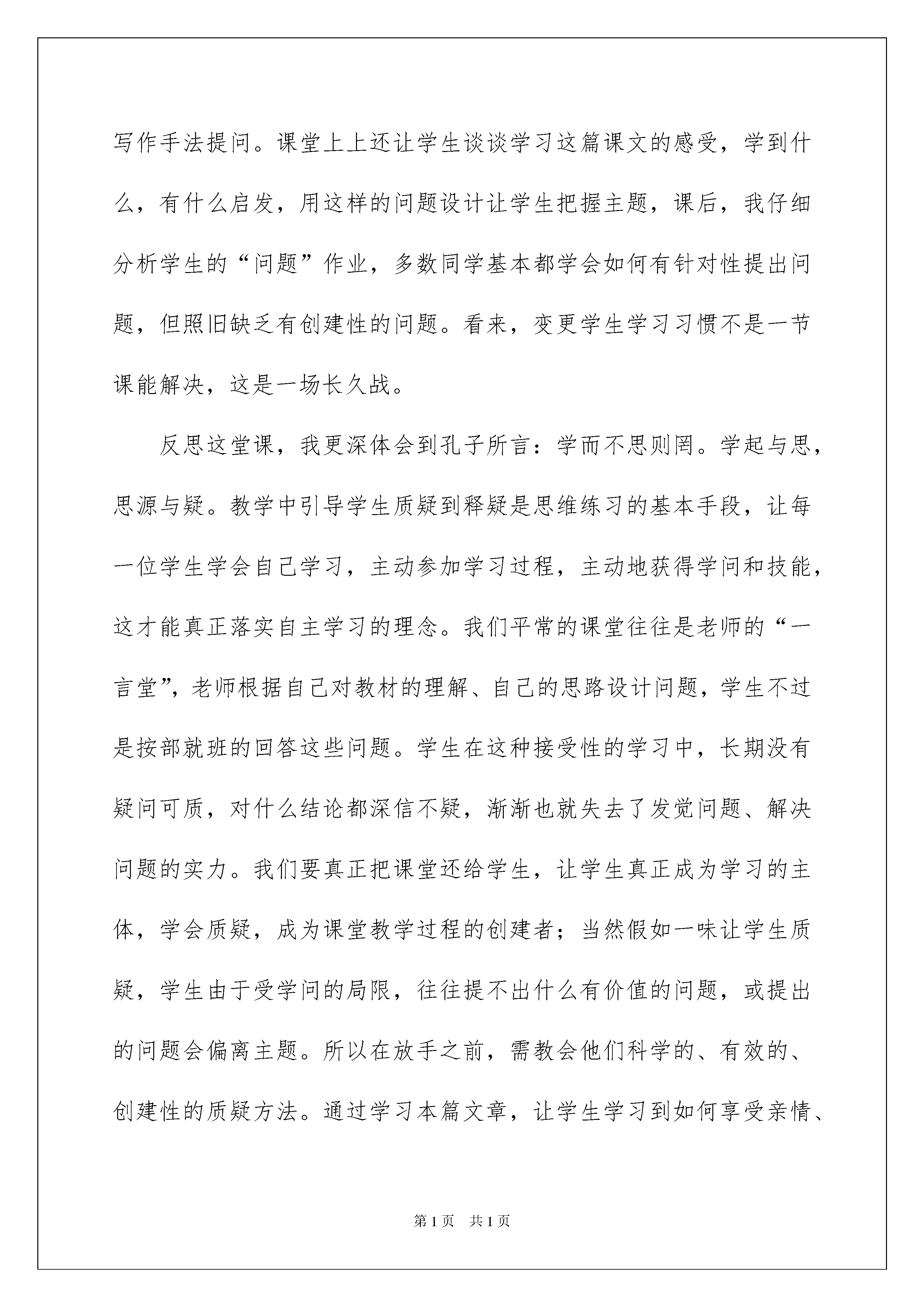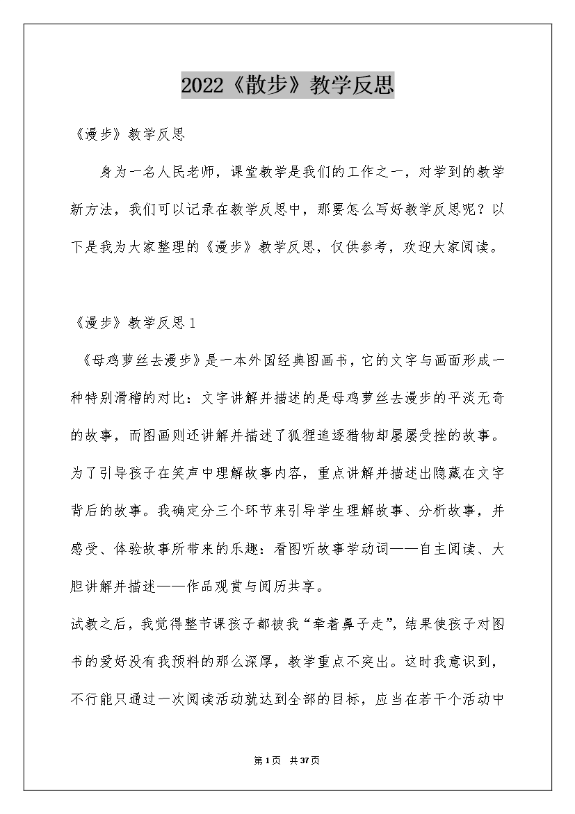 2022《散步》教学反思《漫步》教学反思身为一名人民老师,课堂教学是我们的工作之一,对学到的教学新方法,我们可以记录在教学反思中,那要怎么写好教学反思呢?以下是我为大家整理的《漫步》教学反思,仅供参考,欢迎大家阅读。《漫步》教学反思1《母鸡萝丝去漫步》是一本外国经典图画书,它的文字与画面形成一种特别滑稽的对比:文字讲解并描述的是母鸡萝丝去漫步的平淡无奇的故事,而图画则还讲解并描述了狐狸追逐猎物却屡屡受挫的故事。为了引导孩子在笑声中理解故事内容,重点讲解并描述出隐藏在文字背后的故事。我确定分三个环节来引导学生理解故事、分析故事,并感受、体验故事所带来的乐趣:看图听故事学动词——自主阅读、大胆讲解并描述——作品观赏与阅历共享。试教之后,我觉得整节课孩子都被我“牵着鼻子走”,结果使孩子对图书的爱好没有我预料的那么深厚,教学重点不突出。这时我意识到,不行能只通过一次阅读活动就达到全部的目标,应当在若干个活动中分别体现出来。针对第一次试教出现的问题,我首先将起先部分做了调整,加入了老师的体态语言和语气节奏的示意,带动学生主动地仿照动作、学习词语,结果孩子很快就驾驭了动词的学习。其次,我将孩子自主阅读作为活动的重点。上完本堂课后,我最大的困惑在于:怎样来引导孩子参加故事情节的探讨?课后我经过反思,发觉在引导学生参加故事情节探讨的提问上,缺乏了层次性,科学性,回应也不够恰当,因此孩子参加的主动性也不够高。绘本是老师和学生一起探究图画书的含义?还是把问题抛给学生,学生再依据老师的提问来思索?后来经过研讨,大部分老师都认为应当让学生自己来探究图画书的含义,因为绘本是让孩子自主阅读的图画书,让孩子自主阅读之后,再提出自己的疑问,最终大家一起商讨,解决问题。看似简洁的绘本教学,想要上好像乎不易,须要我们老师较强的课堂应变实力,因此我们老师要不断研讨,一起发觉不足,共同进步。《漫步》教学反思2一、整体反思我设计的教学时间是45分钟,教学的重点是:人物语言中流露出来的爱,教学难点是:以小见大,通过生活小事反映出传统美德--尊老爱幼;教学目标分别为:情感看法与价值观:1.培育学生孝敬长辈、尊老爱幼的情感;2.体会情感,使学生的道德情操和审美趣味得到感染和熏陶;过程与方法:1.设置"悬念",让学生自由猜摩,深化课文的主题;2.查找质疑,让学生自主学习和探究学习,充分发挥学生的理解和感悟,挖掘本文的主旨;学问与技能:1.闭上眼睛听读,感知课文部分内容,对下一部分内容进行猜想。2.快速阅读,整体感知课文内容并与"猜想"内容进行比较。优点:1、能结合学生实际及教材的内容确定教学的重难点;2、教学时间设置合理,用45分钟的时间,完成本课的教学目标;3、教学目标的确定合理;缺点:1、教学目标设置过多;2、学问与技能目标设置欠合理,像过程与方法目标。二、教学过程设计反思教学过程的第一步是导入语,我设计的是播放《跪羊图》这首歌,主要是营造气氛,播放结束后就以"香九龄,能温席"的故事引入课文;教学的其次步是"猜摩"教学:听朗诵,当读到"母亲要走大路,大路平顺;我的儿子要走小路,小路有意思,。"停止播放,让学生来探讨"我和妻子该怎么办?"有那些方案?教学的第三步是课文探讨:学生选择适合自己朗读的方式进行快速阅读并以四人一个小组进行探讨,找出不明白的词语和句子,并生生、师生解决。教学的第四步是深挖主题:围绕"文中谁的权力大?"来绽开探讨。教学的第五步是归纳总结并展示"板书"。以上五个步骤,我认为设计得好的有1、其次步"猜摩"教学,学生闭上眼睛细致听朗读,听到有"分歧"的地方,老师让学生进行猜想,充分发挥学生的想象力,调动学生的主动性,对主题的理解埋下伏笔。2、第四步深挖主题,老师只设计了一个问题"文中谁的权力大?"绽开探讨。其实老师出示的是一个错误的结论,让学生进行圈套,学生通过争辩才发觉这样一个家庭是没有权力之分的,这时才明白老师的良苦专心,是用来挖掘主题的。不足之处:1、导入语重复,一首歌、一个故事显得多余,二者只能取一。2、教学的第三步,交待不清晰,老师的引导没有设置进去,随意性强,可以分段进行布置任务,有意识的支配学生对主要问题的质疑。3、板书设计标识性不强,不美观,应改为箭头可能要直观些,更简单体现主题。三、教学技能与教学策略反思1、对比教学设计不错,学生"猜想"的与作者写的进行对比,加深理解,深化主题。2、阅读指导到位,充分体现了学生的主体地位,体现了语文教学的特点。3、教学策略、教学组织形式恰当,能够较好的促进教学目标的实现。不足之处:1、学生自主学习时没有设计老师的引导,没有对学生质疑的问题进行合理的筛选