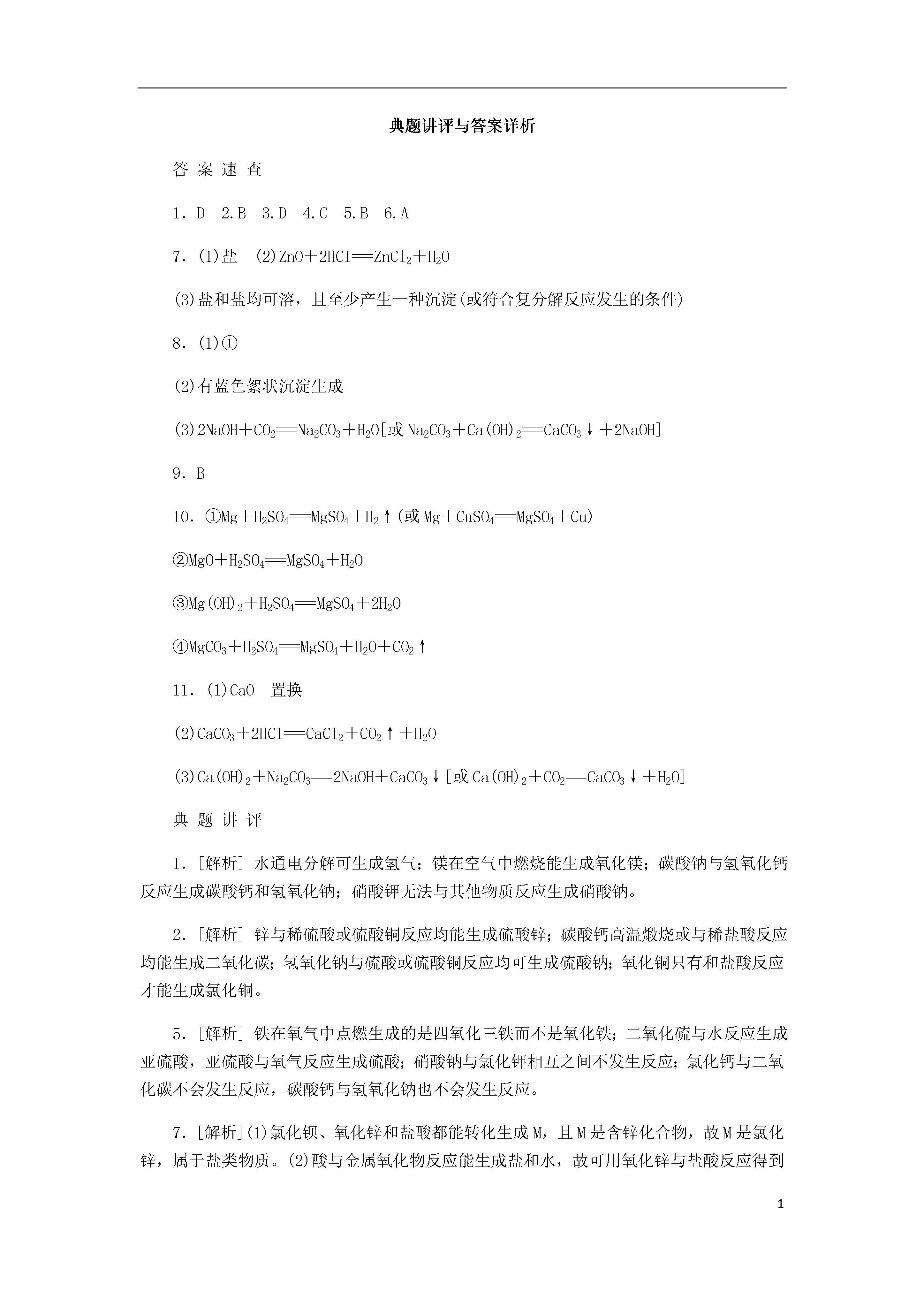1中考特训(八)单质、氧化物、酸、碱、盐的相互反应方法归纳酸、碱、盐之间的相互转化,难度较大。在复习时应加强对知识的积累,熟练掌握酸、碱、盐之间相互反应的规律。如FeSO4不能直接转化为Fe(OH)3(复分解反应中各化合物的化合价应不变),KNO3不能转化为其他物质(KNO3与其他物质反应都不满足复分解反应发生的条件)。题型一转化型1.2017·武威下列物质间的转化不能一步完成的是()A.H2O→H2B.Mg→MgOC.Na2CO3→NaOHD.KNO3→NaNO32.下列各
