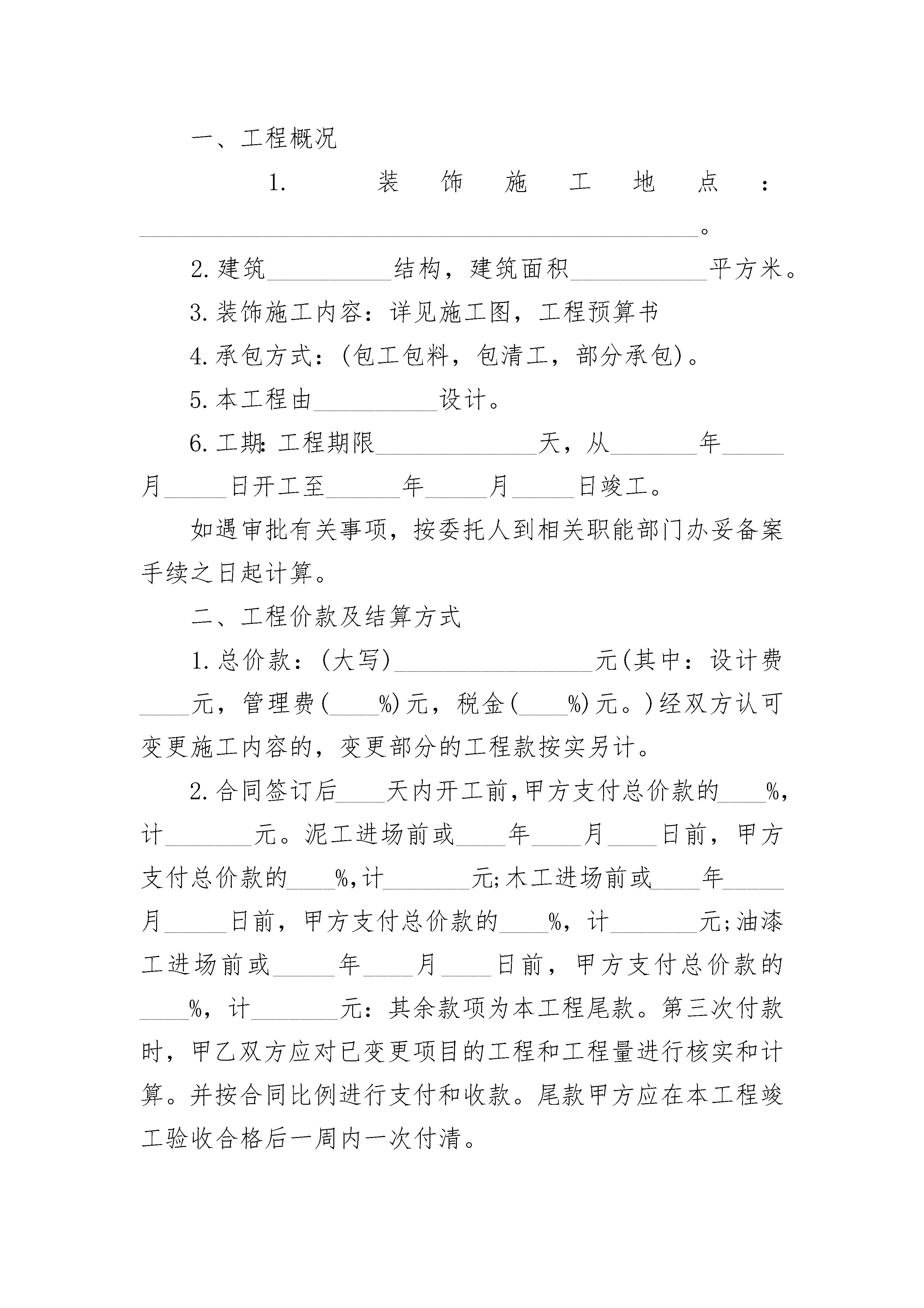 标准房屋装修合同标准标准房屋装修合同范本标准如今的房屋装修合同有着千条万绪的条款,家装者往往会因此而“迷了眼”,但是其中的每个条款、每项内容在将来的家装中可能会带来巨大的'影响,所以对于装修施工合同的认识不能少。为了减少日后不必要的麻烦,事先了解清楚个人房屋装修合同的内容很是重要。下文就跟着小编一起来了解下。范文一委托方(甲方):承接方(乙方):工程项目:_____________________________________________________________。甲、乙双方经友好洽谈和协商,