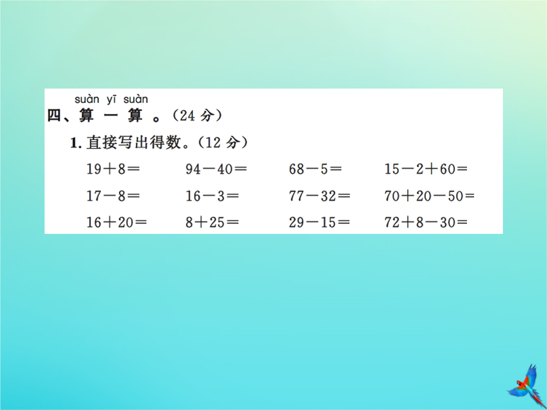 课件-全国-2020_一年级数学下学期期末测试卷(二)课件 北师大版.ppt