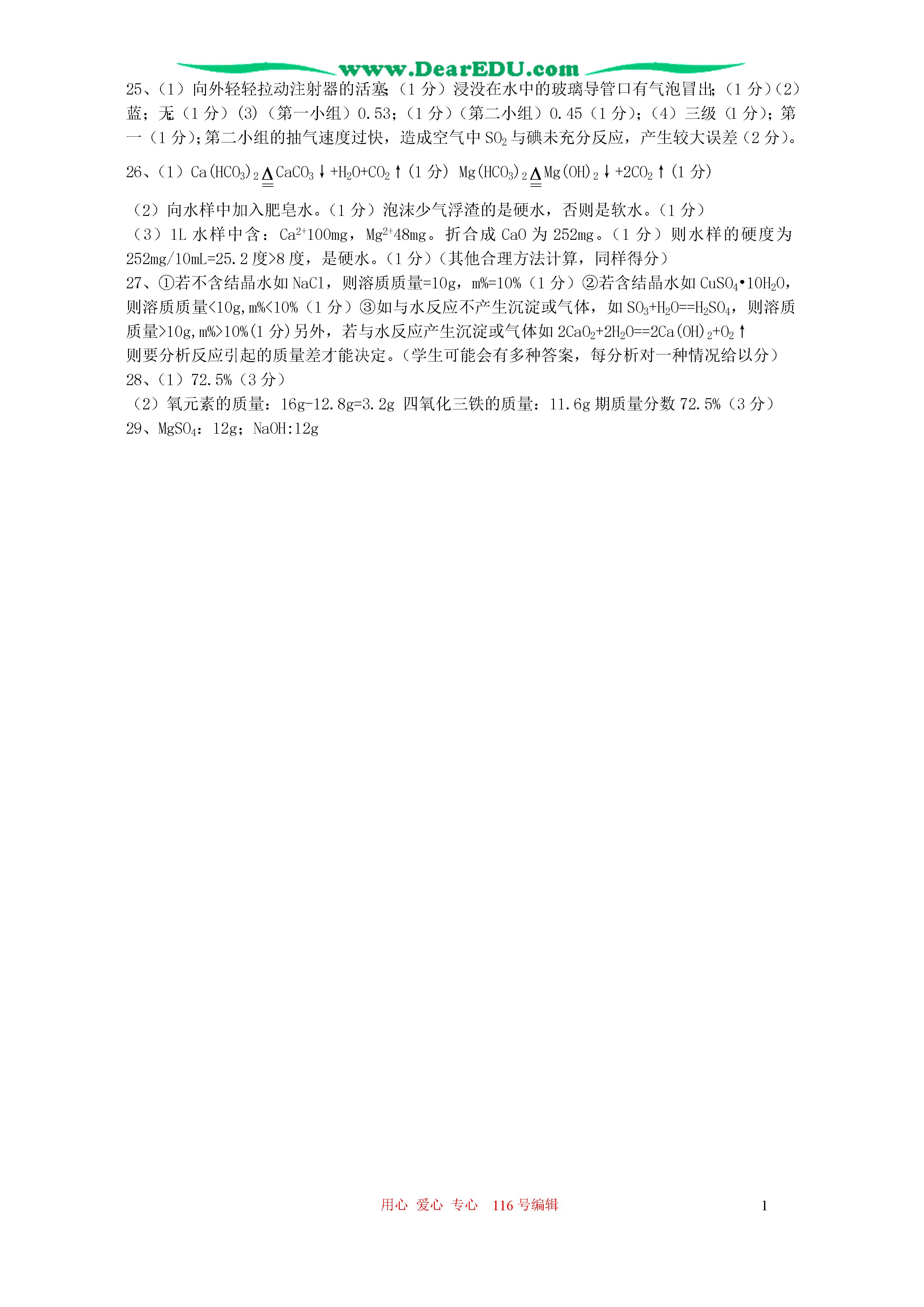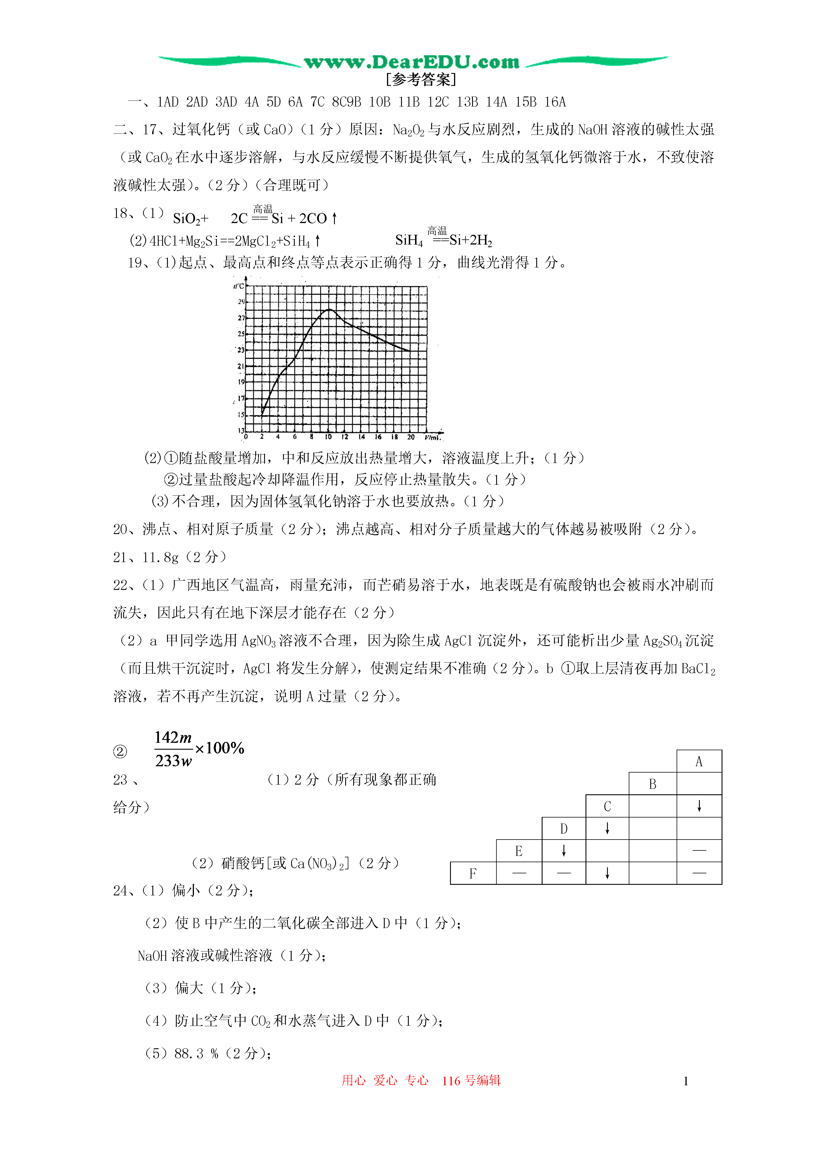用心爱心专心116号编辑12006年全国初中学生化学素质和试验能力竞赛山东省初赛试题http://www.DearEDU.com(满分:100分考试时间:120分钟)可能用到的相对原子质量:H1C12N14O16Na23Ca40Mg24S32Cl35.5Cu64Fe56I127Ba137选择题(本提共16个小题,每小题2分,共32分。每小题有1个获2个选项符合题意。如有2个答案的,错一个不得分,漏选1个扣1分)1、下列关于原子的观点正确的是()A原子字的质量与原子核质子和中子的总数量密