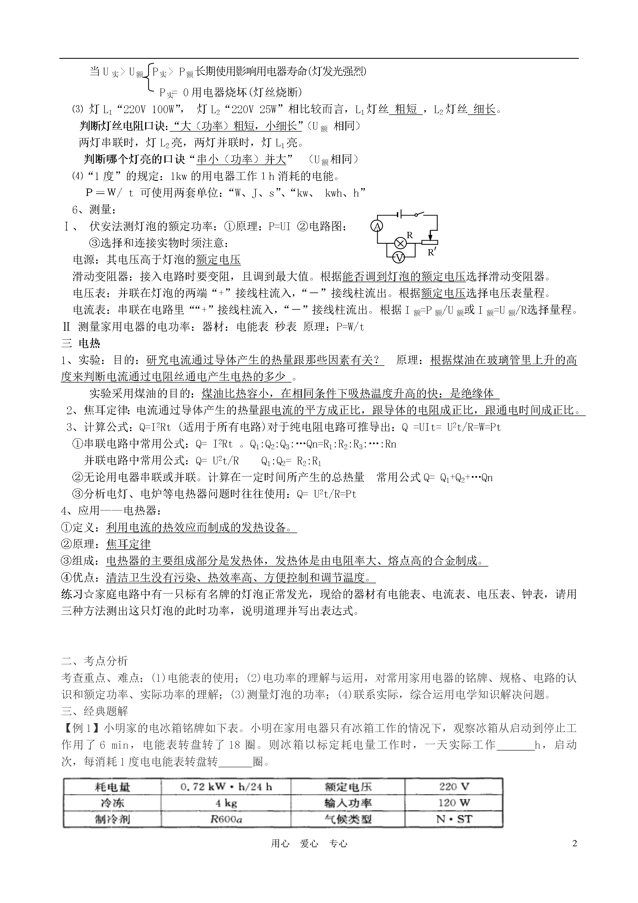12用心爱心专心初中物理总复习――《热学》■复习设计思路:分为两大部分内容来进行。复习时,每一部分按照“知识架构→典例分析→习题巩固→中考热身”四层次进行,让学生重现知识,逐步深入,熟练掌握各知识点,从而达到中考要求。各层次说明:知识架构:以框架形式将知识点罗列出来,关键的地方需填空补充,使学生有一个整体的知识网络。典例分析:选取典型例题进行分析,让学生学习解题的方法、过程和重要知识点的运用。习题巩固:根据各知识点的轻重,编设了针对性强的习题,结合“知识架构”运用,达到巩固知识的目的。中考热身:精选了广州