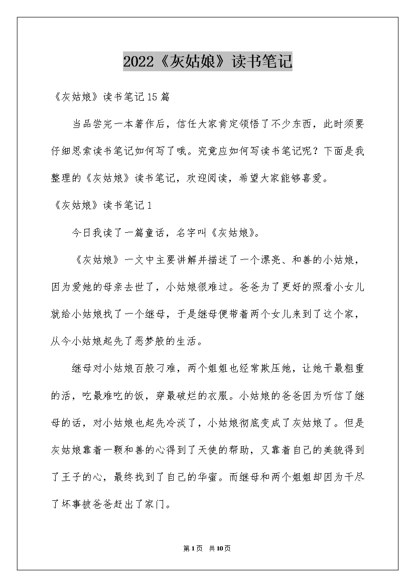 2022《灰姑娘》读书笔记《灰姑娘》读书笔记15篇当品尝完一本著作后信任大家肯定领悟了不少东西此时须要仔细思索读书笔记如何写了哦。究竟应如何写读书笔记呢?下面是我整理的《灰姑娘》读书笔记欢迎阅读希望大家能够喜爱。《灰姑娘》读书
