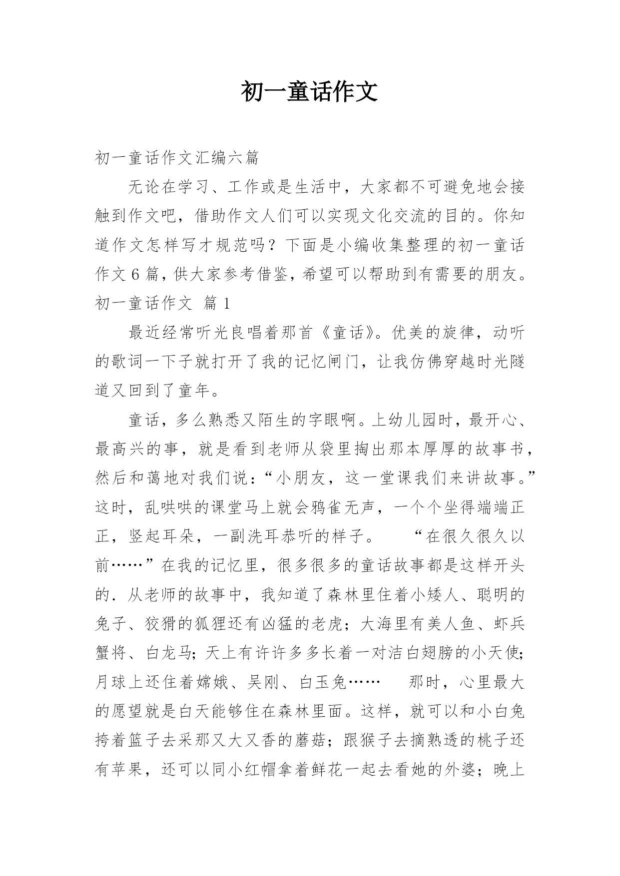 初一童话作文初一童话作文汇编六篇无论在学习、工作或是生活中,大家都不可避免地会接触到作文吧,借助作文人们可以实现文化交流的目的。你知道作文怎样写才规范吗?下面是小编收集整理的初一童话作文6篇,供大家参考借鉴,希望可以帮助到有需要的朋友。初一童话作文篇1最近经常听光良唱着那首《童话》。优美的旋律,动听的歌词一下子就打开了我的记忆闸门,让我仿佛穿越时光隧道又回到了童年。童话,多么熟悉又陌生的字眼啊。上幼儿园时,最开心、最高兴的事,就是看到老师从袋里掏出那本厚厚的故事书,然后和蔼地对我们说:“小朋友,这一堂课我