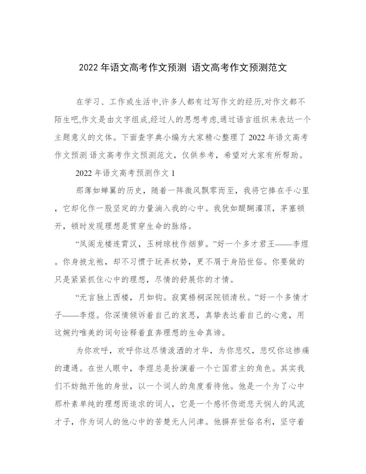 2022年语文高考作文预测 语文高考作文预测范文.docx