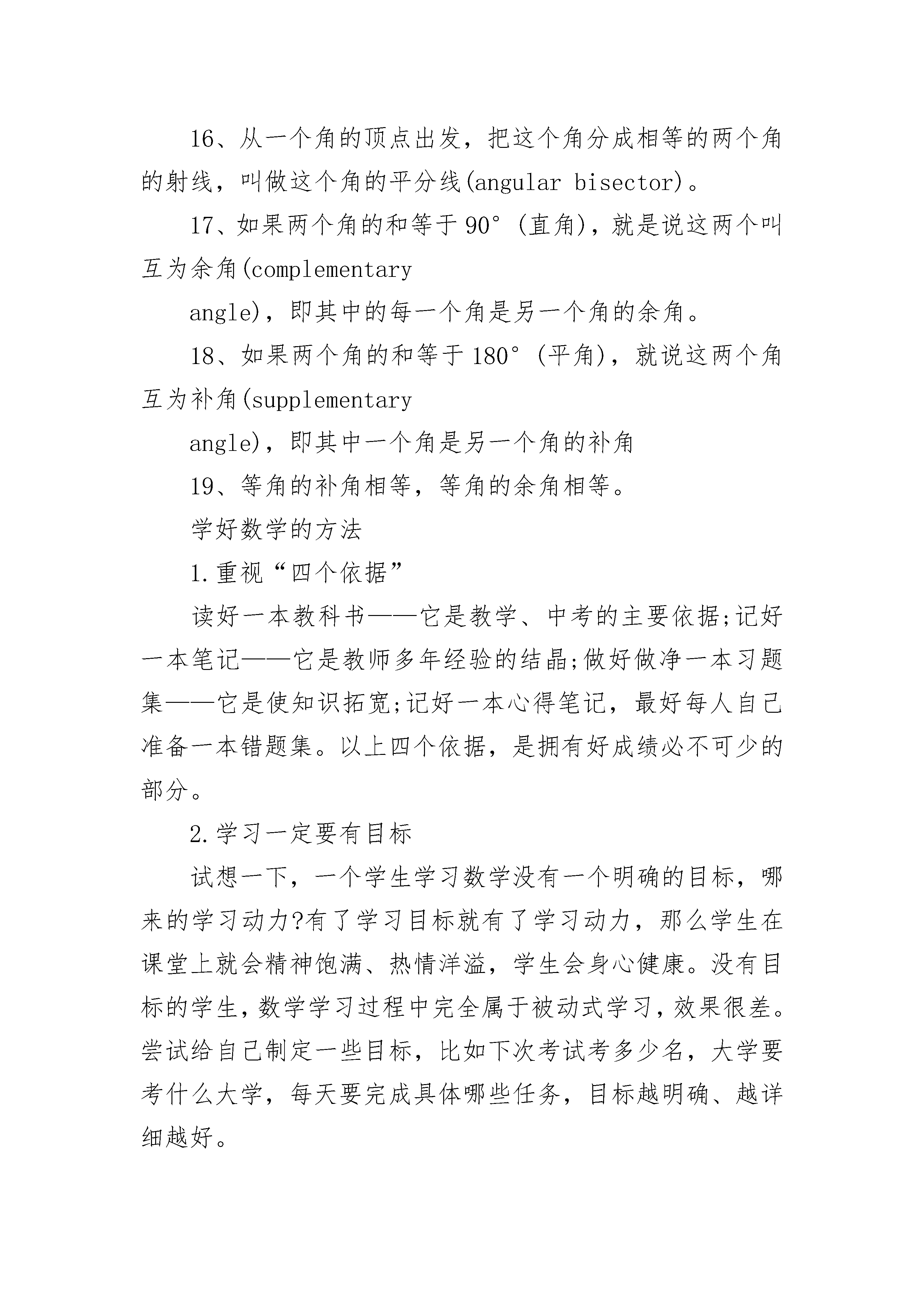 七年级数学上册期末复习提纲一:有理数概念、定义:1、大于0的数叫做正数(positivenumber)。2、在正数前面加上负号“-”的数叫做负数(negativenumber)。3、整数和分数统称为有理数(rationalnumber)。4、人们通常用一条直线上的点表示数,这条直线叫做数轴(numberaxis)。5、在直线上任取一个点表示数0,这个点叫做原点(origin)。6、一般的,数轴上表示数a的点与原点的距离叫做数a的绝对值(absolutevalue)。7、由绝对值的定义可知:一个正数的绝