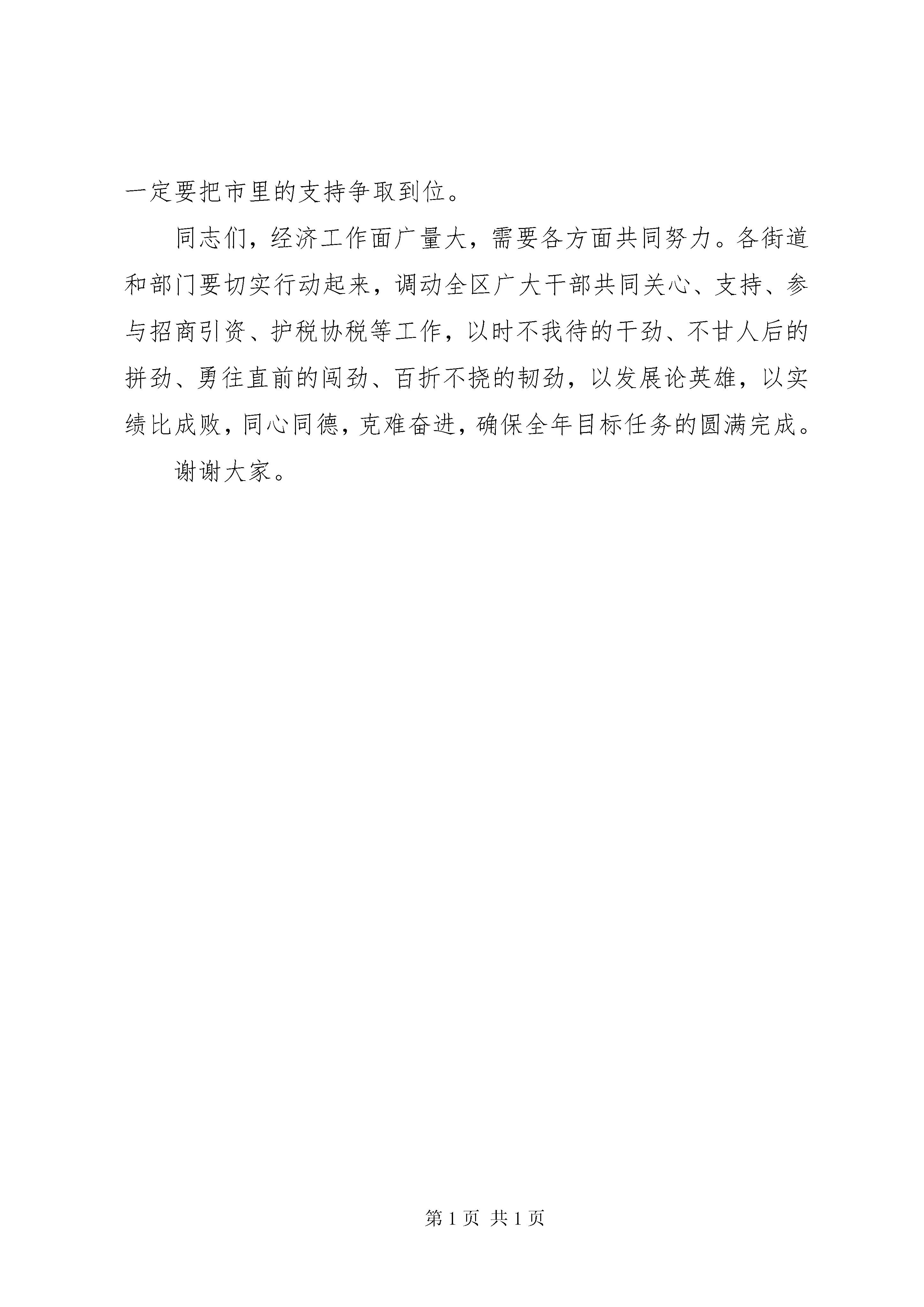 在全区经济工作会议上的讲话在全区经济工作会议上的讲话同志们:今天区政府召开全区经济工作会议主要是分析研究当前经济工作形势动员部署今后三个多月经济工作确保全年各项经济指标任务的完成。在**会即将召开、全区各项任务非常繁重的情况下召开经济工作专题会议说明区政府对这个会议非常重视我们面临的经济工作任务非常紧迫。刚才***全面总结了全区1-8月份经济工作对后4个月经济工作做了具体安排我完全同意请大家认真贯彻落实;5家单位作了很好的表态发言也请大家学习借鉴。今年以