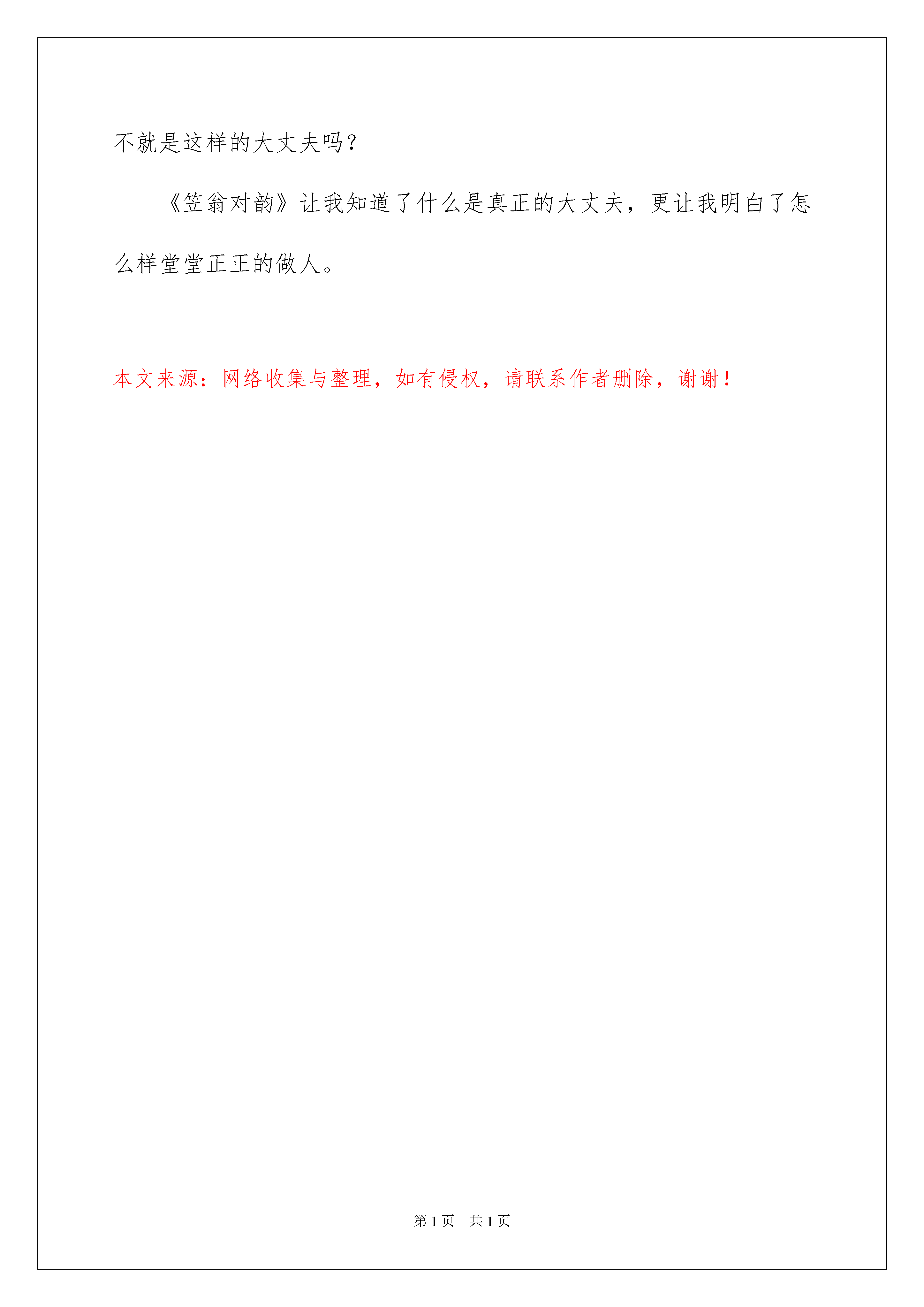 2022《笠翁对韵》读后感《笠翁对韵》读后感当细细品完一本名著后信任大家的视野肯定开拓了不少须要写一篇读后感好好地作记录了。那要怎么写好读后感呢?以下是我收集整理的《笠翁对韵》读后感欢迎大家借鉴与参考希望对大家有所帮助。《笠翁对韵》读后感1笠翁是清代闻名的诗人、戏剧