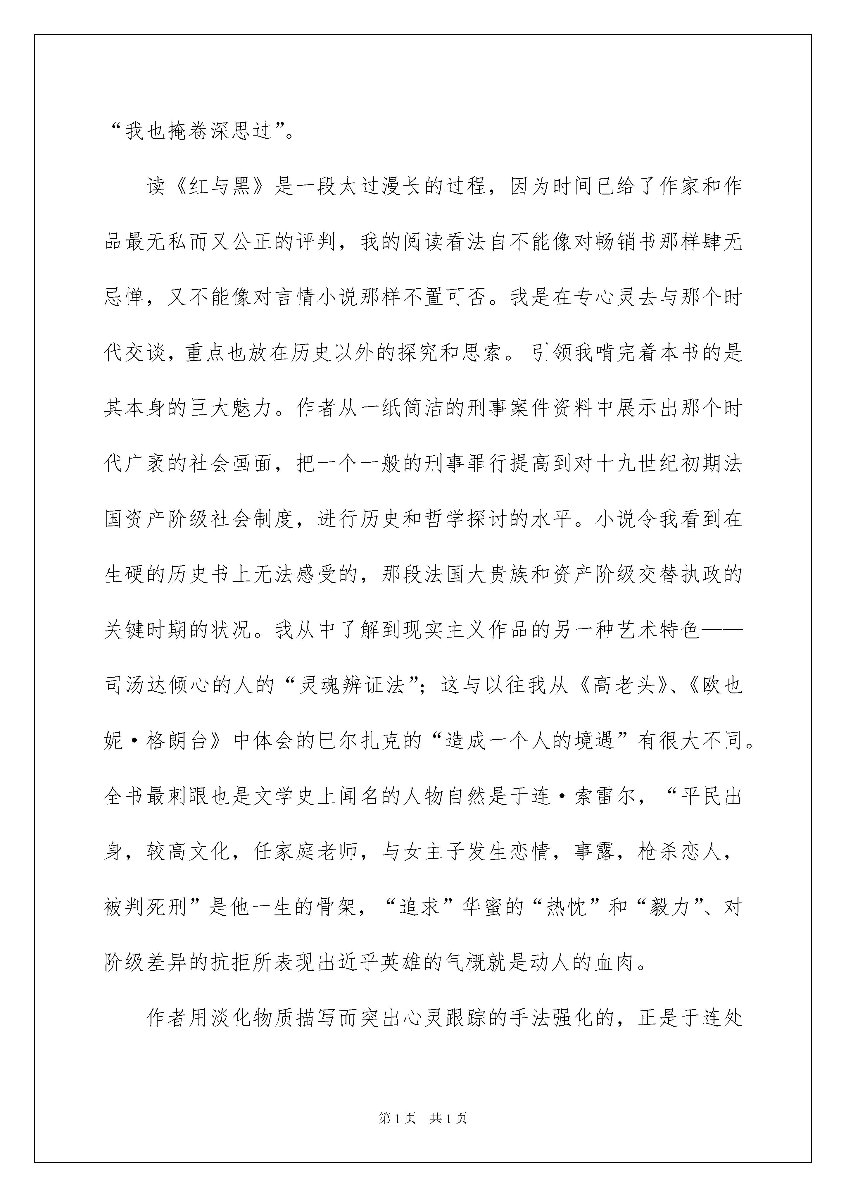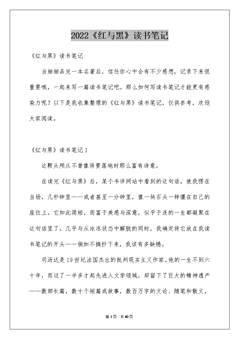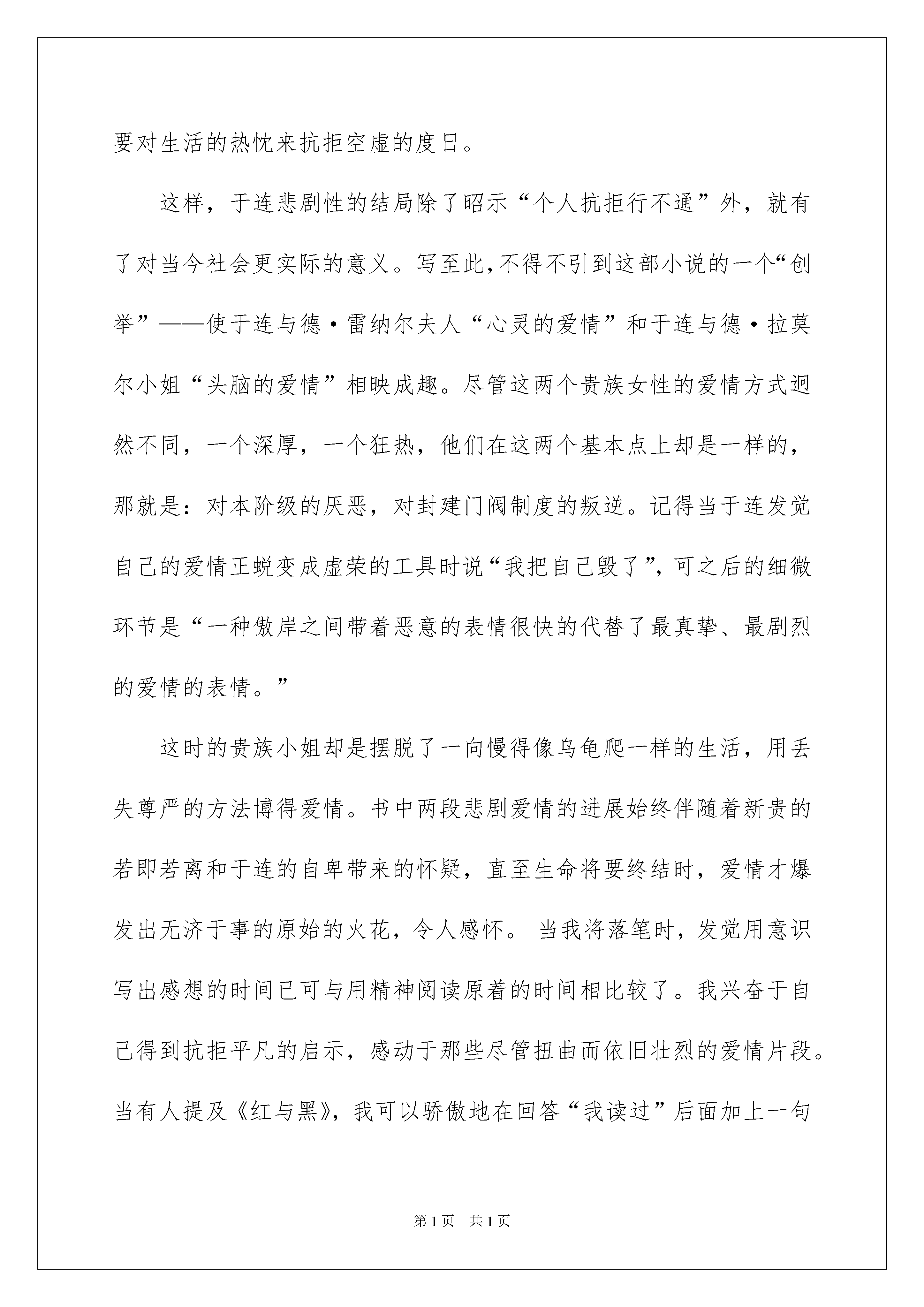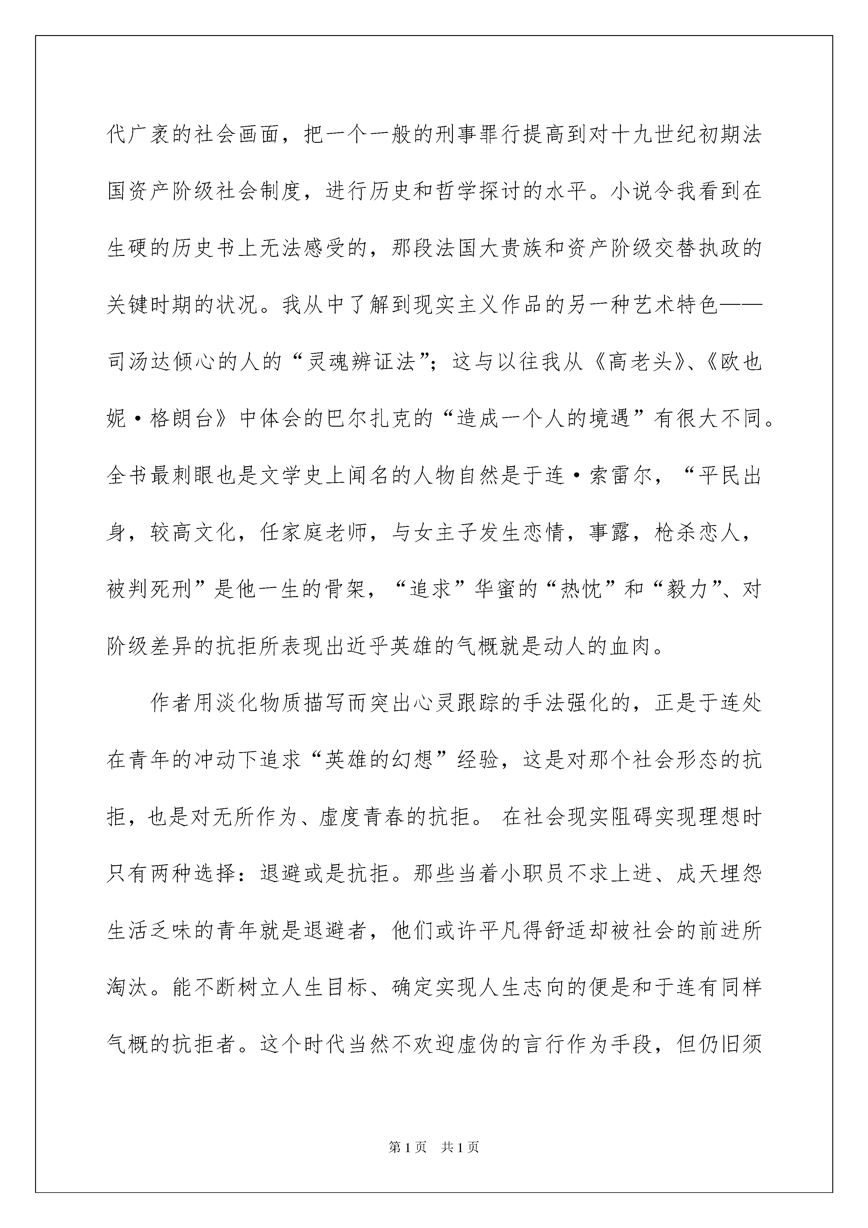 2022红与黑读书笔记红与黑读书笔记(15篇)细细品尝一本名著后你有什么总结呢?写一份读书笔记记录收获与付出吧。究竟应如何写读书笔记呢?以下是我整理的红与黑读书笔记仅供参考欢迎大家阅读。红与黑读书笔记1这本书是文学史上描写