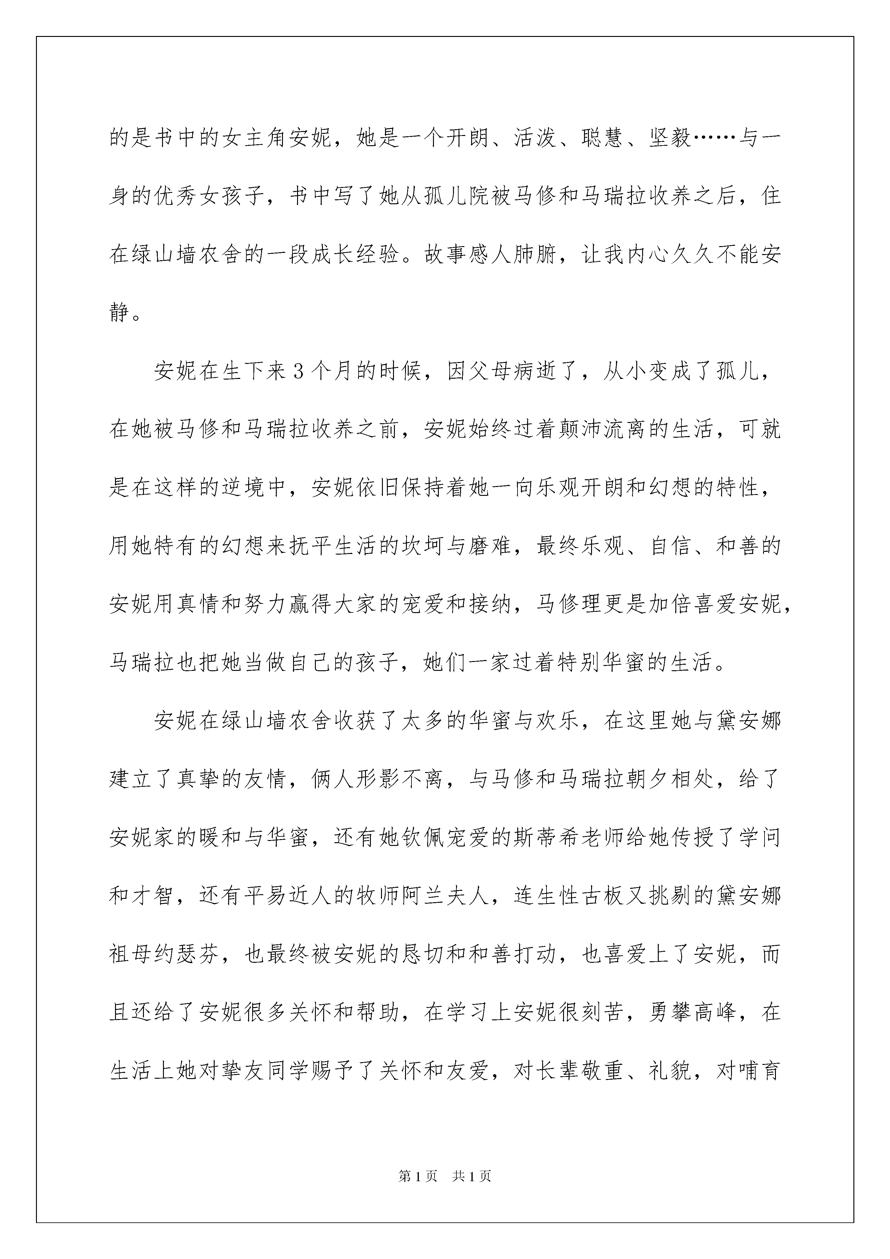 绿山墙的安妮读书心得_4.docx
