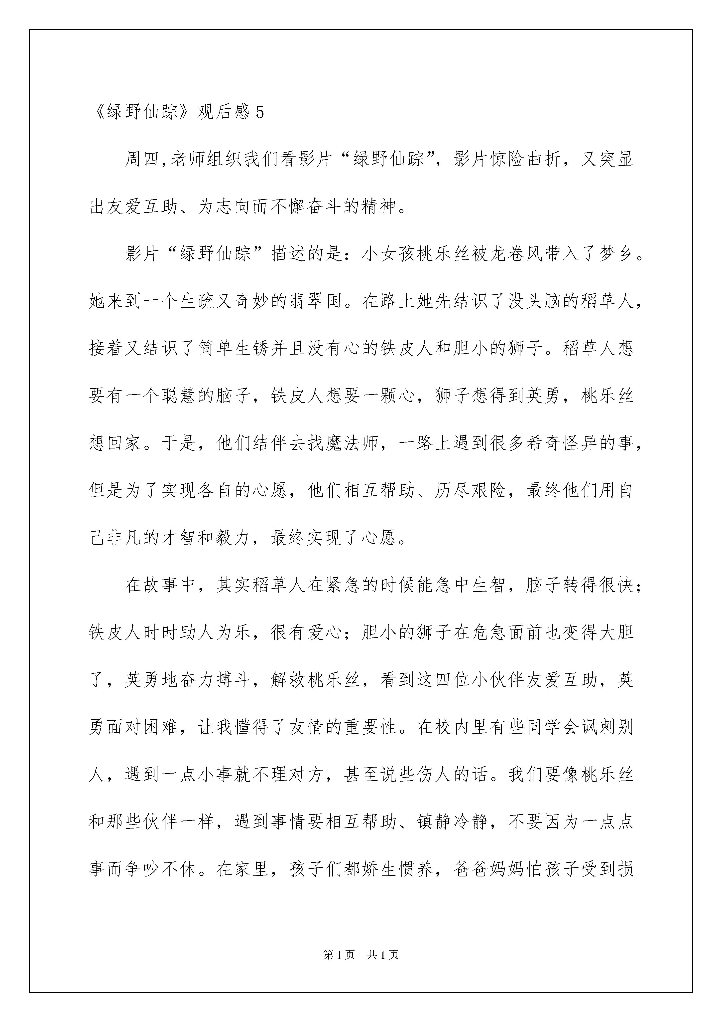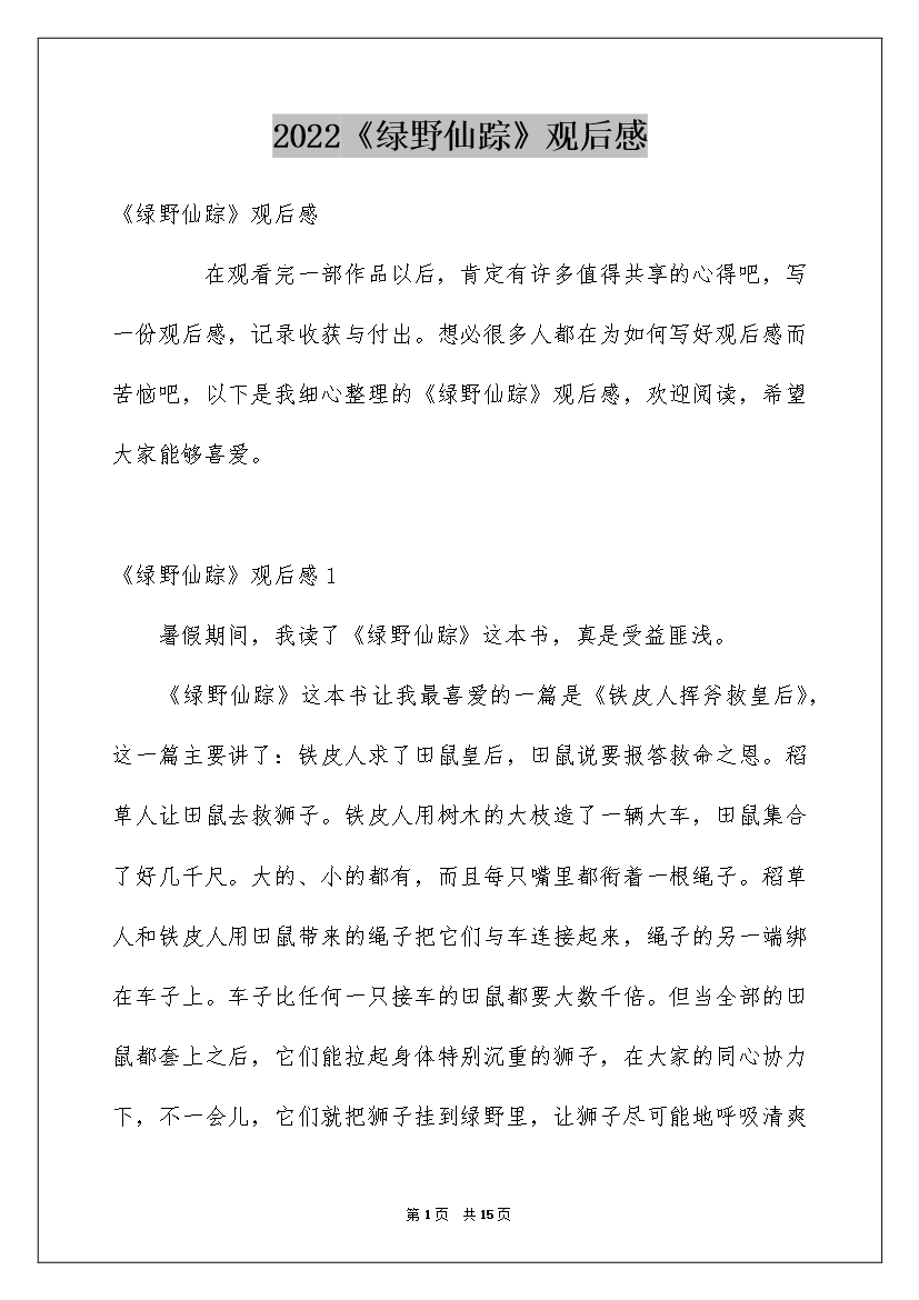 2022《绿野仙踪》观后感《绿野仙踪》观后感在观看完一部作品以后肯定有许多值得共享的心得吧写一份观后感记录收获与付出。想必很多人都在为如何写好观后感而苦恼吧以下是我细心整理的《绿野仙踪》观后感欢迎阅读希望大家能够喜爱。