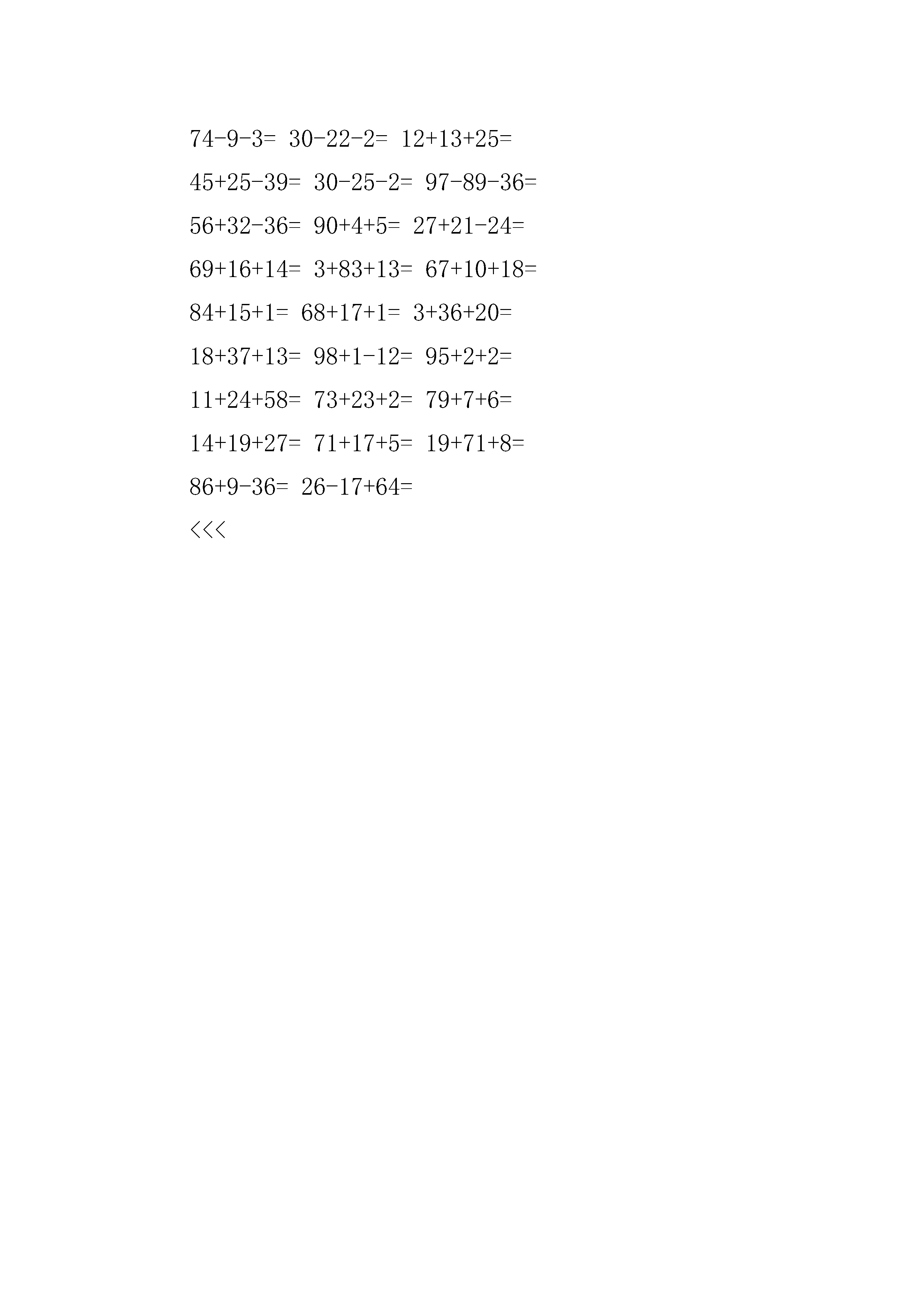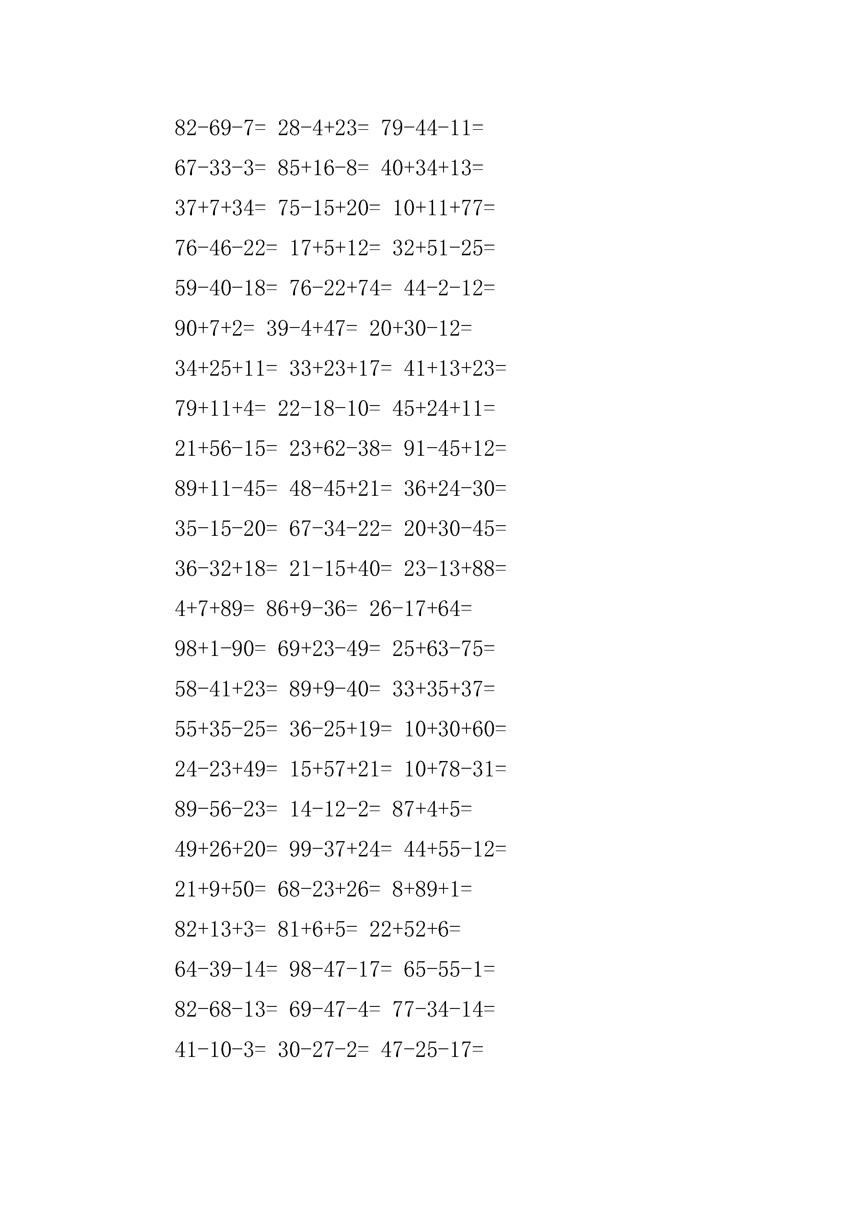 100以内的加减法及混合练习题百以内加减法混合题库.pdf