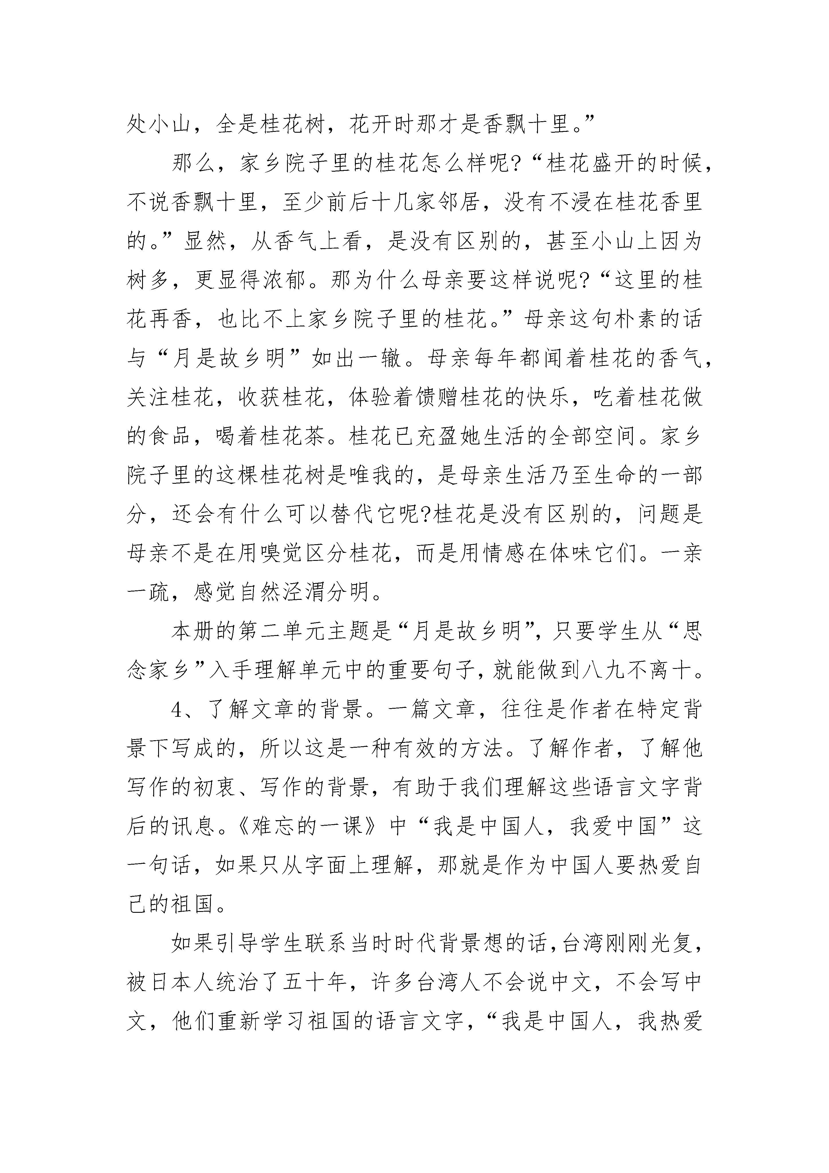 小学语文怎样理解句子含义一、联系上下文通读,理解句子的含义在阅读教学中,阅读是一项基本的训练,是理解课文的重要方法。通过阅读不仅要学会理解单词和短语以了解课文的内容,同时还能够掌握规范的书面语言。学习并组织表达思想,逐步养成良好的语言习惯。在新课程中提到的语言教学尤其要注意培养良好的语感和整体把握。语感是指语言感知的整体感觉,或语言和复杂的心理活动。在把握语言的能力的过程中,应力在读、停顿、节奏、语调处理,以此来培养学生的语感。如果学生具有了敏锐的语感,那么在对词、句的理解能力必将大大提高。比如:在学
