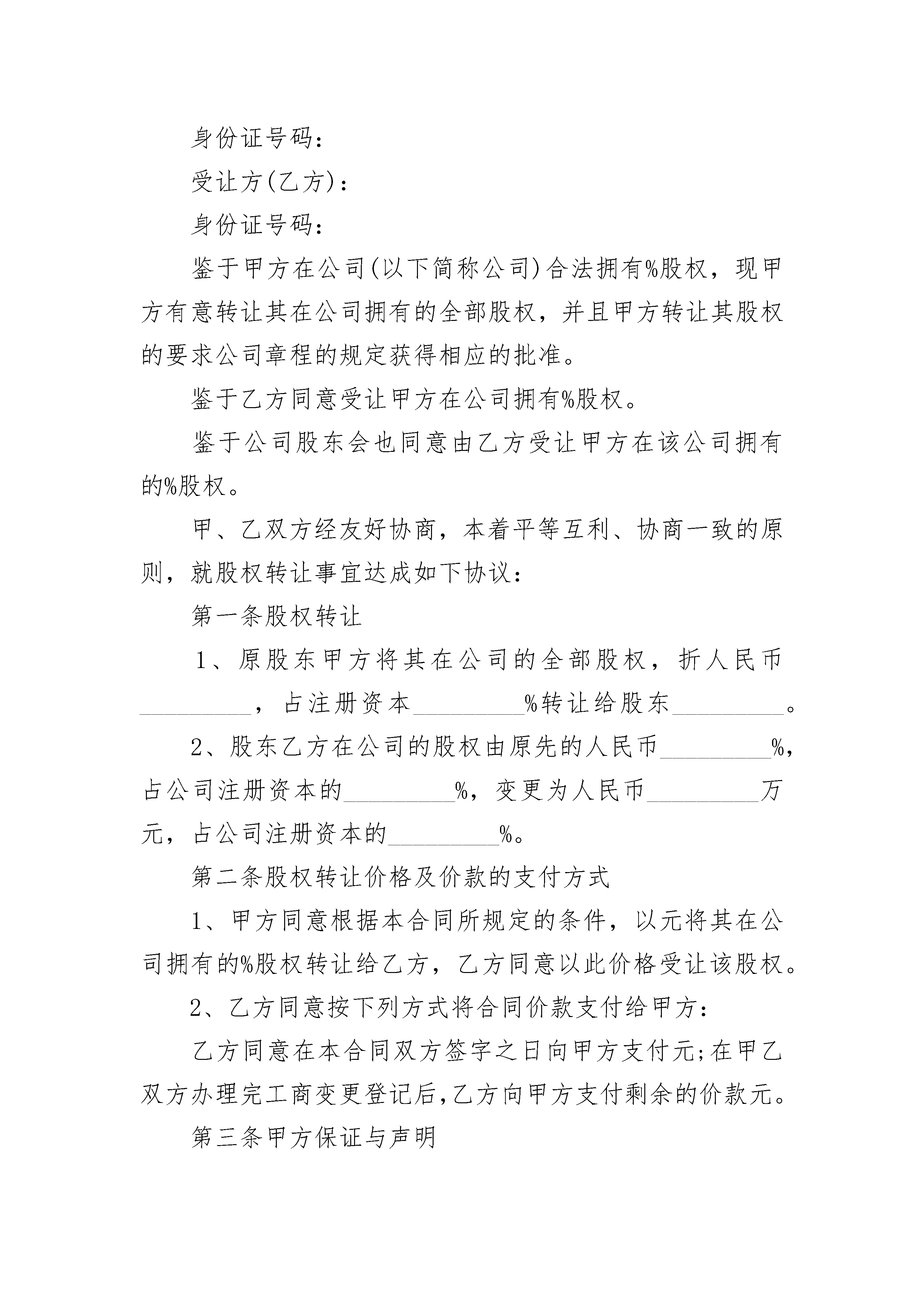 股东股权转让协议模板_股东股权转让合同模板.docx