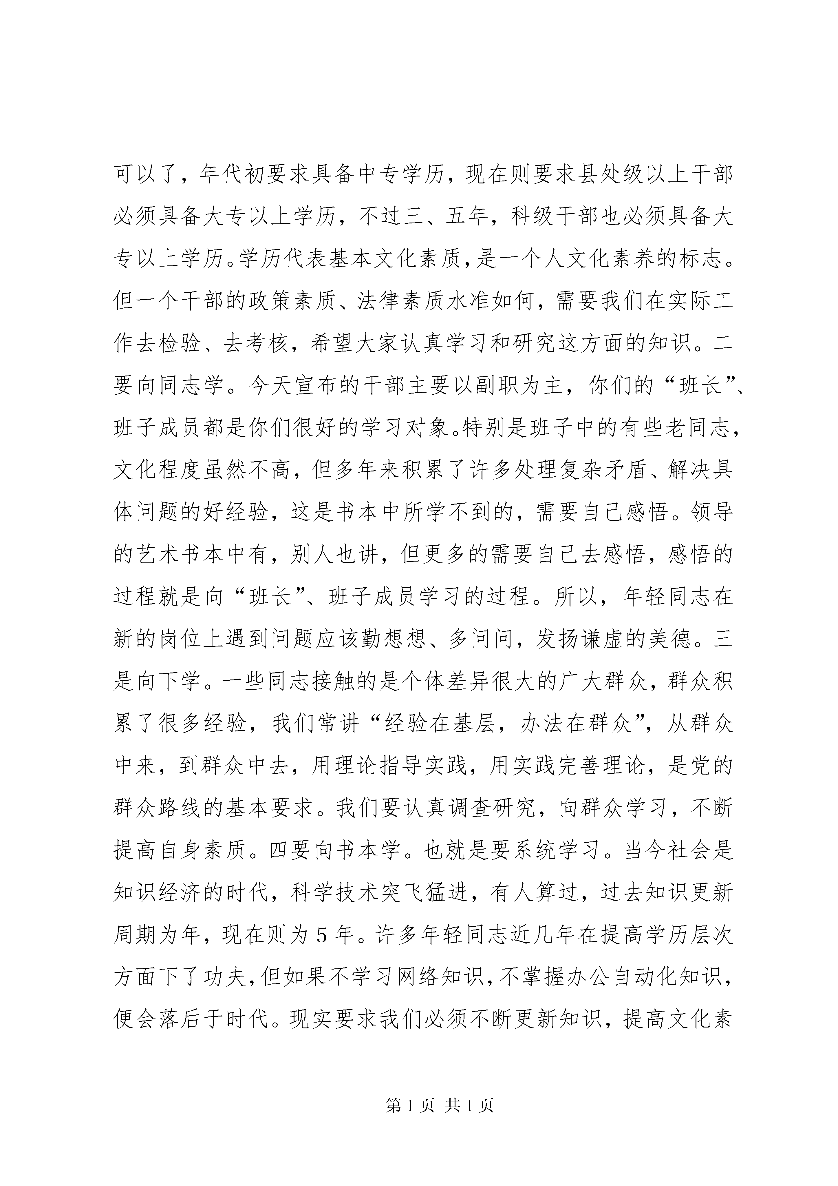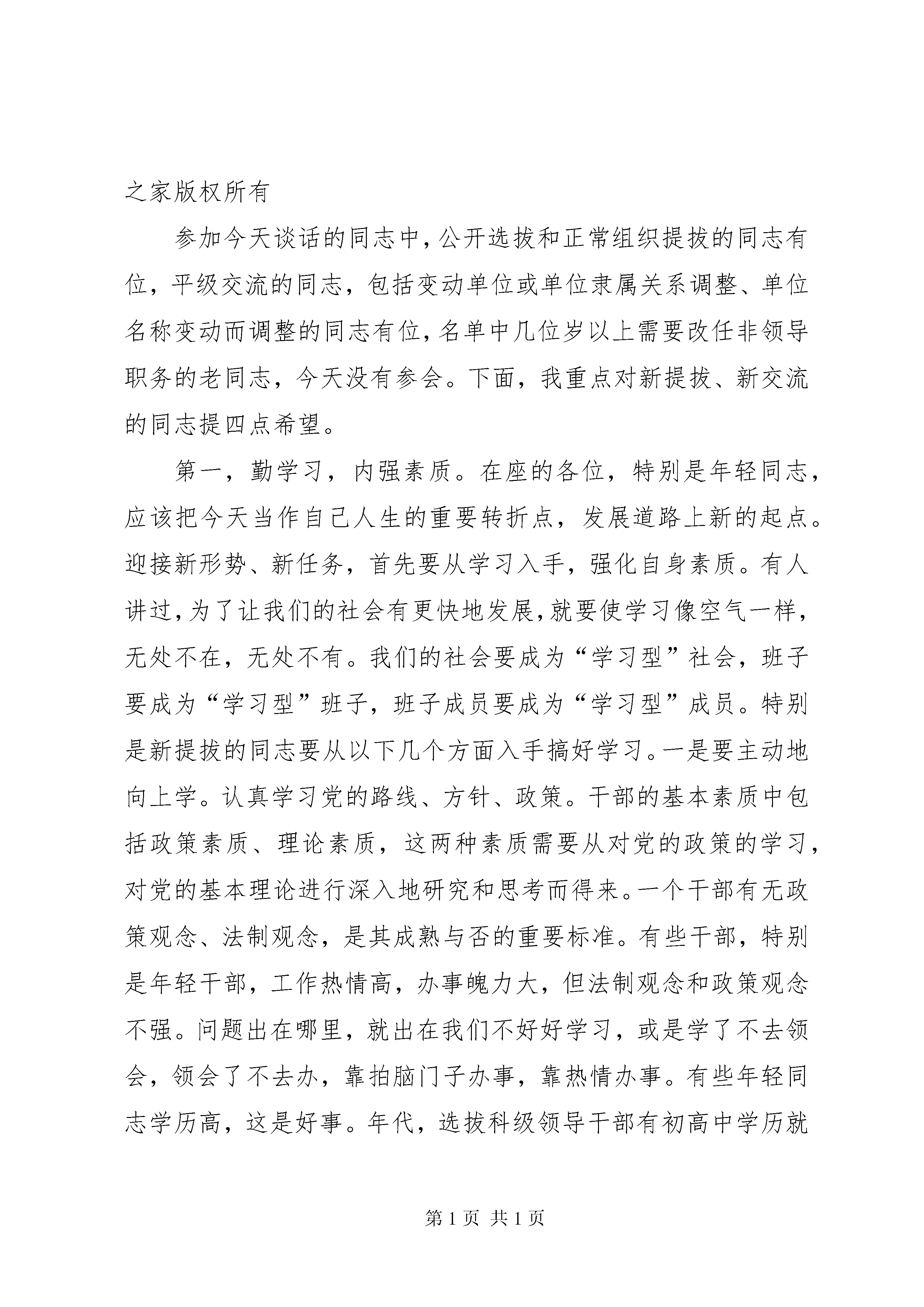 在全县新提拔、调整干部集体谈话会上的讲话.doc