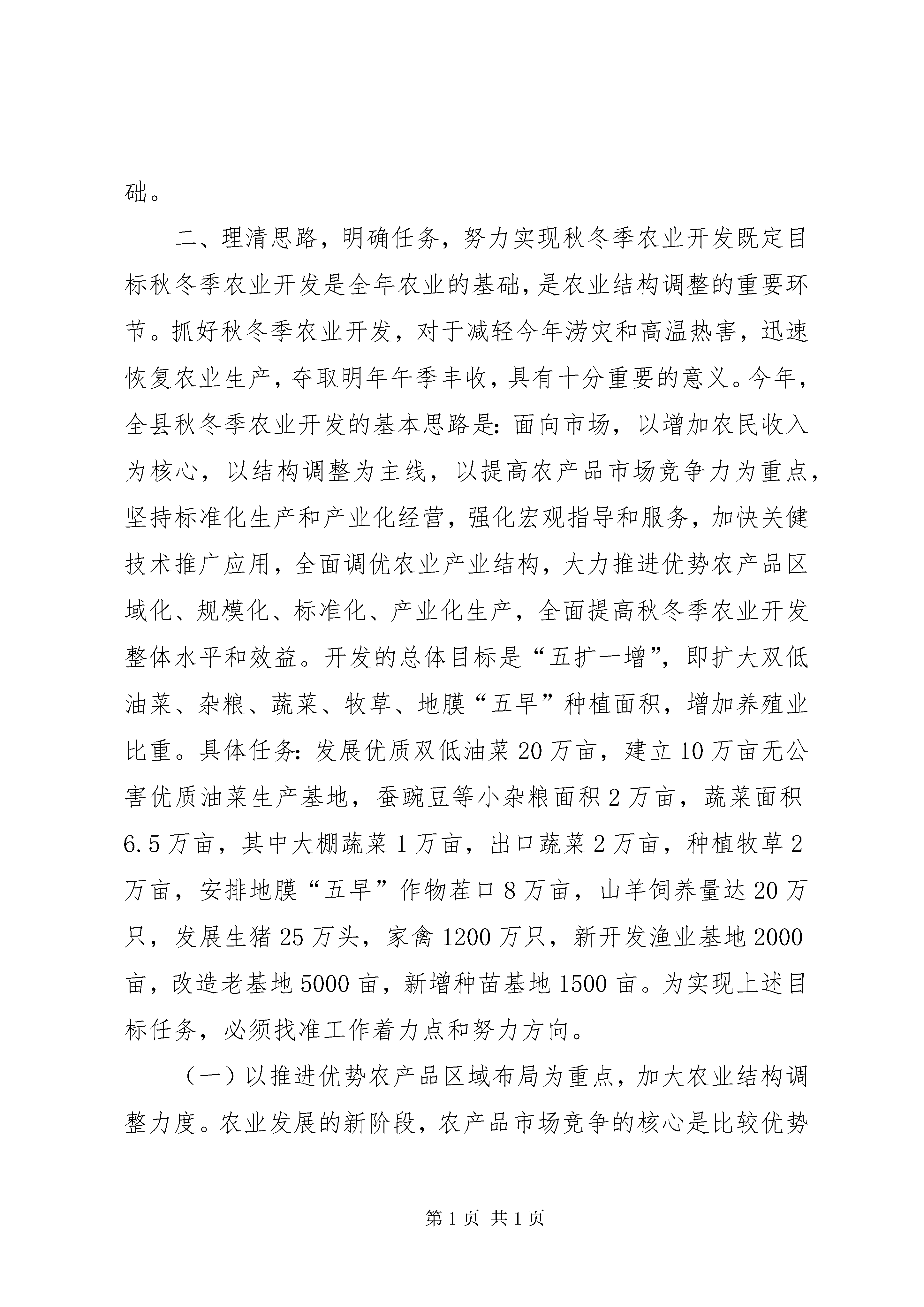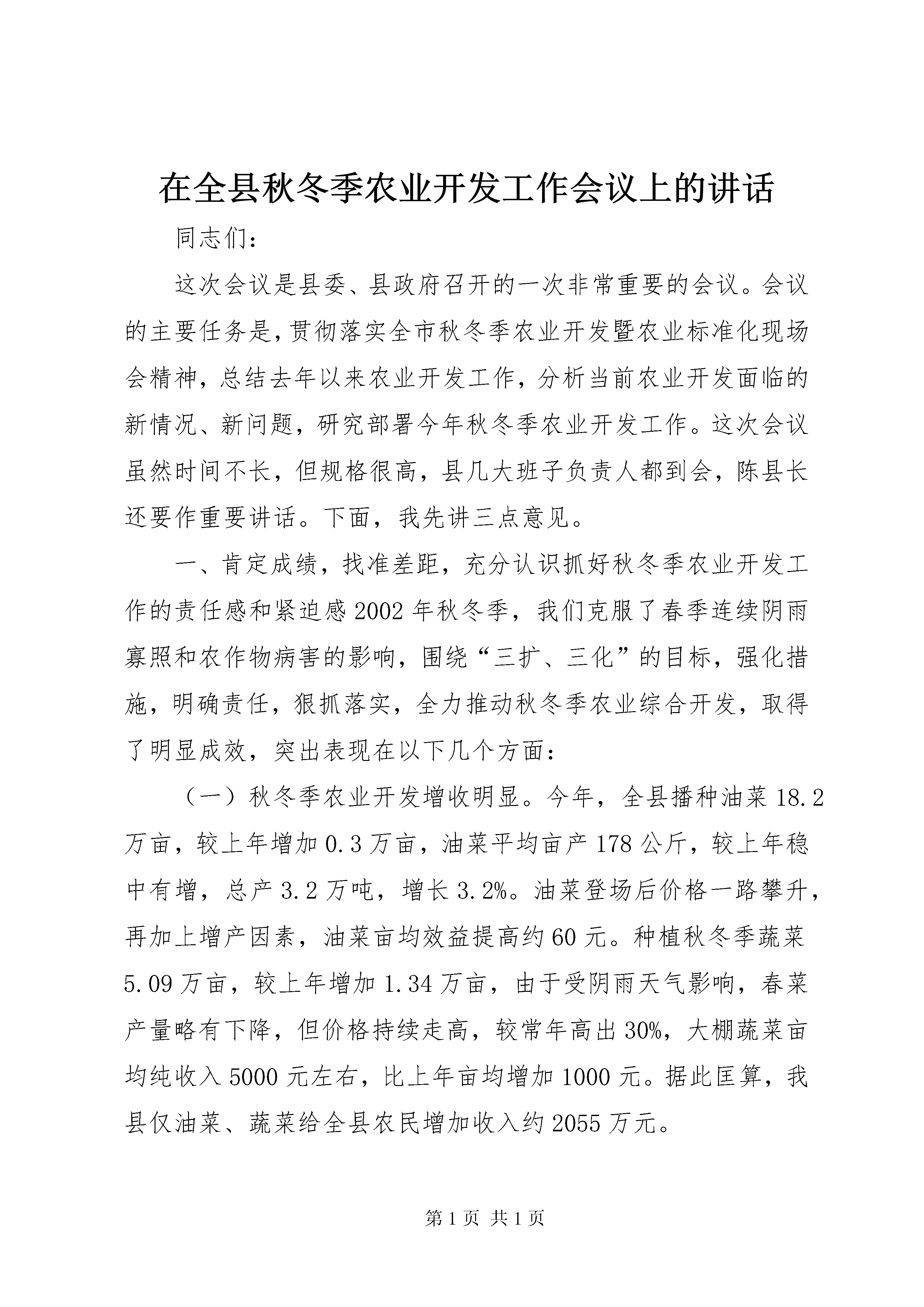 在全县秋冬季农业开发工作会议上的讲话.docx
