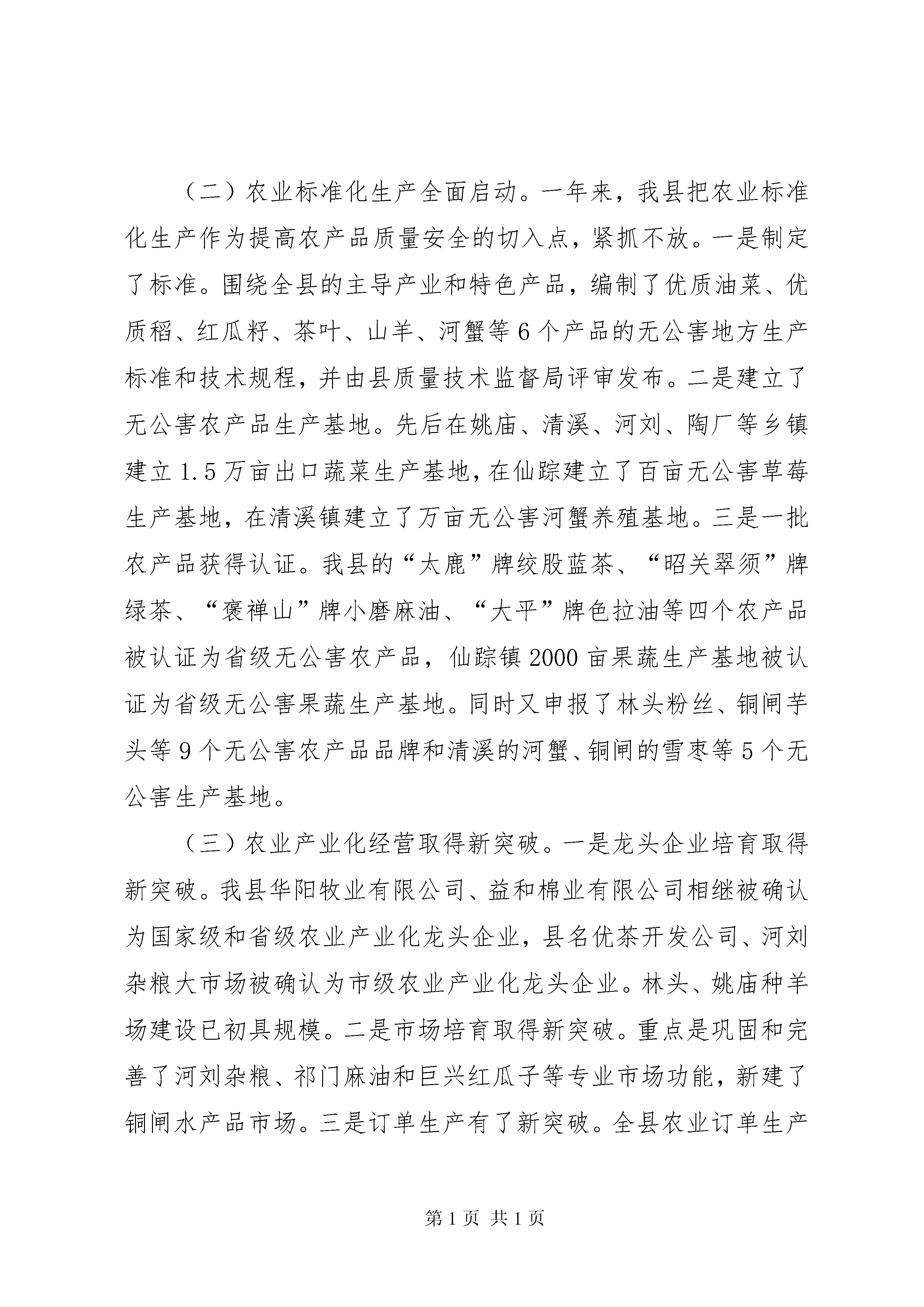 第PAGE\*Arabic\*MERGEFORMAT16页共NUMPAGES\*MERGEFORMAT16页在全县秋冬季农业开发工作会议上的讲话在全县秋冬季农业开发工作会议上的讲话在全县秋冬季农业开发工作会议上的讲话同志们:这次会议是县委、县政府召开的一次非常重要的会议。会议的主要任务是,贯彻落实全市秋冬季农业开发暨农业标准化现场会精神,总结去年以来农业开发工作,分析当前农业开发面临的新情况、新问题,研究部署今年秋冬季农业开发工作。这次会议虽然时间不长,但规格很高,县几大班子负责人都到会,陈县
