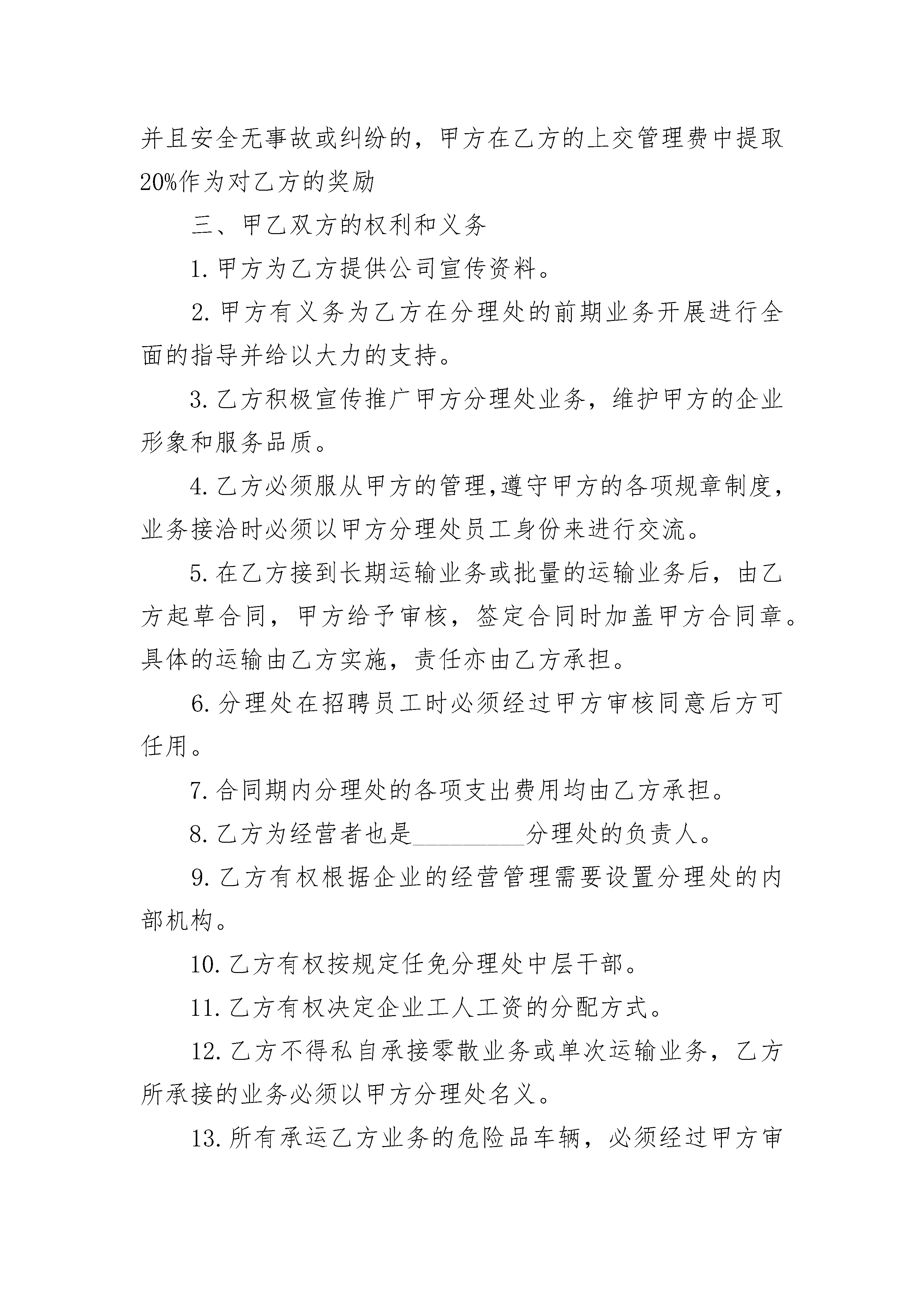 管道运输合同范本2篇在运输合同中承运人的主要义务包括:按约定的时间将旅客运达目的地的义务;不得擅自变更运输路线的义务;保障旅客在运输途中的安全义务;提供必要生活服务的义务。今天范文网小编要与大家分享的是:2篇管道运输合同相关范本具体内容如下欢迎阅读和参考!管道运输合同范本篇一发包方:________________以下简称甲方承包方:________________以下简称乙方根据业务发展需要甲方拟在龙冈地区设立分支机构(以下简称分理处)并交由乙方承包经营本着自愿、平等、互惠互利的