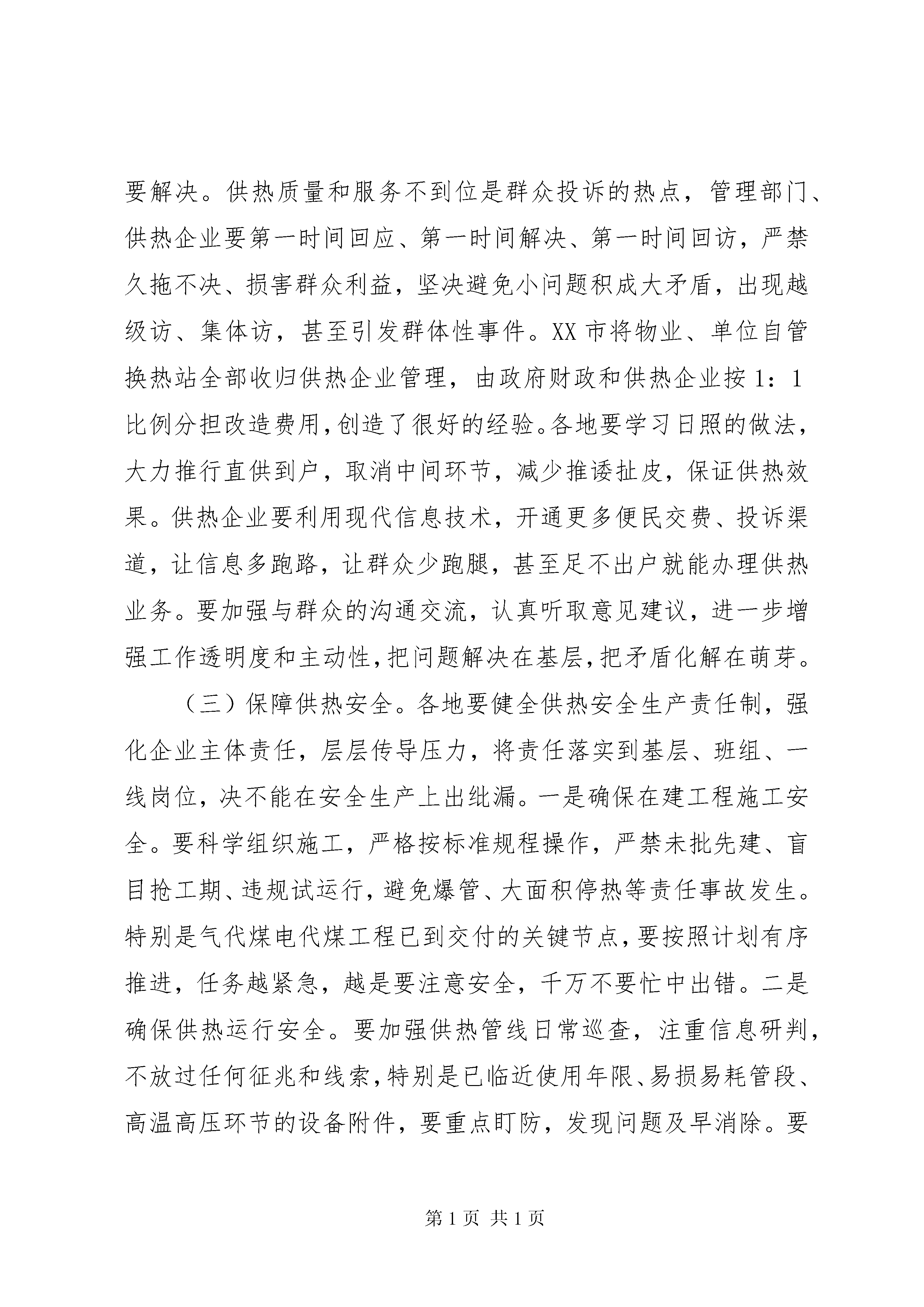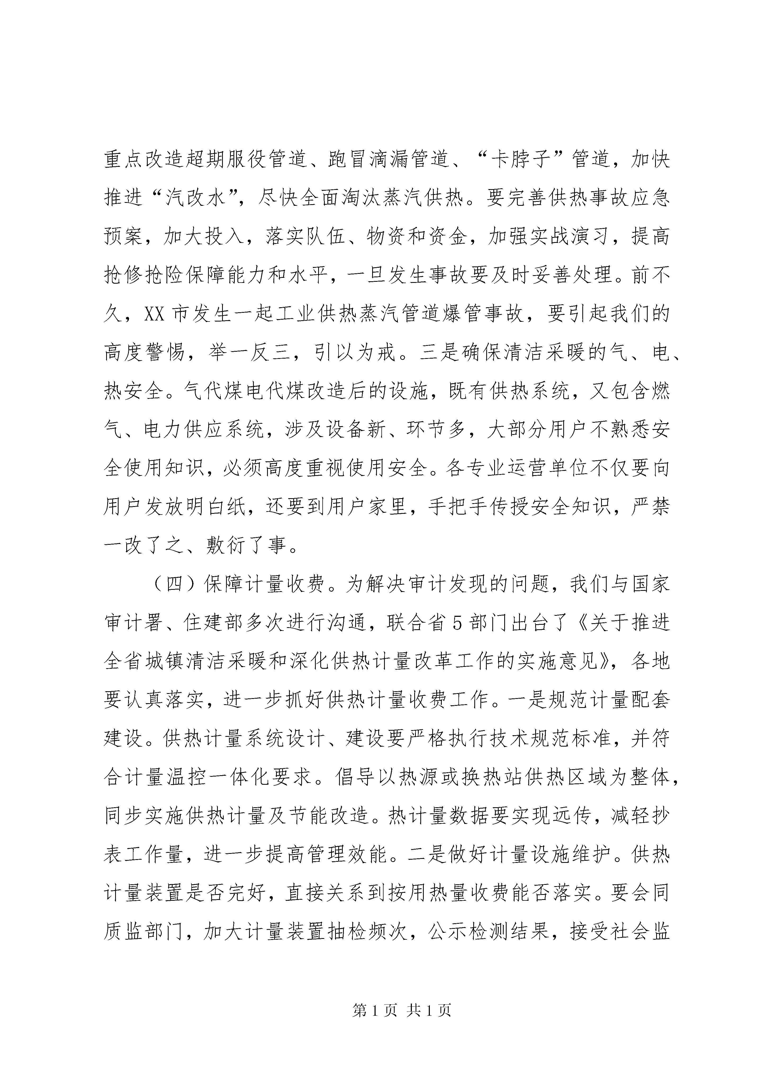 全省冬季供热工作暨清洁采暖现场观摩会议讲话稿同志们:举世瞩目的党的十九大刚刚开幕我们就召开这次冬季供热工作暨清洁采暖现场观摩会议这是我们学习贯彻十九大精神的具体体现也说明这项工作非常重要各地各部门务必高度重视。这次会议的主要任务是深入贯彻中央和省委、省政府推进清洁采暖有关决策部署认真落实全国北方采暖地区今冬明春城镇供热采暖工作电视会议要求全面做好冬季供热和清洁采暖工作保障人民群众清洁采暖、温暖过冬。昨天大家参观了XX市清洁采暖现场刚才又听取了城管局的经验介绍普