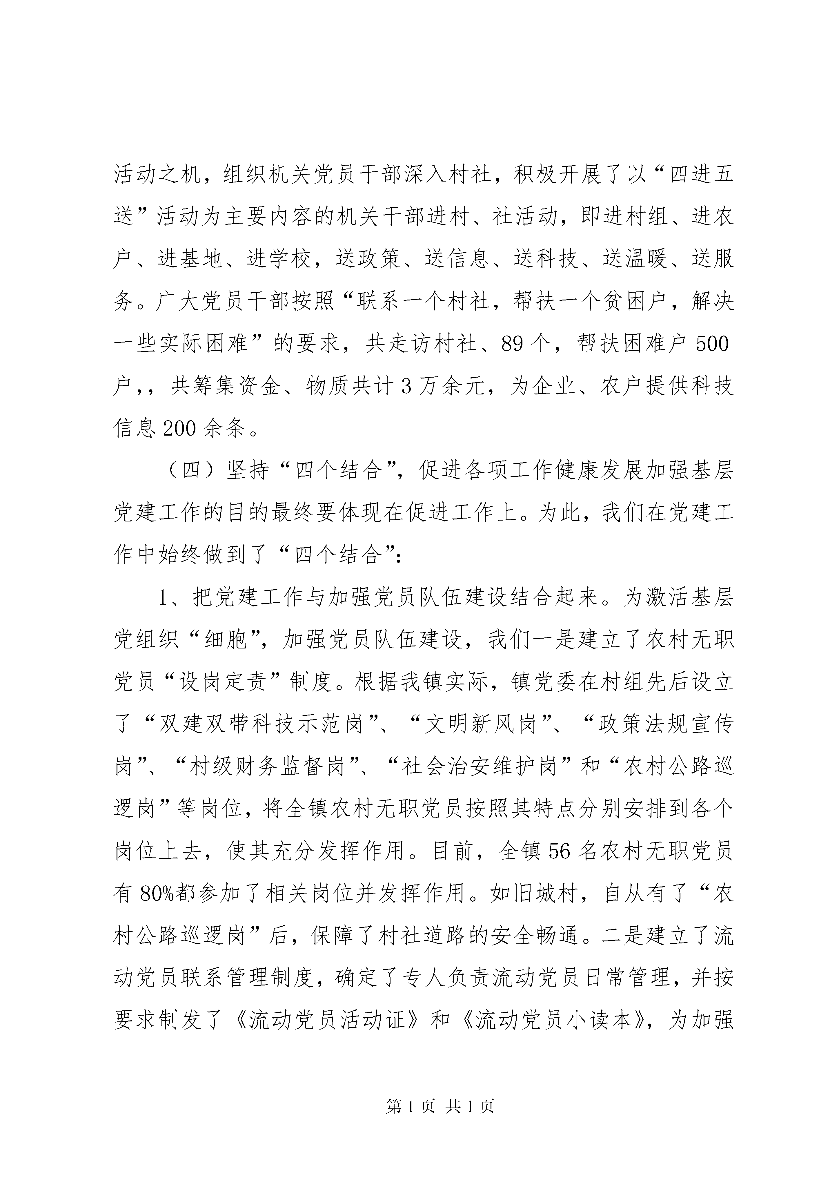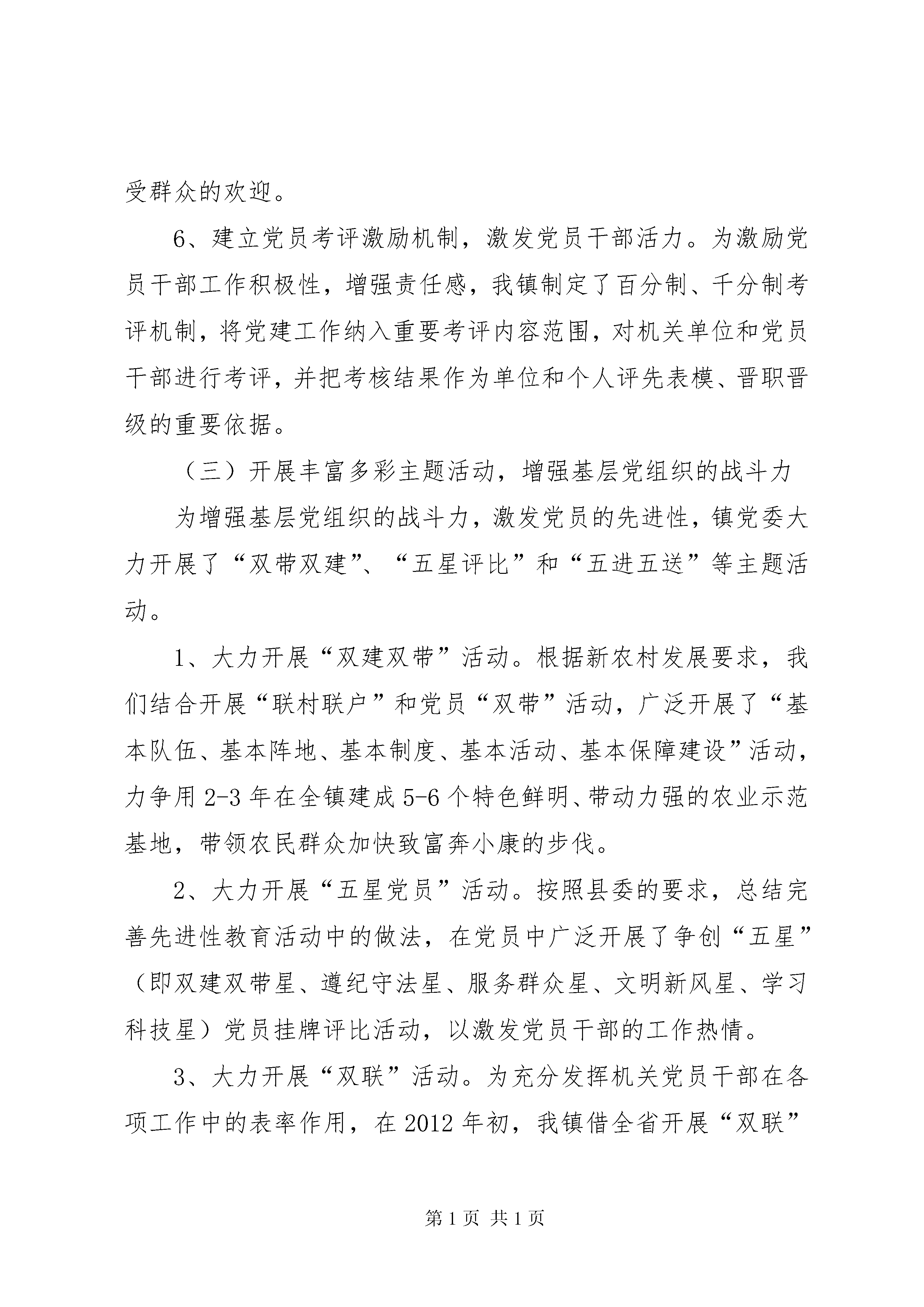 关于基层组织建设年活动的调研报告2关于基层组织建设年活动的调研报告(马文义)一、基本情况我镇共有党支部12个其中农村党支部10个机关党支部1个社区支部1个共有党员271名其中女46名少数民族党员184名农民党员242名。近年来在县委、县政府的正确领导下我镇始终不渝地把党的基层组织建设作为夯实基础、促进工作的重要工作来抓。在工作中我镇以“强组织、增活力、促发展”为主题;以“突出基本队伍、基本阵地、基本制度、基本活动、基本保障建设”为重点;按照“抓落实