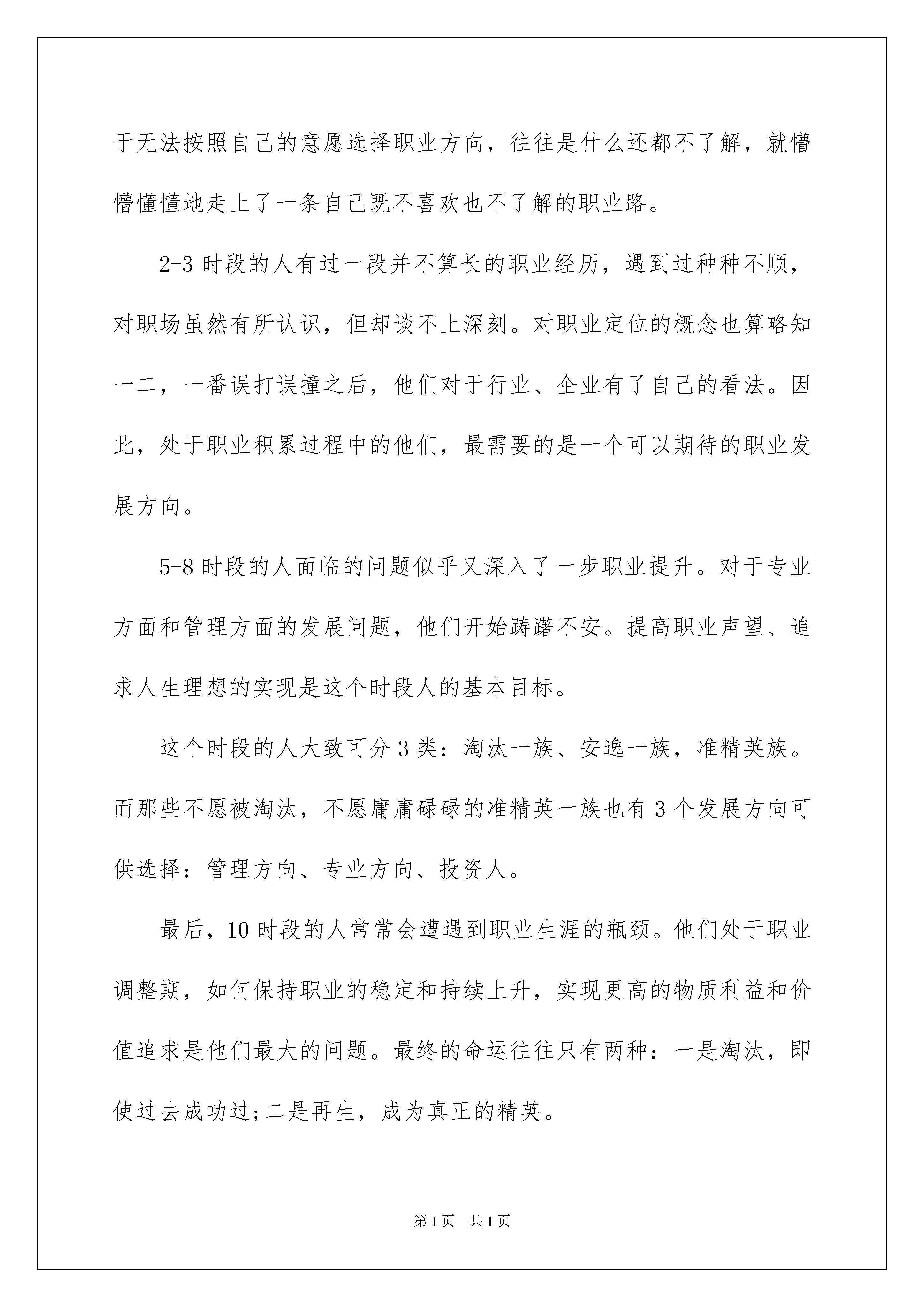 2022职业规划职业规划模板集合七篇职业规划职业规划模板集合七篇时间是看不见也摸不到的,就在你不注意的时候,它已经悄悄的和你擦肩而过,我们又将开启新一轮的工作,需要认真地为此写一份职业规划。我们该怎么去写职业规划呢?下面是我收集整理的职业规划职业规划7篇,欢迎阅读,希望大家能够喜欢。职业规划职业规划篇1职业规划不是算命,它没有确定答案;职业规划不是游