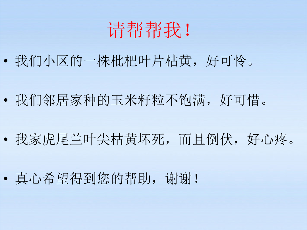 请帮帮我!第十一单元盐化肥课题2化学肥料一、化肥的分类自学教材:农作物所必需的营养元素有碳、氢、氧、氮、磷、钾、钙、镁等。其中氮、磷、钾需要量最大。1.氮肥2.磷肥钾具有保证各种代谢过程顺利进行、促进植物生长、增强抗病虫害和抗倒伏能力等功能。氮肥---促进作物茎、叶生长茂盛,叶色浓绿磷肥---促进根系发达、穗粒饱满钾肥---促进作物生长健壮,茎杆粗硬枇杷—缺氮肥玉米—缺磷肥虎尾兰—缺钾肥常见的氮肥:知识积累联系实际小区另一株枇杷不仅叶片枯黄,而且倒伏,怎么办?复合化肥:含两种或