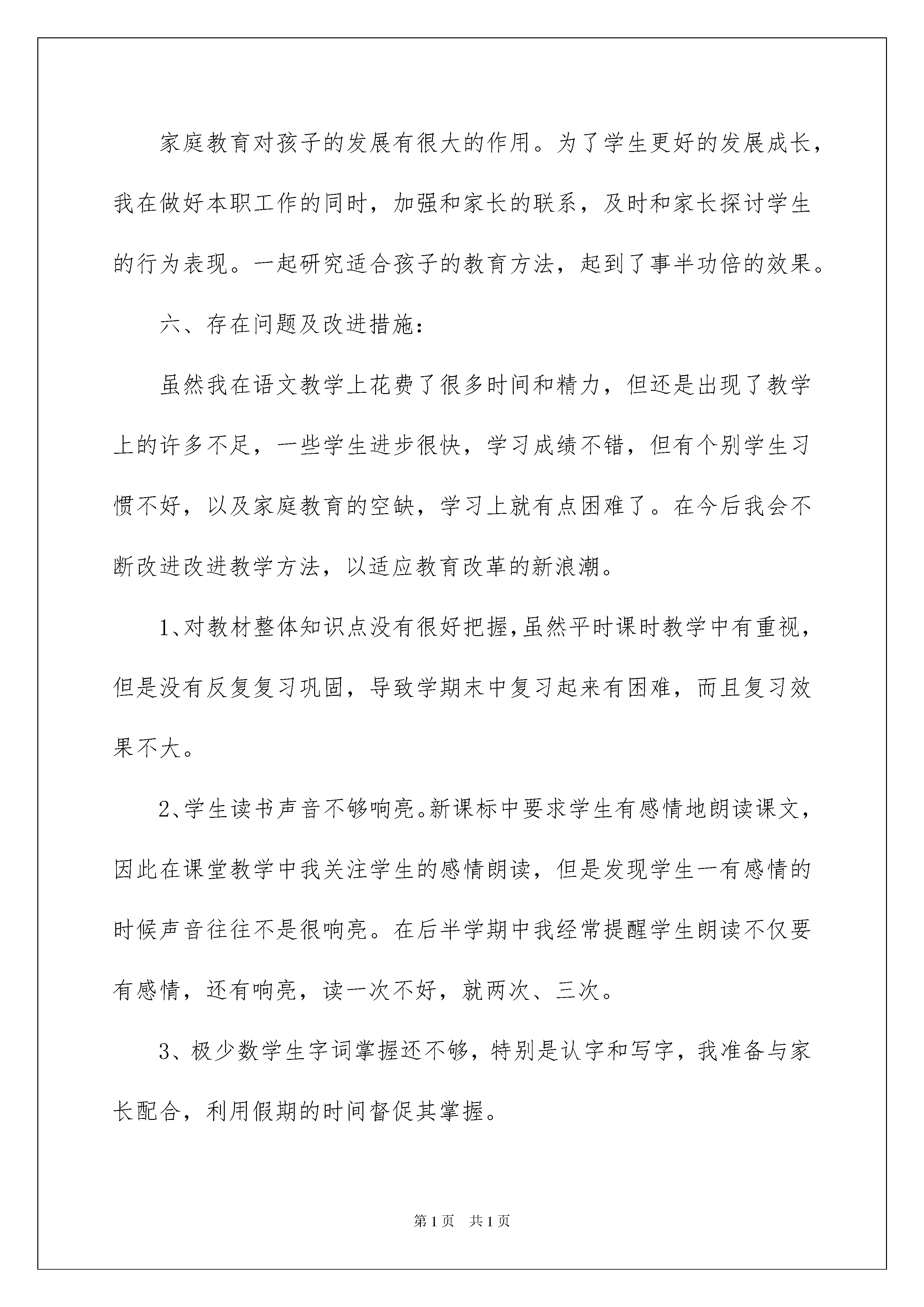 本文格式为Word版,下载可任意编辑第PAGE\*MERGEFORMAT16页共NUMPAGES\*MERGEFORMAT16页关于语文教学总结模板汇总7篇关于语文教学总结模板汇总7篇总结是事后对某一时期、某一项目或某些工作进行回顾和分析,从而做出带有规律性的结论,它可以帮助我们总结以往思想,发扬成绩,因此十分有必须要写一份总结哦。总结一般是怎么写的呢?以下是我为大家编写的语文教学总结7篇,仅供参考,希望能够帮助到大家。语文教学总结篇1转眼间,一个学期的语文教育教学工作已经结束了,回顾这一学期