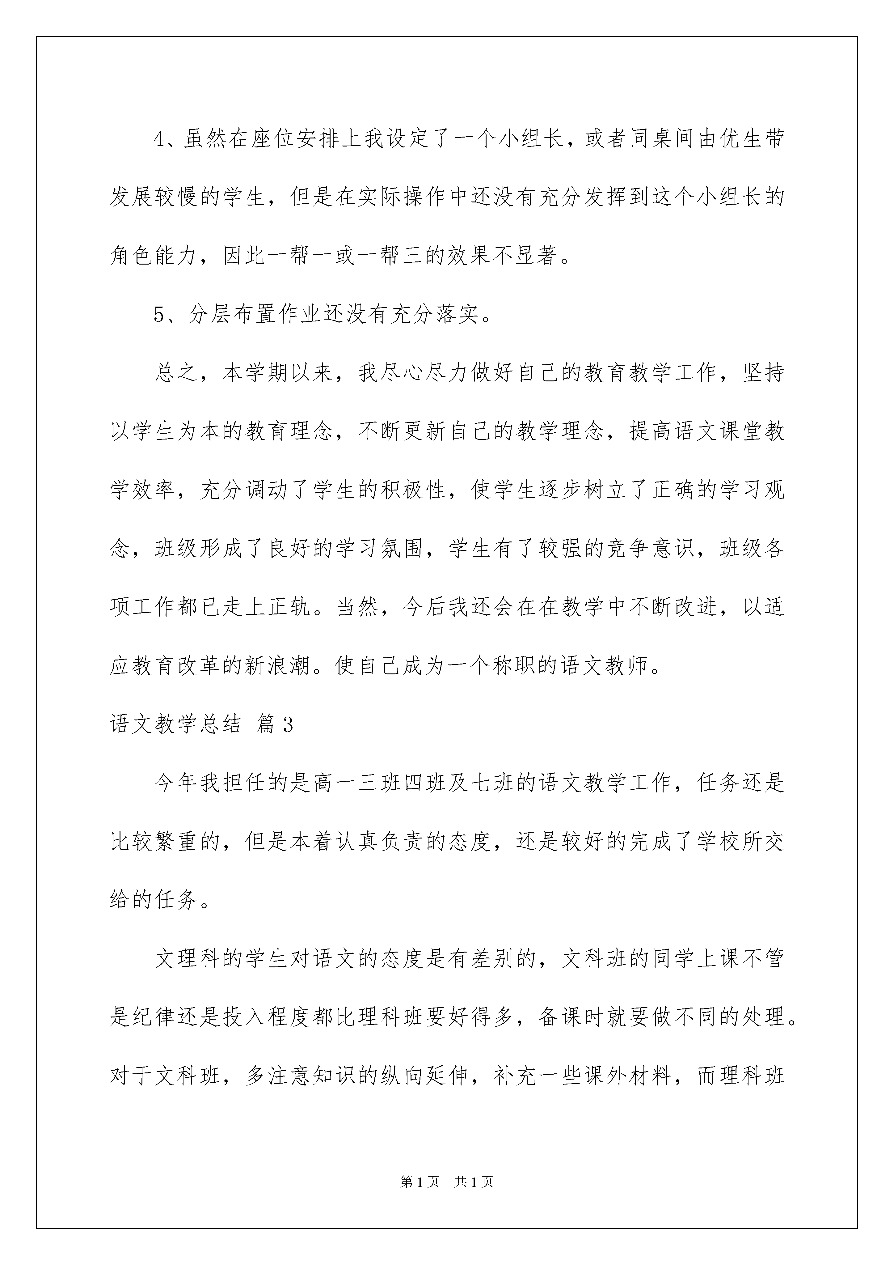 2022关于语文教学总结模板汇总5篇关于语文教学总结模板汇总5篇总结是对某一阶段的工作、学习或思想中的经验或情况进行分析研究的书面材料它可以明确下一步的工作方向少走弯路少犯错误提高工作效益因此好好准备一份总结吧。总结怎么写才是