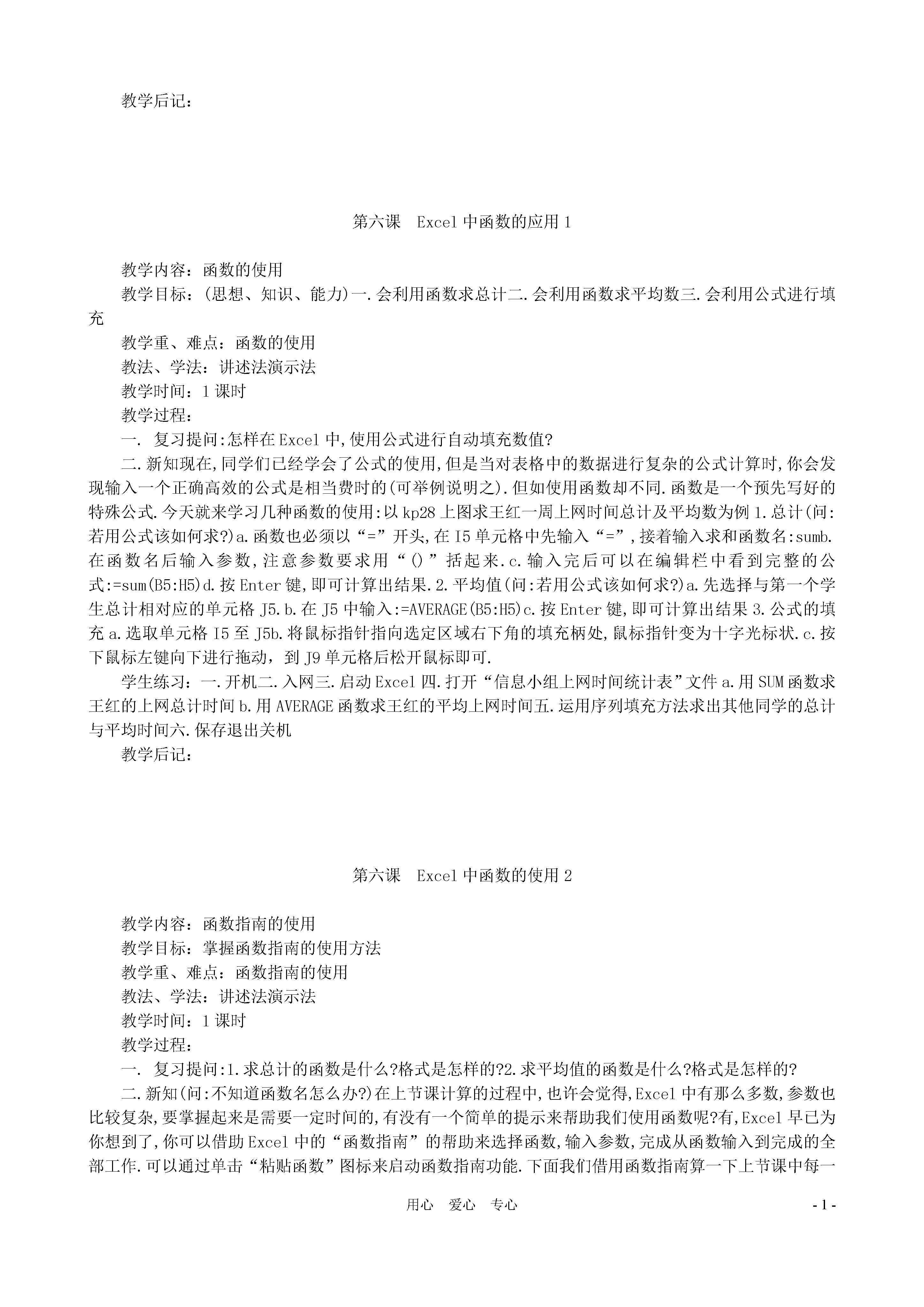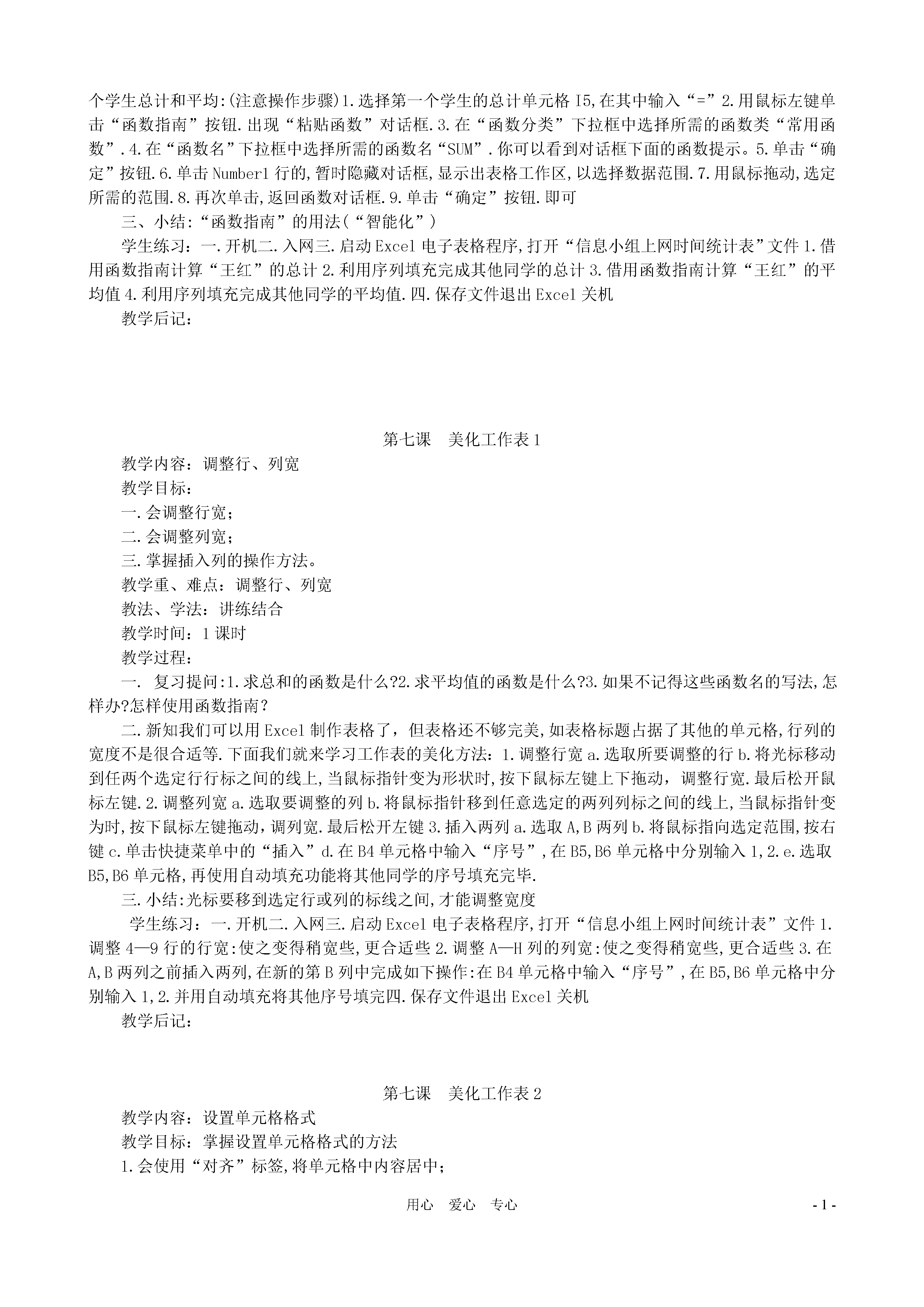 1用心爱心专心第1课数据计算教材分析内容和地位:1、本节课内容是青岛版信息技术七年级第一单元数据处理中的第1课。通过上学期的学习,学生已经对文字处理软件MicrosoftWord2000有了一定的认识,并能熟练应用,在此基础上,教材又选择了数据处理,让学生继续认识和学习使用电子表应用软件,MicrosofttExcel2000,而数据计算又是数据处理的最基本的应用。2、由“一张学生成绩表求总分”切入,引导学生进入电子表格中常用函数应用的学习,让生去感受函数进