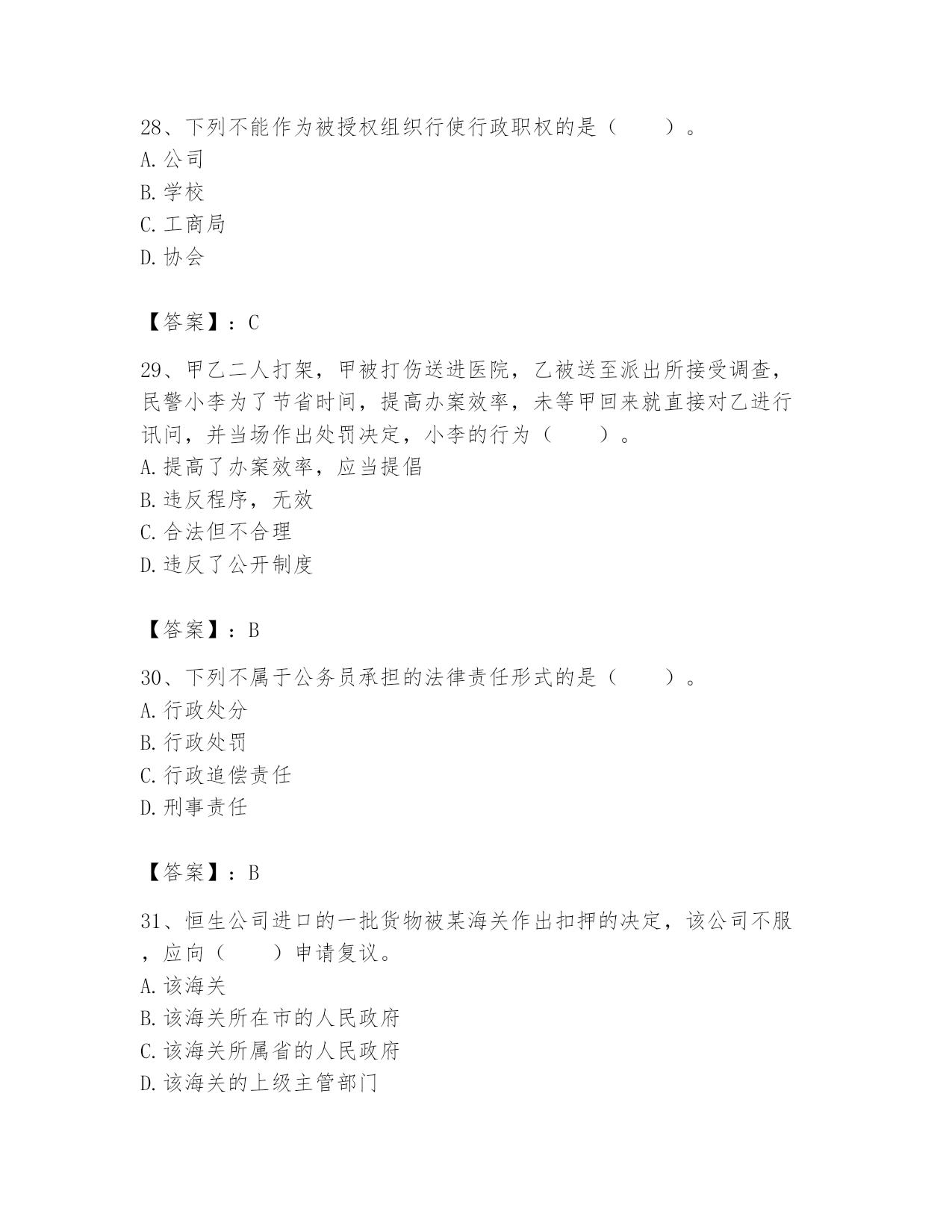 土地登记代理人之土地登记相关法律知识题库第一部分单选题(800题)1、甲向乙寄送了一封信件,要求以一万元的价格购买乙现时所用的笔记本电脑,并声明:若乙在二十天之内不提出异议即视为接受要约。乙收到该信之后,不置可否。第三十天,甲登门,交给乙一万元,并要求乙交付电脑,但乙拒绝。下列表述中正确的是()。A.甲的行为并不属于要约B.乙的行为属于承诺C.乙应交付电脑D.乙不必交付电脑【答案】:D2、实物补偿也就是以同等条件或者性能的实物来弥补行政相对人损失的方式。下列不属于实物补偿方式的是()。A.调换土地B.产权